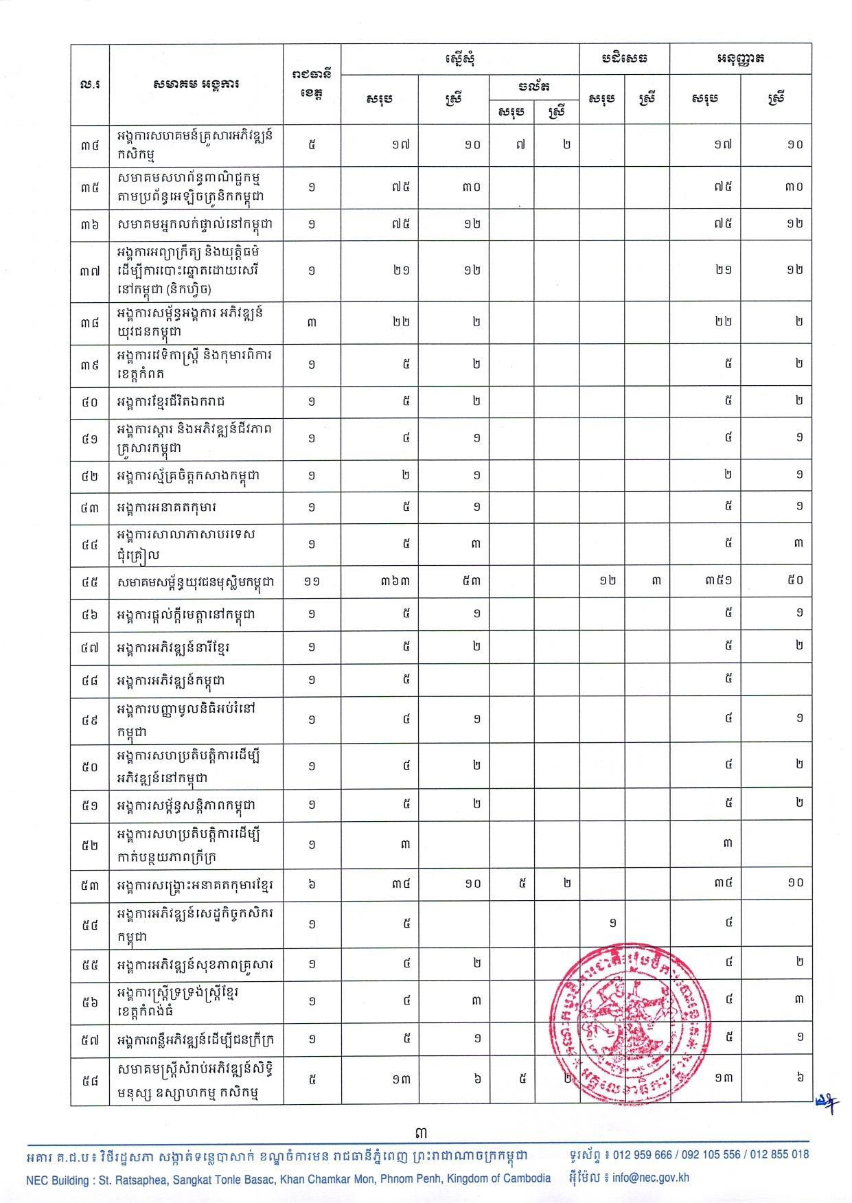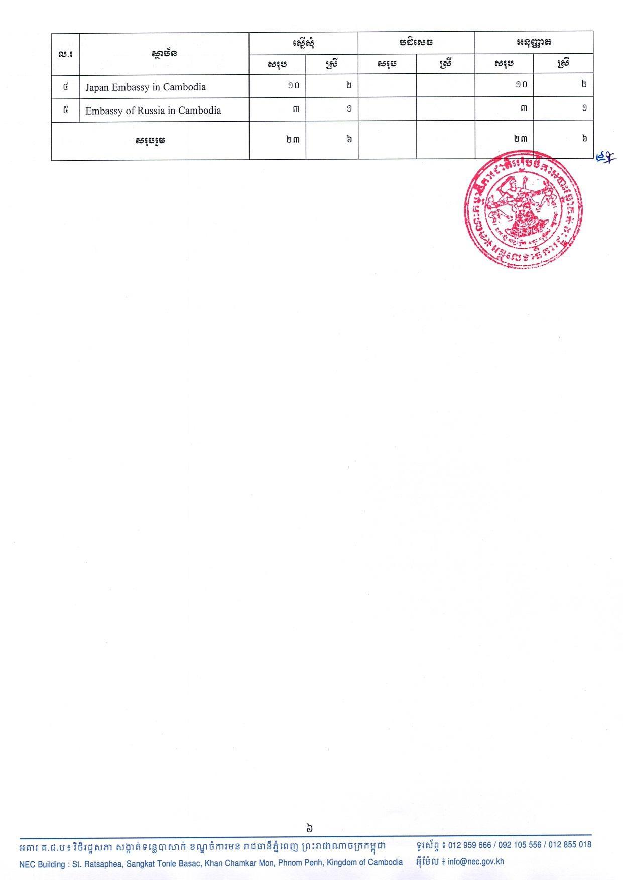 សេចក្តីប្រកាសព័ត៌មាន លេខ ០៧៥ គ.ជ.ប.អគ្គ៖ លទ្ធផលបណ្ដោះអាសន្ននៃការផ្ដល់ប័ណ្ណជូនអ្នកសង្កេតការណ៍ជាតិ-អន្តរជាតិ និងភ្ញៀវពិសេសដែលត្រូវសង្កេតមើលដំណើរការបោះឆ្នោតជ្រើសរើសក្រុមប្រឹក្សាឃុំ សង្កាត់ អាណត្តិទី៥ ឆ្នាំ២០២២