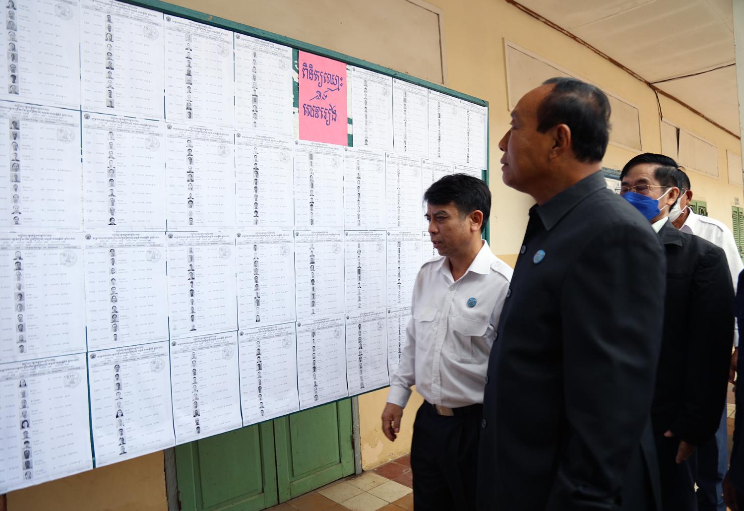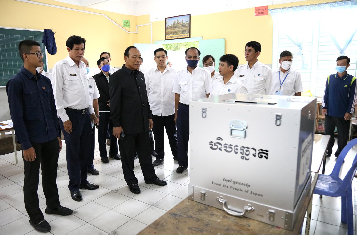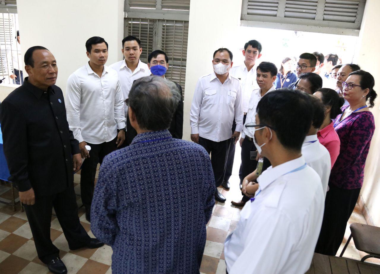រូបភាពសកម្មភាព ឯកឧត្ដម ប្រាជ្ញ ចន្ទ ប្រធាន គ.ជ.ប ចុះត្រួតពិនិត្យការរៀបចំការិយាល័យបោះឆ្នោត សម្រាប់ការបោះឆ្នោតជ្រើសរើសក្រុមប្រឹក្សាឃុំ សង្កាត់ អាណត្តិទី៥ ឆ្នាំ២០២២ នៅសង្កាត់តាខ្មៅ ក្រុងតាខ្មៅ ខេត្តកណ្តាល និងសង្កាត់បឹងរាំង ខណ្ឌដូនពេញ រាជធានីភ្នំពេញ នារសៀលថ្ងៃទី៤ ខែមិថុនា ឆ្នាំ២០២២