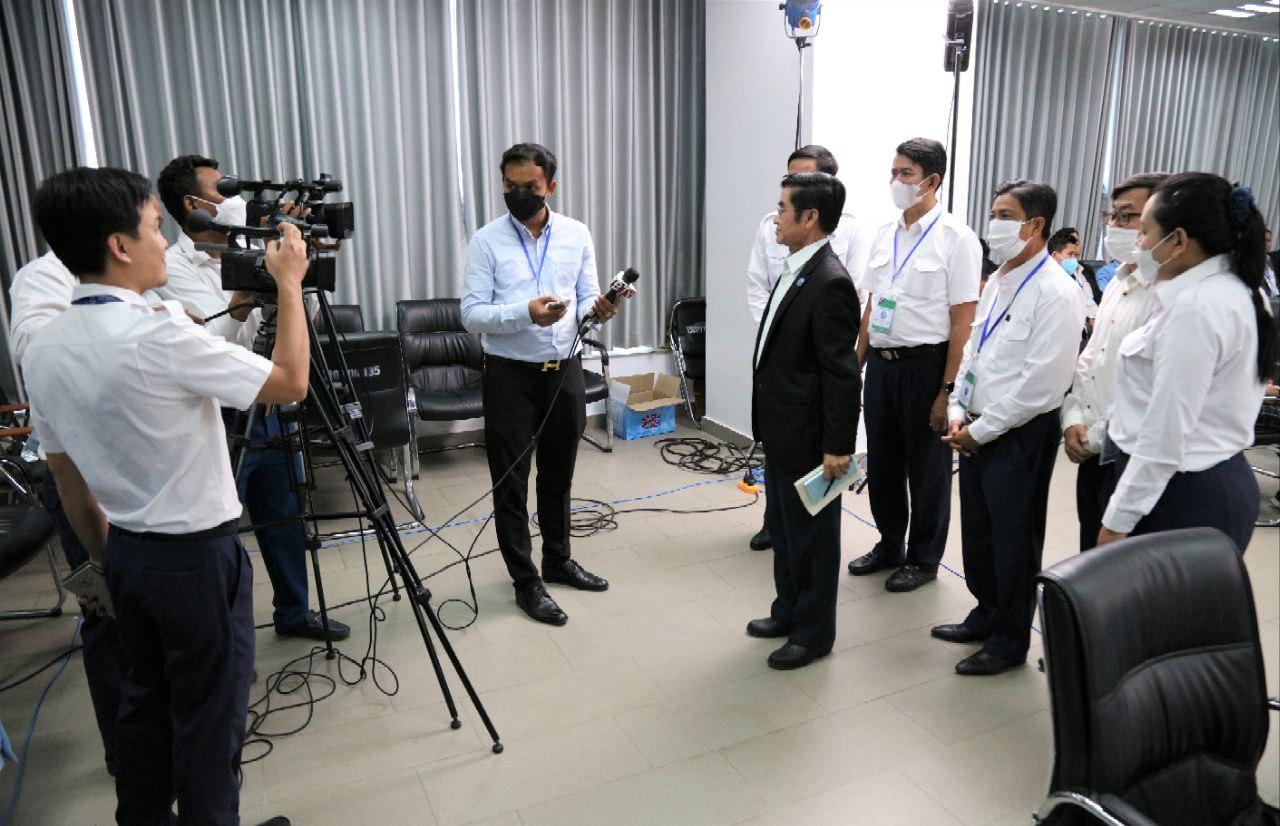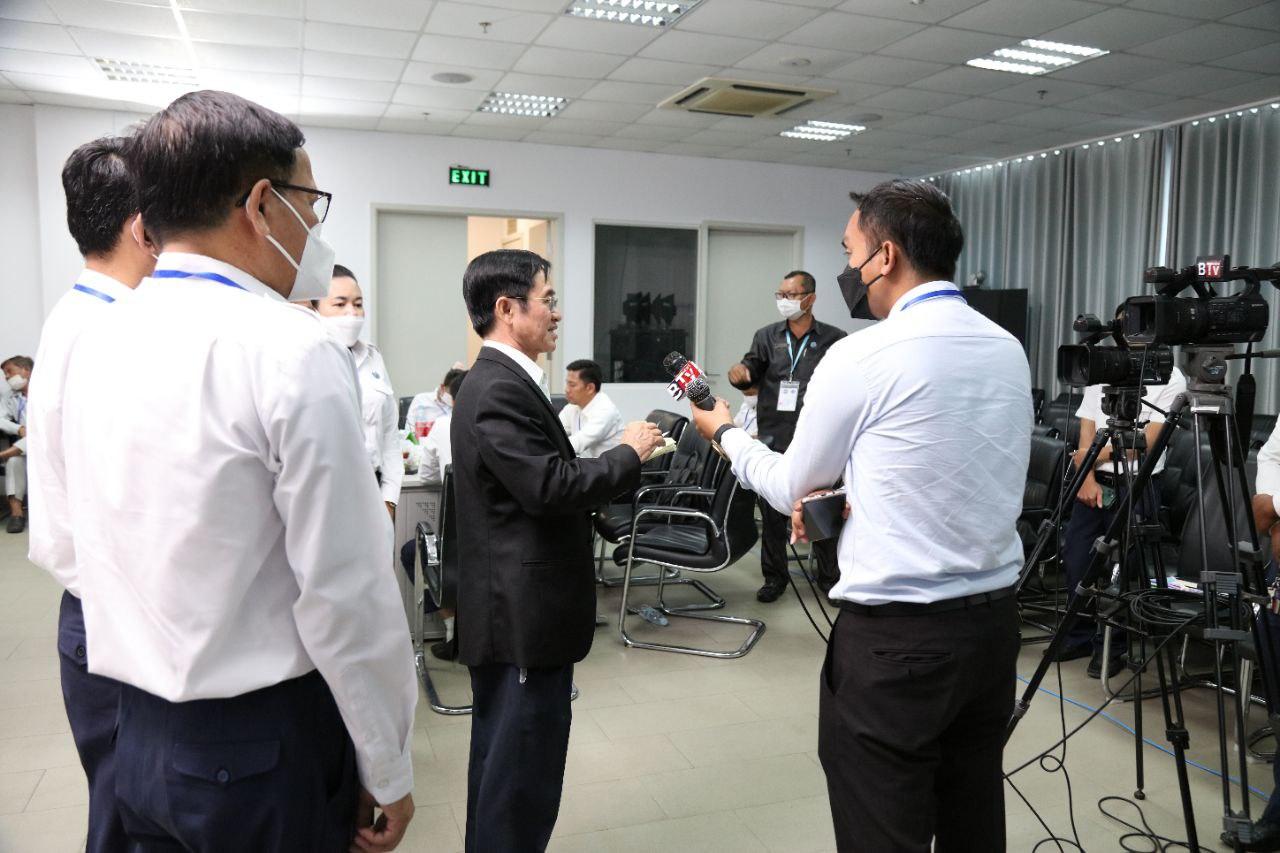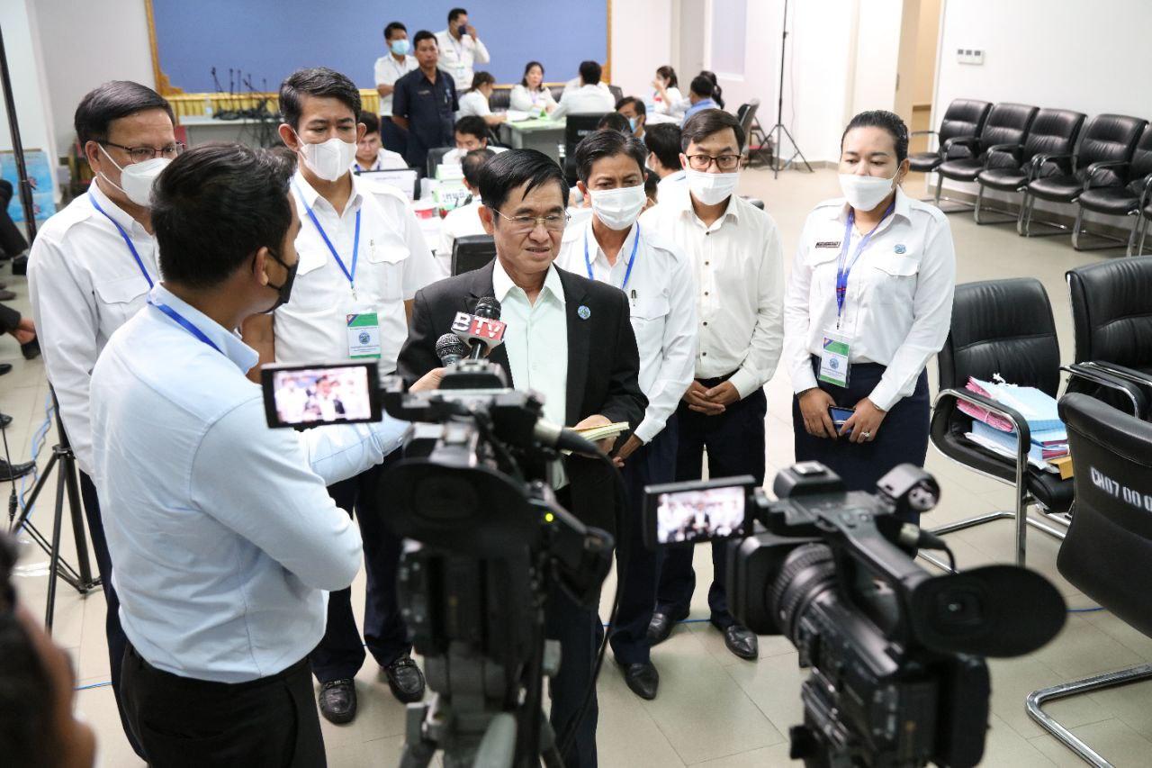 រូបភាពសកម្មភាព កិច្ចសម្ភាសន៍ ឯកឧត្ដម ហង្ស ពុទ្ធា សមាជិក និងជាអ្នកនាំពាក្យ គ.ជ.ប ជាមួយអ្នកសារព័ត៌មាន ស្ដីពីការត្រួតពិនិត្យ និងផ្ទៀងផ្ទាត់ឡើងវិញនូវលទ្ធផលនៃការបោះឆ្នោតតាមឃុំ សង្កាត់ នាព្រឹកថ្ងៃទី១៤ ខែមិថុនា ឆ្នាំ២០២២ នៅទីស្ដីការ គ.ជ.ប។