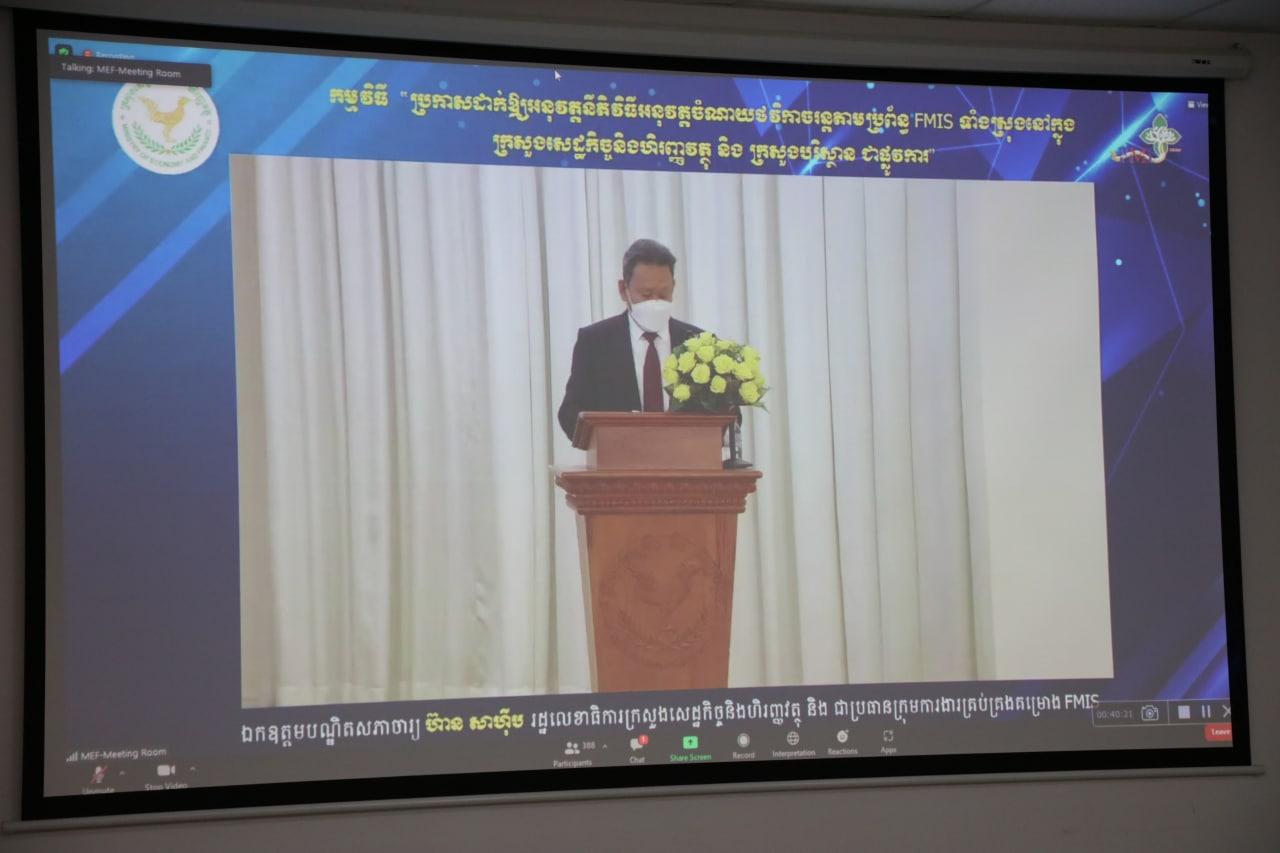 រូបភាពសកម្មភាព ឯកឧត្ដម ទេព នីថា អគ្គលេខាធិការ គ.ជ.ប ដឹកនាំមន្ត្រី គ.ជ.ប ចូលរួមពិធី "ប្រកាសដាក់ឱ្យប្រើប្រាស់ នីតិវិធីអនុវត្តការងារចំណាយថវិកាចរន្តគ្រប់មុខសញ្ញាតាមប្រព័ន្ធ FMIS ទាំងស្រុងនៅក្រសួងសេដ្ឋកិច្ច និងហិរញ្ញវត្ថុ និងក្រសួងបរិស្ថានជាផ្លូវការ" នៅព្រឹកថ្ងៃទី១៧ ខែតុលា ឆ្នាំ២០២២ តាមប្រព័ន្ធសន្និសីទវីដេ អូដោយប្រើប្រាស់កម្មវិធី Zoom នៅទីស្ដីការ គ.ជ.ប ។
