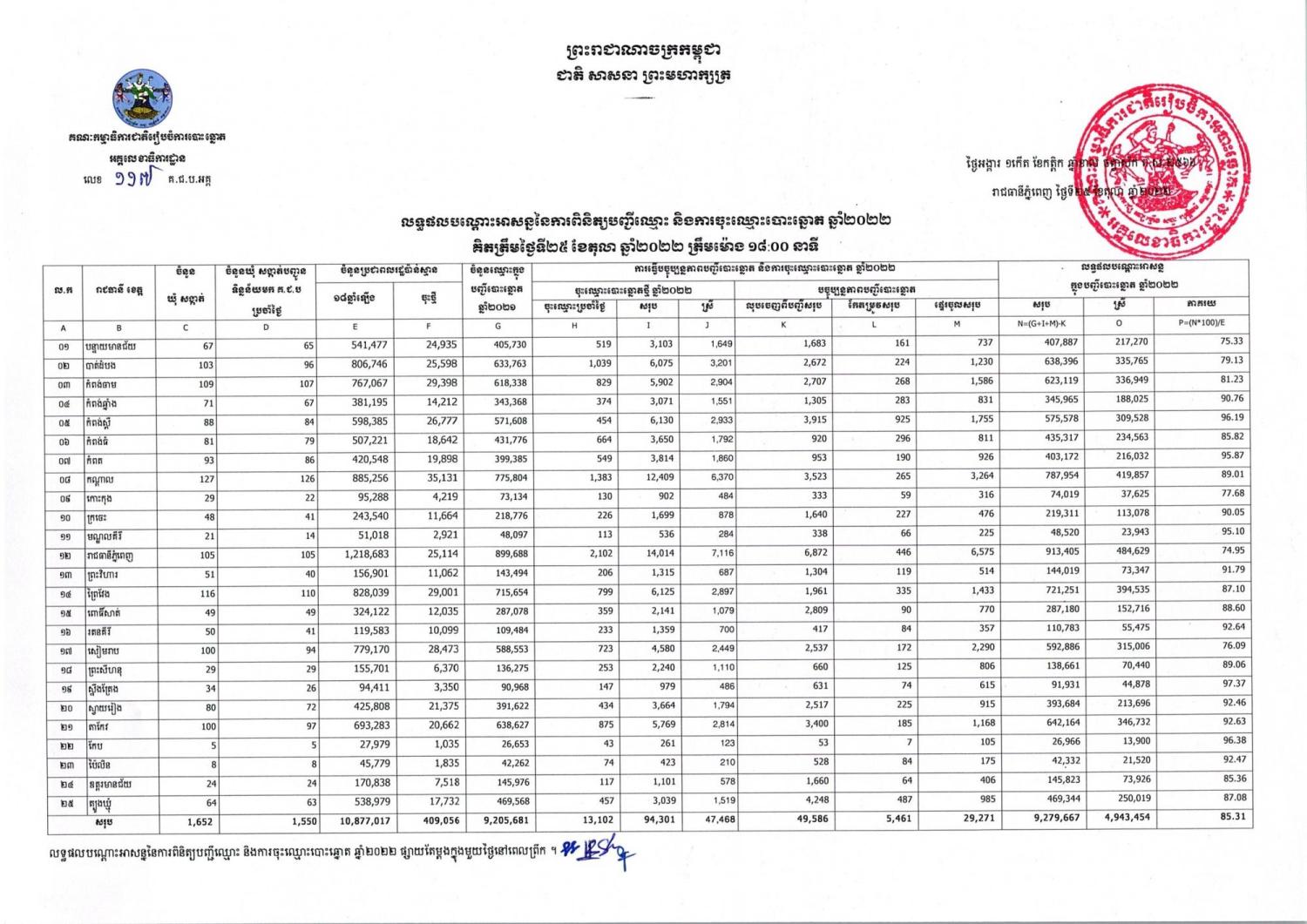 លទ្ធផលបណ្តោះអាសន្ននៃការពិនិត្យបញ្ជីឈ្មោះ និងការចុះឈ្មោះបោះឆ្នោត ឆ្នាំ២០២២ គិតចាប់ត្រឹមថ្ងៃទី២៥ ខែតុលា ឆ្នាំ២០២២