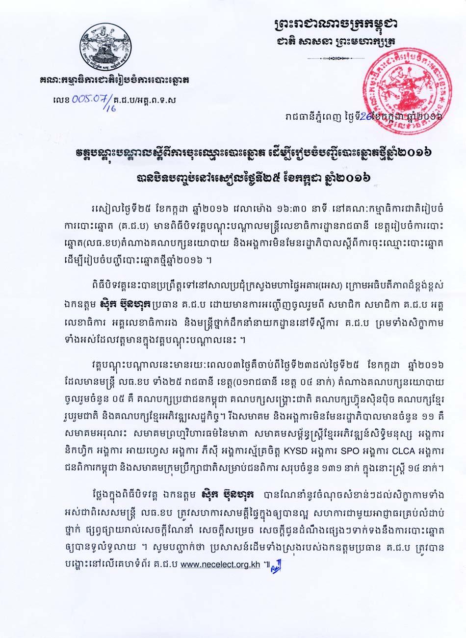 វគ្គបណ្ដុះបណ្ដាលស្តីពីការចុះឈ្មោះបោះឆ្នោត ដើម្បីរៀបចំបញ្ជីបោះឆ្នោតថ្មីឆ្នាំ២០១៦ បានបិទបញ្ចប់