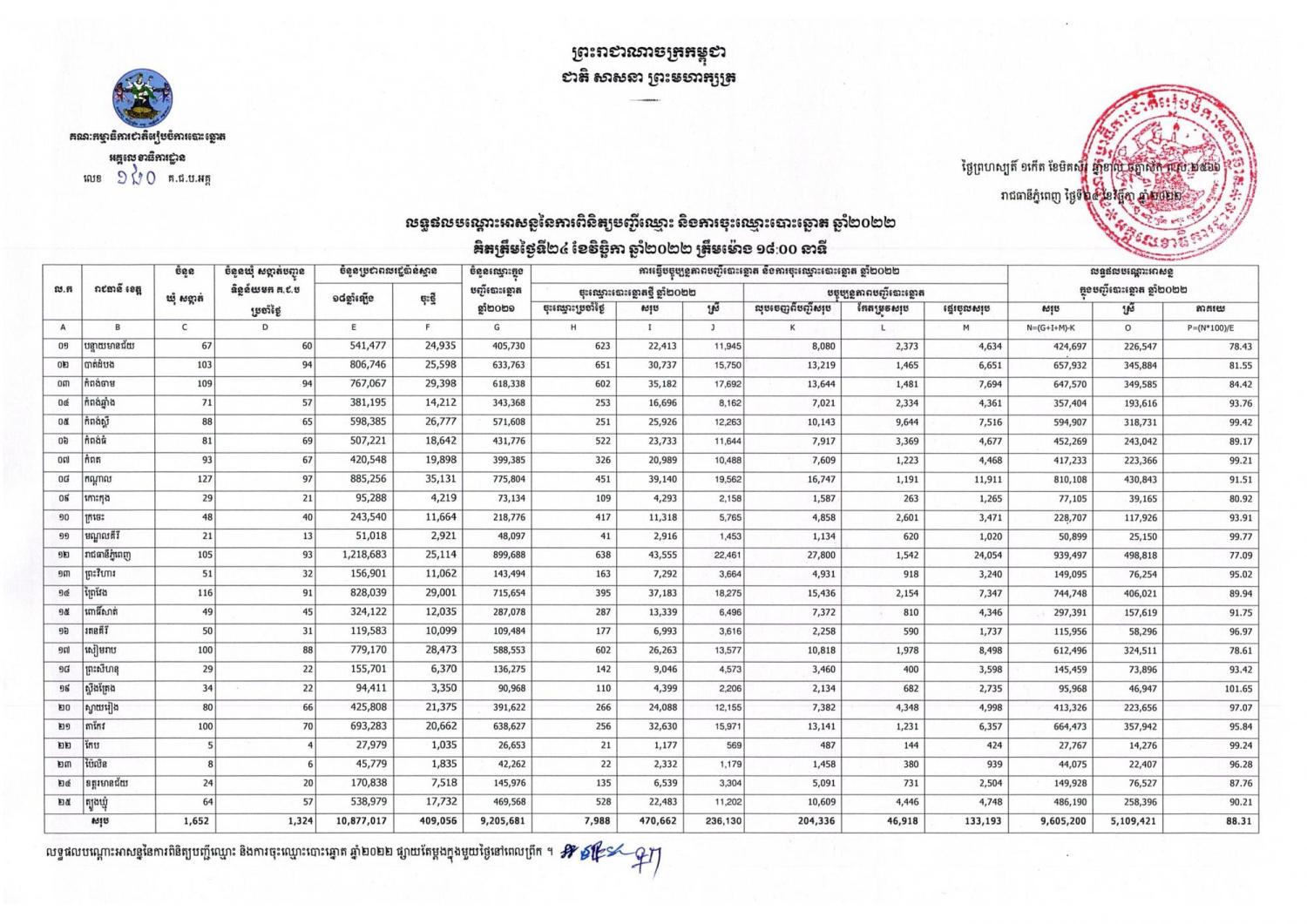 លទ្ធផលបណ្តោះអាសន្ននៃការពិនិត្យបញ្ជីឈ្មោះ និងការចុះឈ្មោះបោះឆ្នោត ឆ្នាំ២០២២ គិតត្រឹមថ្ងៃទី២៤ ខែវិច្ឆិកា ឆ្នាំ២០២២