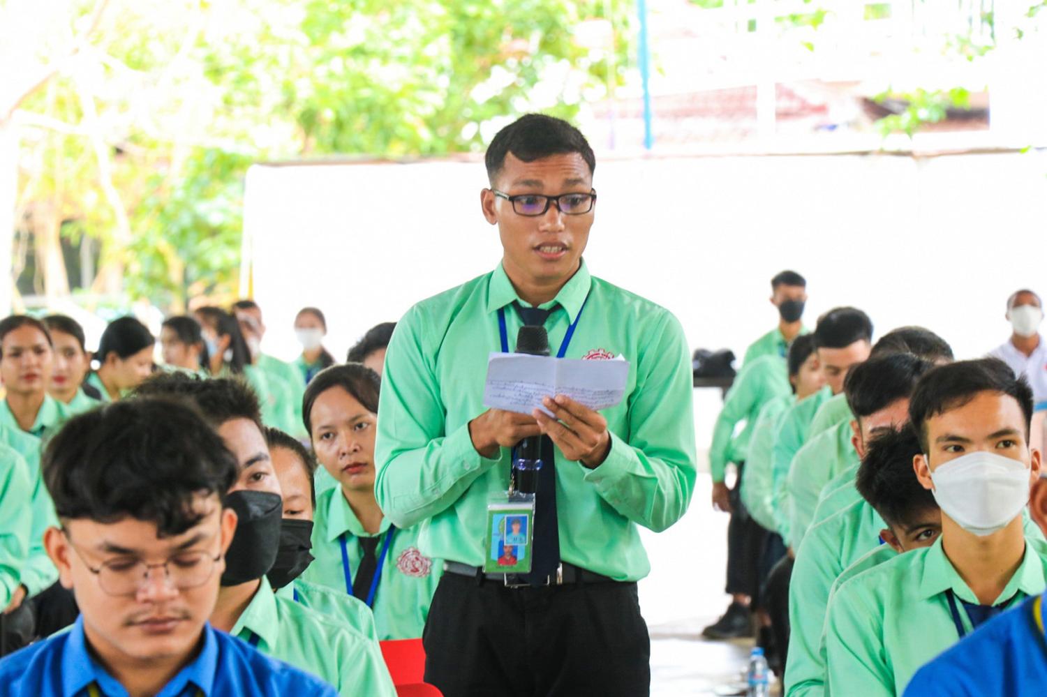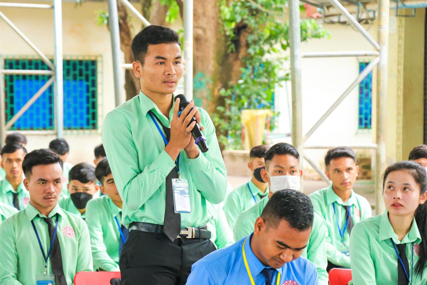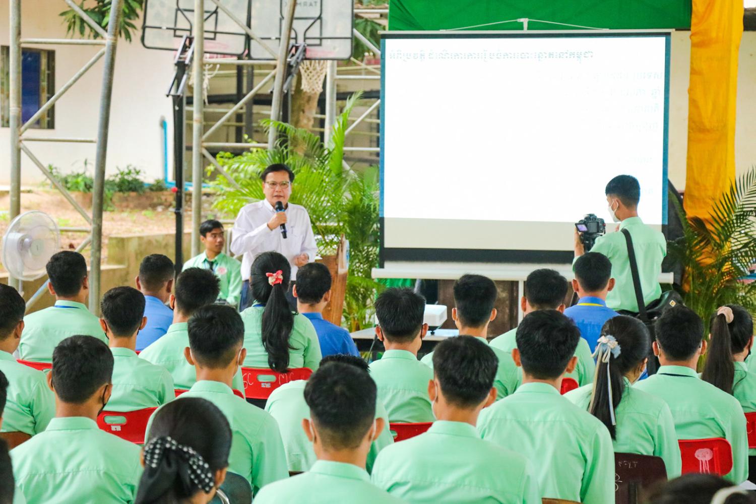 រូបភាពសកម្មភាព ឯកឧត្ដម សោម សូរីដា ទីប្រឹក្សា គ.ជ.ប និងជាអគ្គលេខាធិការរង គ.ជ.ប អញ្ជើញជាអធិបតីក្នុង វគ្គអប់រំអ្នកបោះឆ្នោតបន្ត ស្ដីពីសារៈសំខាន់នៃការបោះឆ្នោត ជូនដល់សិស្ស និស្សិតនៅតាមគ្រឹះស្ថានសិក្សារដ្ឋ និងឯកជន នៅសាលា បច្ចេកទេស ដុនបូស្កូ ខេត្ត កែប នាព្រឹកថ្ងៃទី៦ ខែធ្នូ ឆ្នាំ២០២២។
