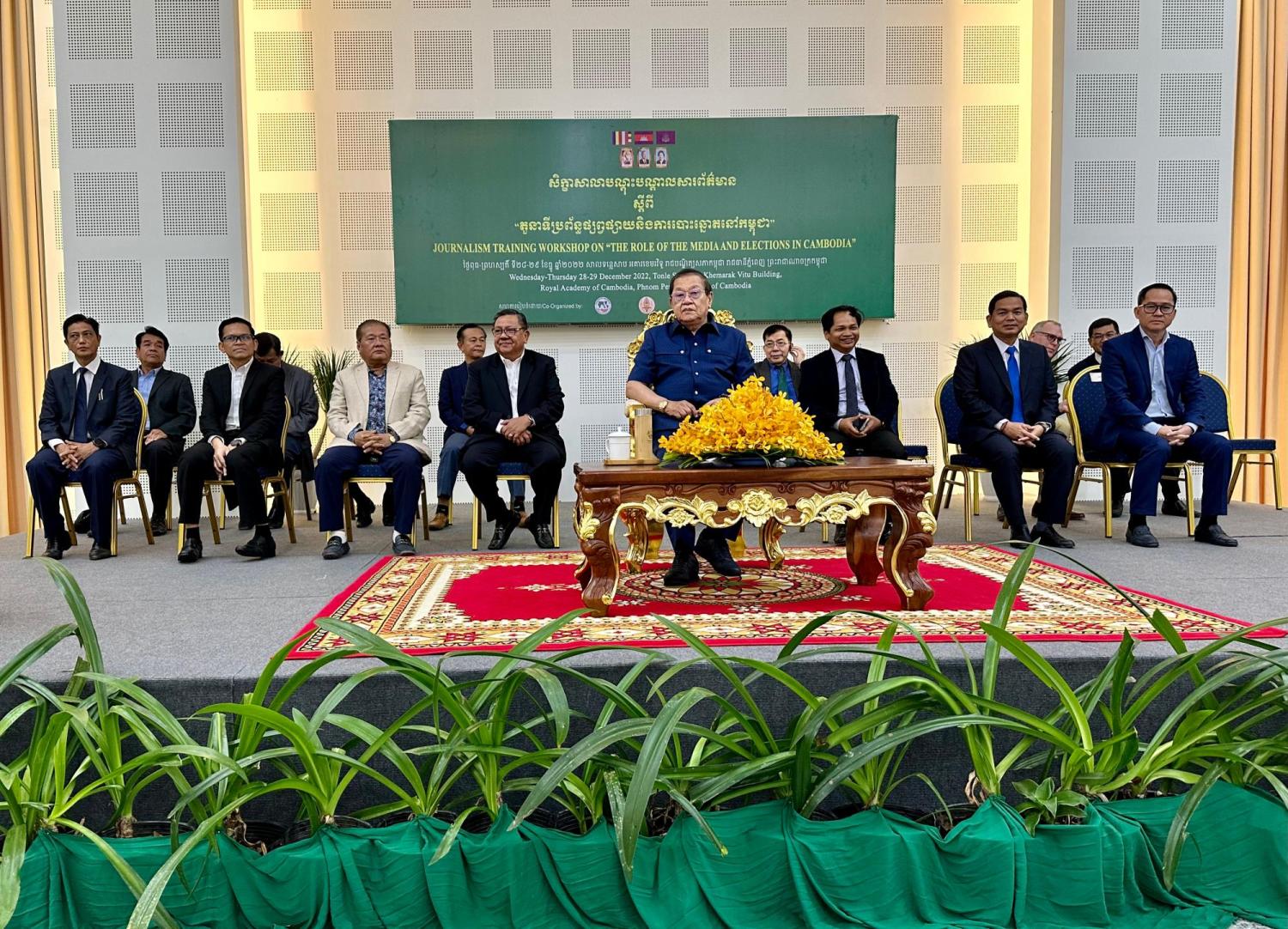 រូបភាពសកម្មភាព ឯកឧត្ដម ម៉ុក ដារ៉ា អគ្គលេខាធិការរង គ.ជ.ប អញ្ជើញចូលរួមជាវាគ្មិន ក្នុងសិក្ខាសាលាបណ្តុះបណ្តាលសារព័ត៌មានស្ដីពី «តួនាទីប្រព័ន្ធផ្សព្វផ្សាយនិង ការបោះឆ្នោតនៅកម្ពុជា» នៅសាលទន្លេសាប អគារខេមរវិទូ នៃរាជបណ្ឌិត្យសភាកម្ពុជា នាថ្ងៃទី២៨ ខែធ្នូ ឆ្នាំ២០២២។