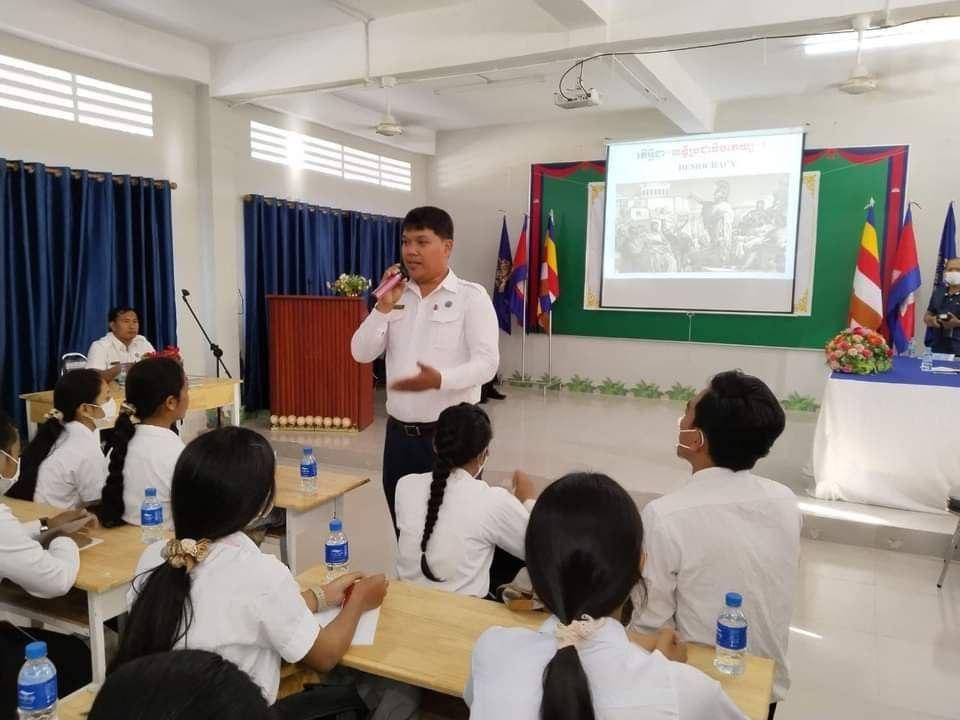 រូបភាពសកម្មភាព ឯកឧត្ដម ខន កែវមនោ ទីប្រឹក្សាគណៈកម្មាធិការជាតិរៀបចំការបោះឆ្នោត (គ.ជ.ប) និងជាអគ្គនាយករងនៃអគ្គនាយកដ្ឋានអប់រំ ព័ត៌មាន និងទំនាក់ទំនងសាធារណៈ បានចូលរួមជាអធិបតីក្នុងពិធីបើកវគ្គអប់រំអ្នកបោះឆ្នោតបន្ត ស្តីពី «សារៈសំខាន់នៃការបោះឆ្នោត» ជូនដល់សិស្សានុសិស្សនៃវិទ្យាល័យ ហ៊ុន សែន ឧត្ដរមានជ័យ ក្នុងក្រុងសំរោង ខេត្តឧត្តរមានជ័យ ចំនួន ១០៨នាក់ នាព្រឹកថ្ងៃទី១៦ ខែកុម្ភៈ ឆ្នាំ២០២៣។