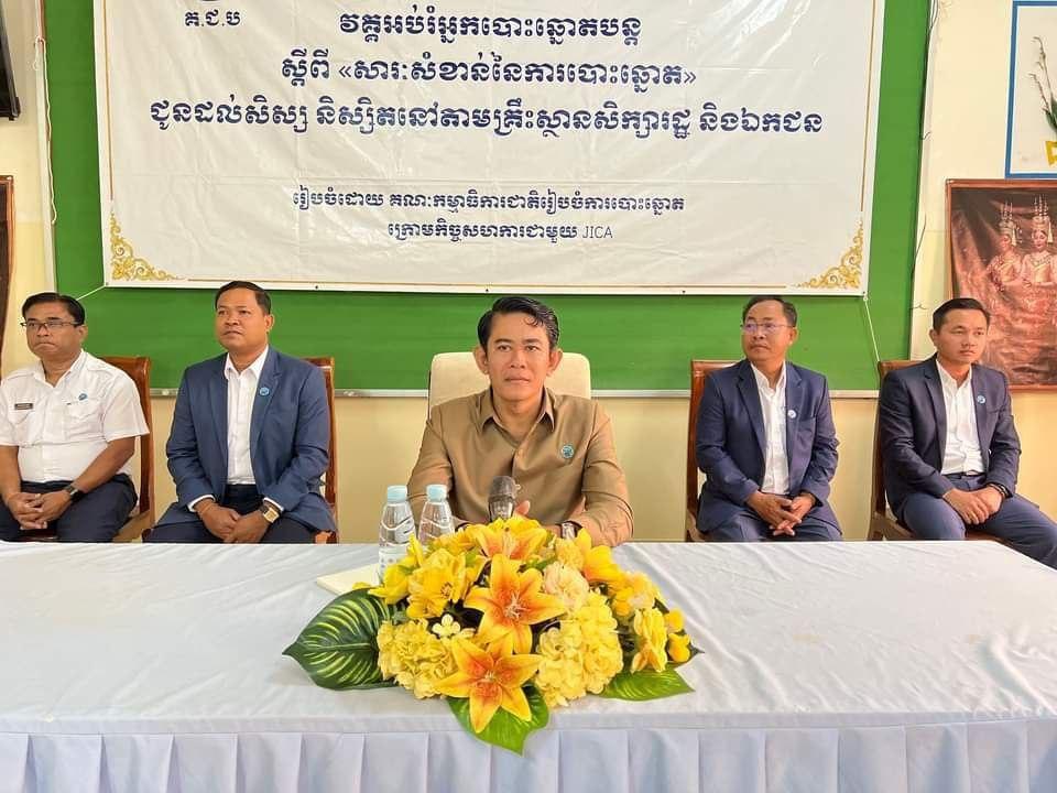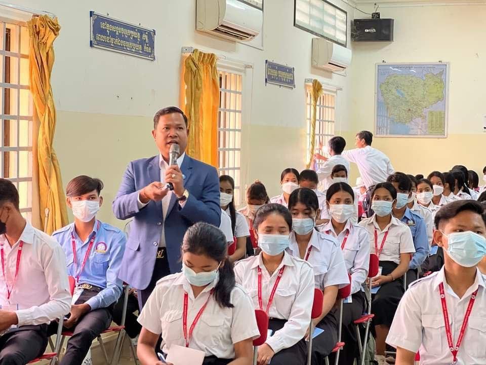 រូបភាពសកម្មភាព ឯកឧត្ដម ស៊ុំប៊ុនហុង អគ្គនាយកនៃអគ្គនាយកដ្ឋានអប់រំ ព័ត៌មាន និងទំនាក់ទំនងសាធារណៈ បានអញ្ជើញជាអធិបតី ក្នុងវគ្គអប់រំអ្នកបោះឆ្នោតបន្ត ស្តីពី «សារៈសំខាន់នៃការបោះឆ្នោត» ជូនដល់សិស្សានុសិស្ស នៃវិទ្យាល័យ រវៀង ក្នុងខេត្តព្រះវិហារ មានសិក្ខាកាមចូលរួម ចំនួន ១០០ នាក់ ដោយមានកិច្ចសហការជាមួយទីភ្នាក់ងារសហប្រតិបត្តិការអន្តរជាតិនៃប្រទេសជប៉ុន នាព្រឹកថ្ងៃទី១១ ខែមីនា ឆ្នាំ២០២៣។