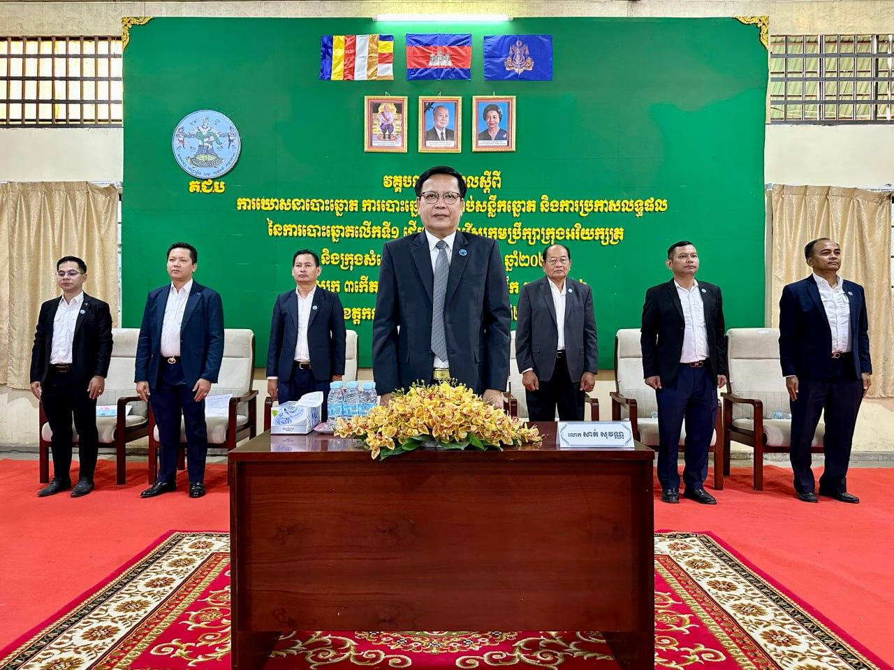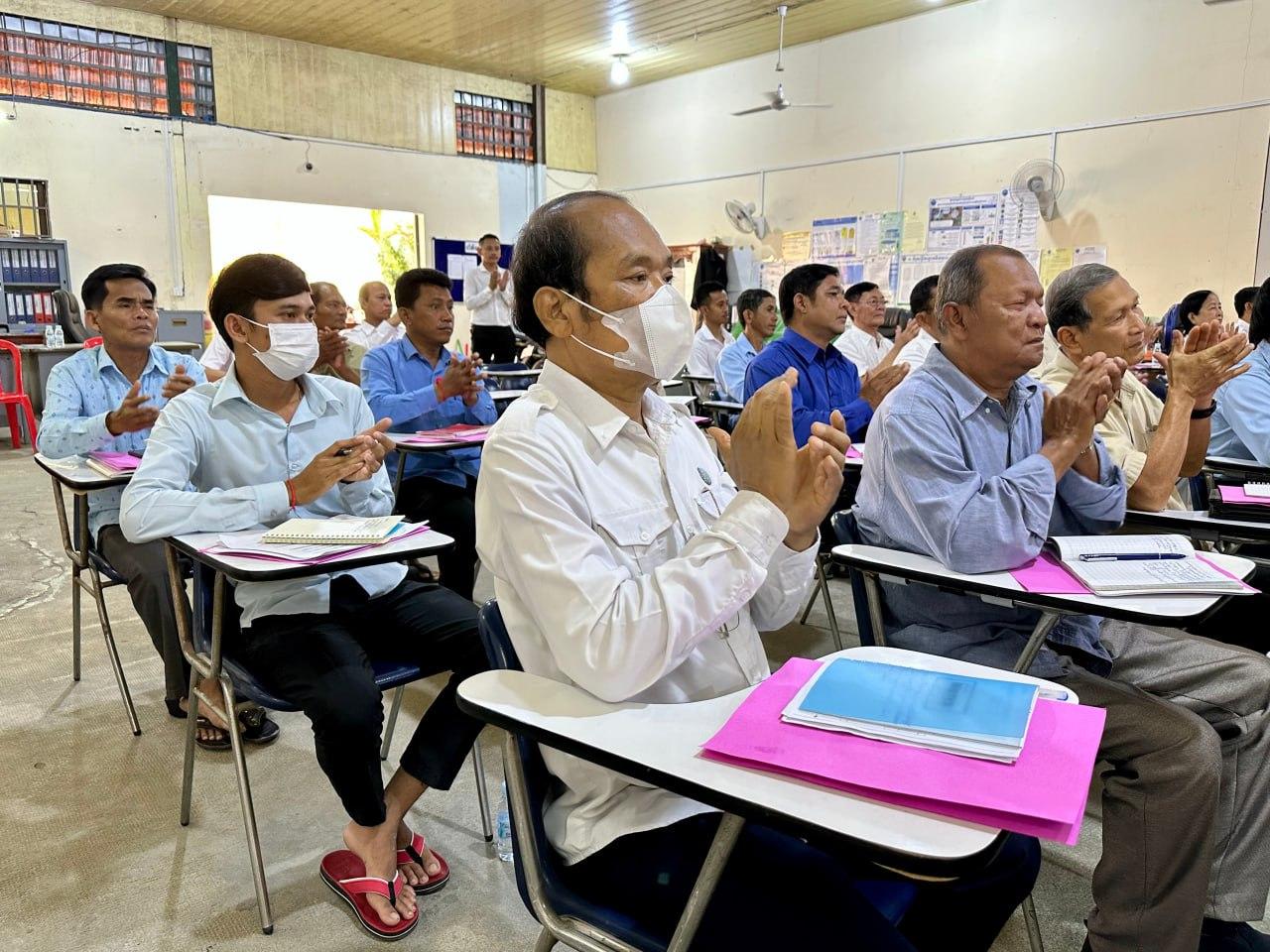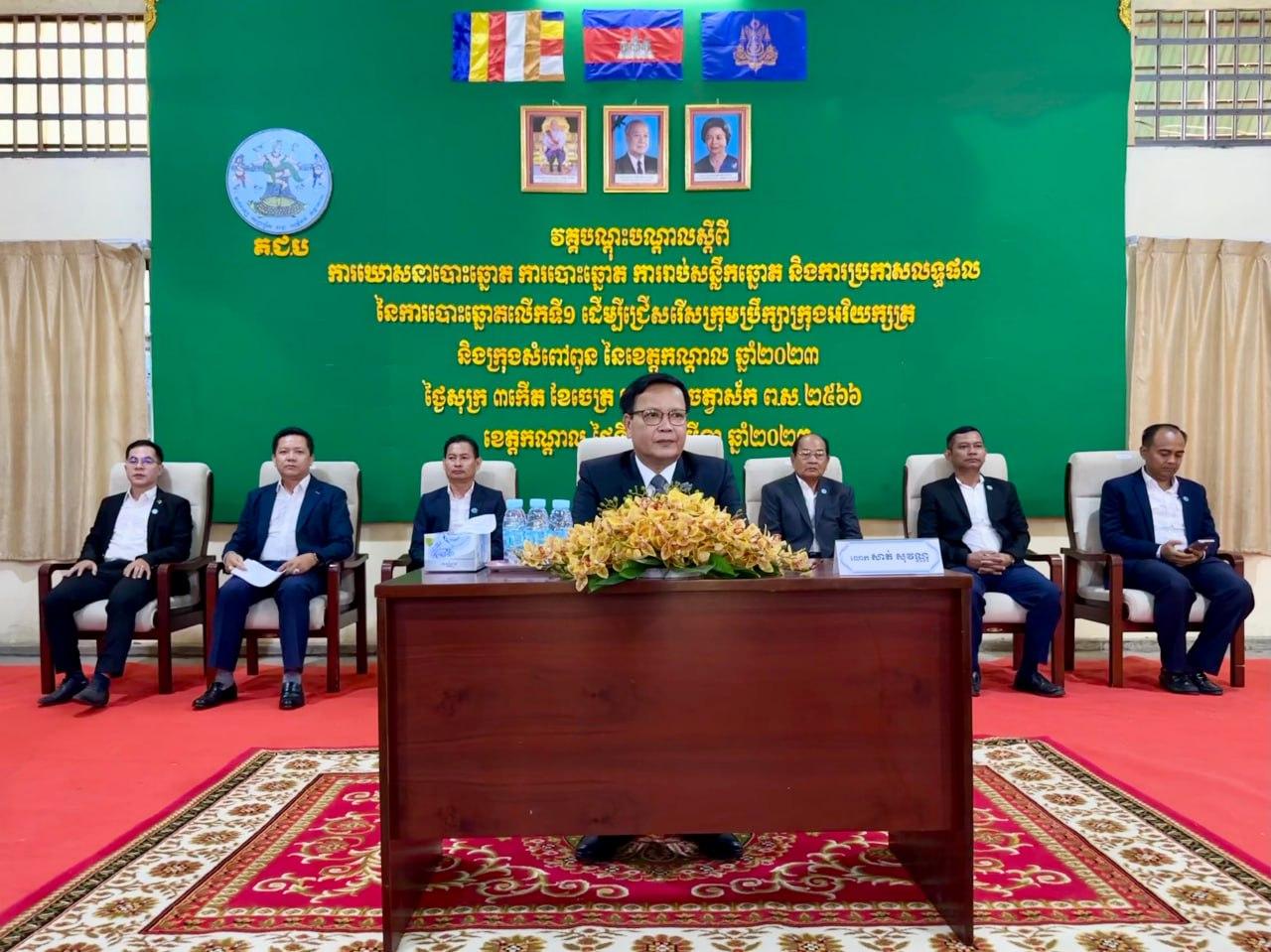 រូបភាពសកម្មភាព លោក សាត់ សុវណ្ណ អគ្គនាយករងនៃអគ្គនាយកដ្ឋានអប់រំ ព័ត៌មាន និងទំនាក់ទំនងសាធារណៈ អញ្ជើញជាអធិបតី ក្នុងពិធីបើកវគ្គបណ្ដុះបណ្ដាលស្ដីពីការឃោសនាបោះឆ្នោត ការបោះឆ្នោត ការរាប់សន្លឹកឆ្នោត និងការប្រកាសផ្សាយលទ្ធផលនៃការបោះឆ្នោតលើកទី១ (ការបោះឆ្នោតឡើងវិញ) ដើម្បីជ្រើសរើសក្រុមប្រឹក្សាក្រុងអរិយក្សត្រ និងក្រុងសំពៅពូននៃខេត្តកណ្តាល នាព្រឹកថ្ងៃទី២៤ ខែមីនា ឆ្នាំ២០២៣ នៅលេខាធិការដ្ឋាននៃគណៈកម្មការរៀបចំការបោះឆ្នោតខេត្តកណ្ដាល។