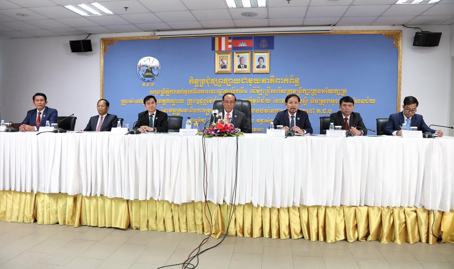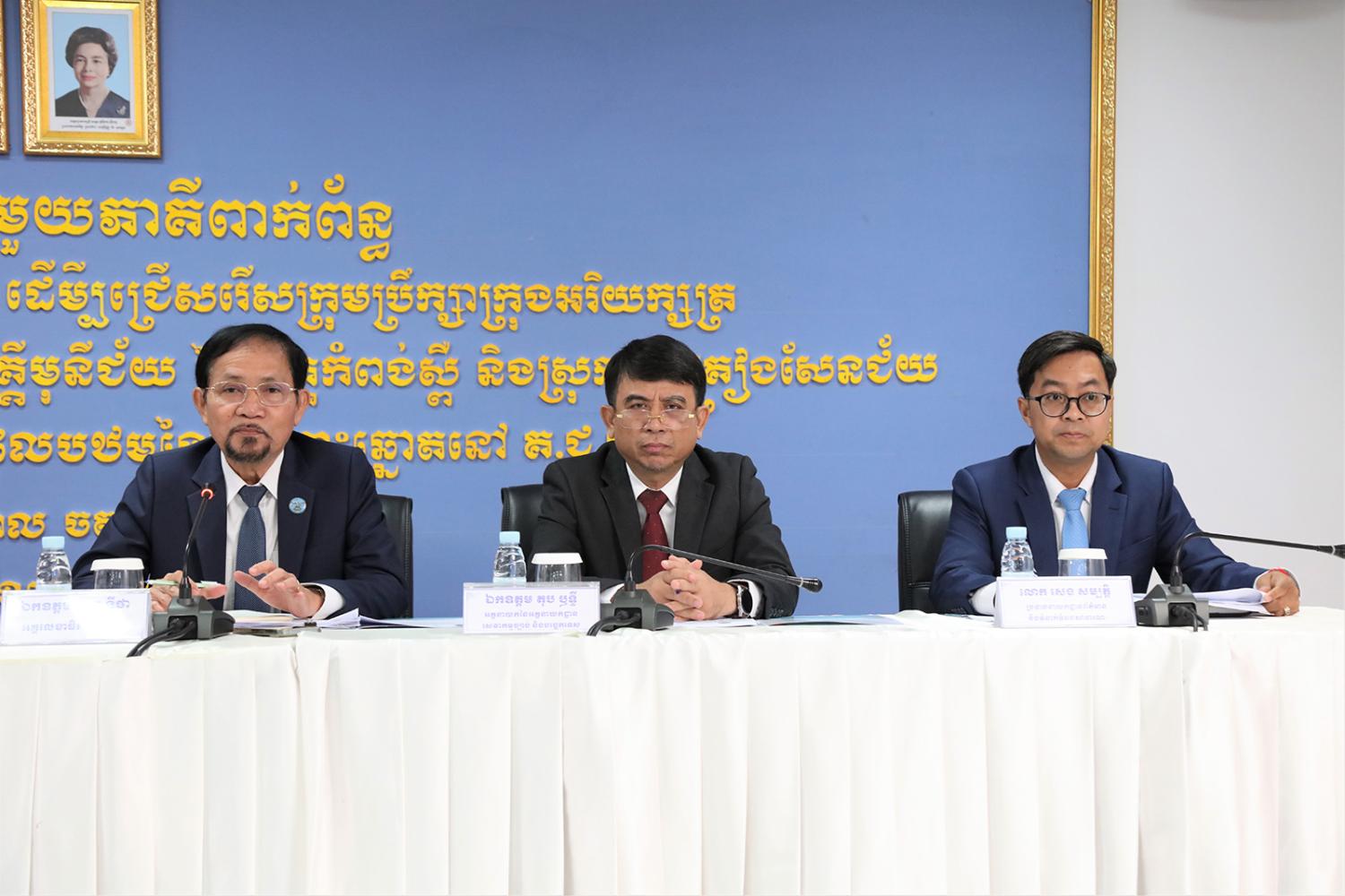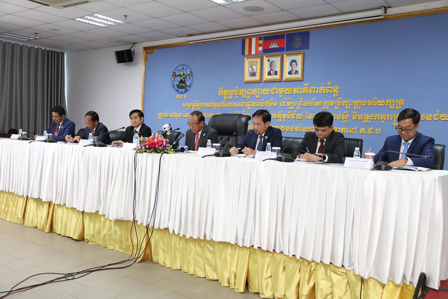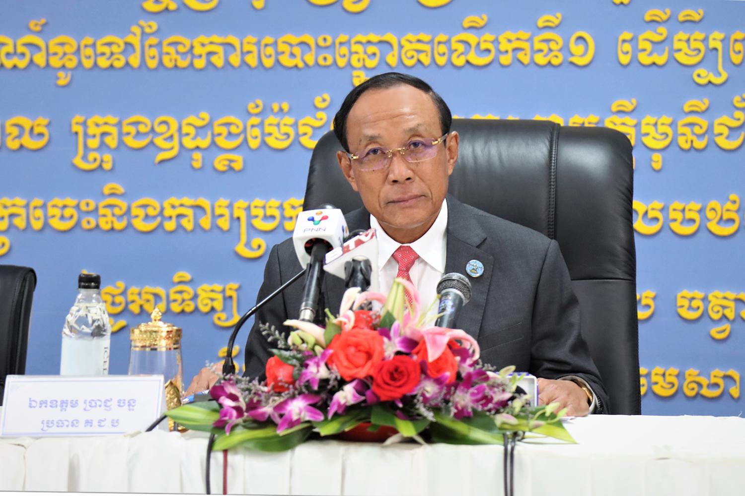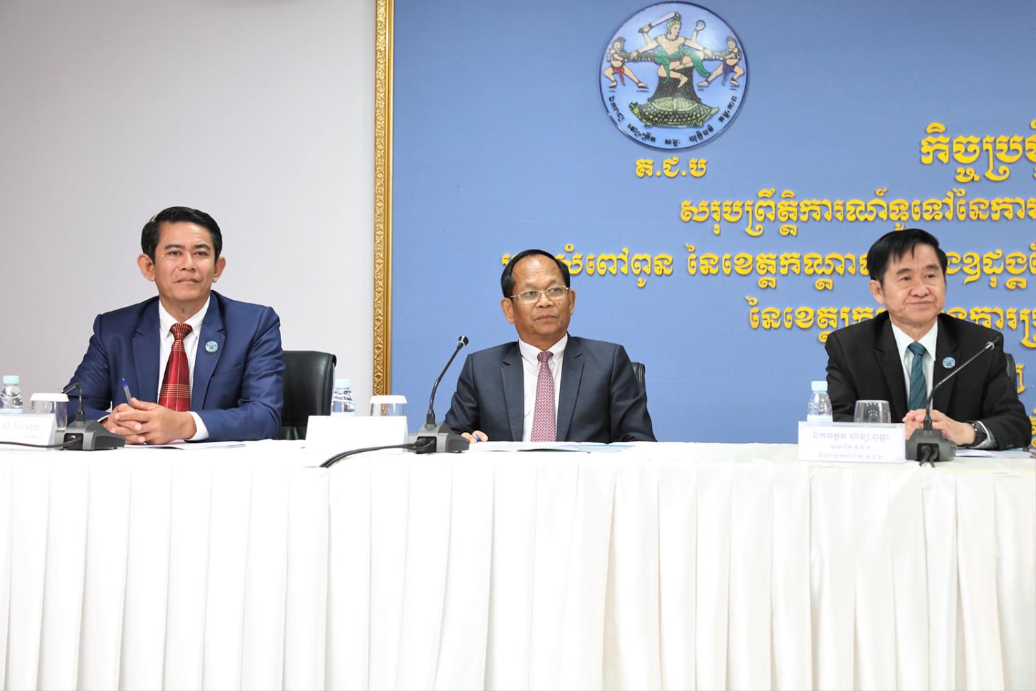 រូបភាពសកម្មភាព ឯកឧត្តម ប្រាជ្ញ ចន្ទ ប្រធាន គ.ជ.ប ដឹកនាំកិច្ចប្រជុំផ្សព្វផ្សាយជាមួយភាគីពាក់ព័ន្ធ ស្ដីពីសរុបព្រឹត្តិការណ៍ទូទៅនៃការបោះឆ្នោតលើកទី១ ដើម្បីជ្រើសរើសក្រុមប្រឹក្សាក្រុងអរិយក្សត្រ ក្រុងសំពៅពូន នៃខេត្តកណ្តាល ក្រុងឧដុង្គម៉ែជ័យ ស្រុកសាមគ្គីមុនីជ័យ នៃខេត្តកំពង់ស្ពឺ និងស្រុកអូរគ្រៀងសែនជ័យ នៃខេត្តក្រចេះ និងការប្រកាសផ្សាយលទ្ធផលបឋមនៃការបោះឆ្នោតនៅ គ.ជ.ប នារសៀលថ្ងៃទី៩ ខែមេសា ឆ្នាំ២០២៣ នៅទីស្ដីការ គ.ជ.ប។