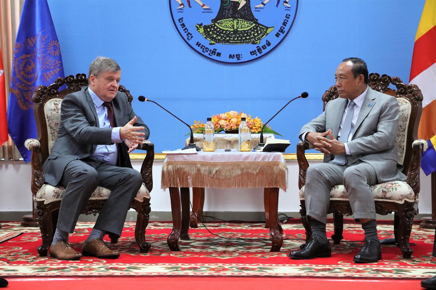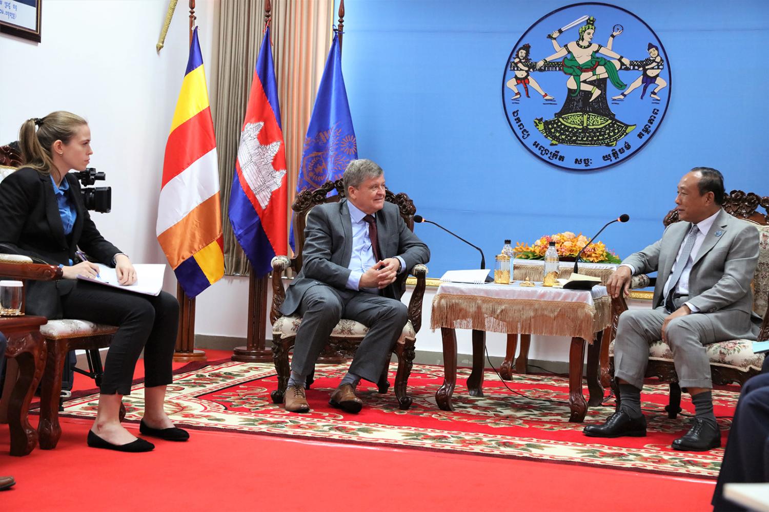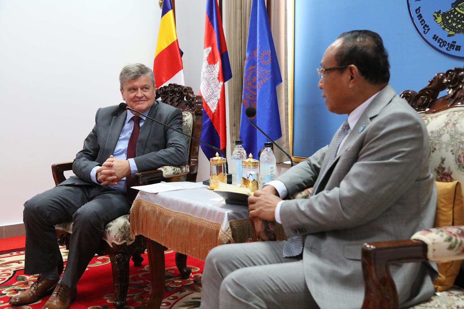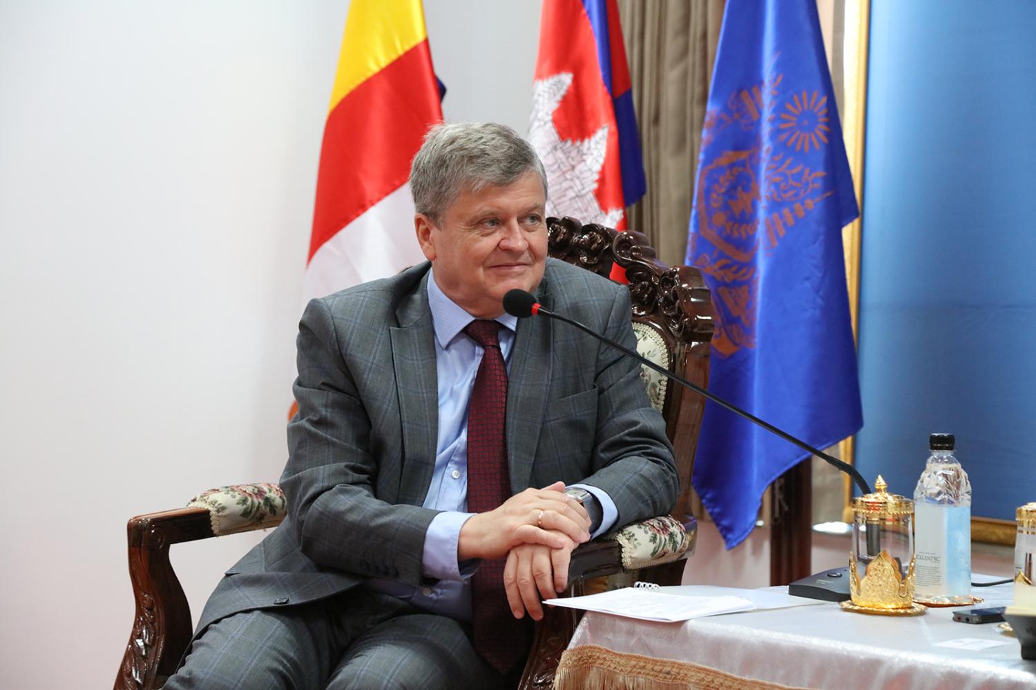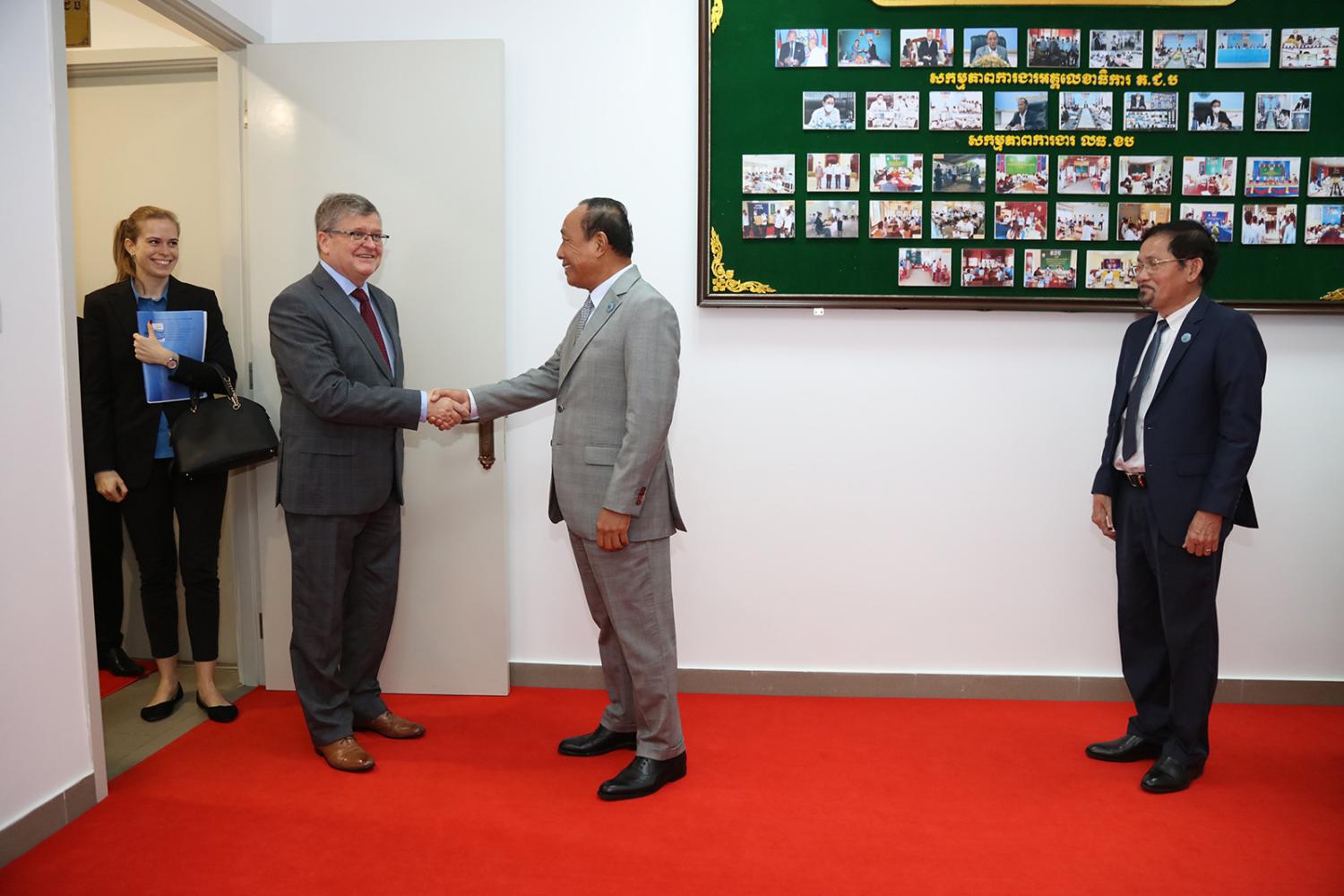រូបភាពសកម្មភាព ឯកឧត្ដមប្រាជ្ញ ចន្ទ ប្រធាន គ.ជ.ប ទទួលជួបឯកឧត្ដម Anatoly BOROVIK ឯកអគ្គរដ្ឋទូត នៃសហព័ន្ធរុស្ស៊ីប្រចាំកម្ពុជា និងសហការី ពាក់ព័ន្ធនឹងបញ្ហានានាទាក់ទងនឹងកិច្ចសហប្រតិបត្តិការរវាងគណៈកម្មាធិការមជ្ឈិមរៀបចំការបោះឆ្នោត នៃសហព័ន្ធរុស្សី និង គ.ជ.ប កម្ពុជា នៅទីស្ដីការ គ.ជ.ប នាព្រឹកថ្ងៃទី២០ ខែមេសា ឆ្នាំ២០២៣។