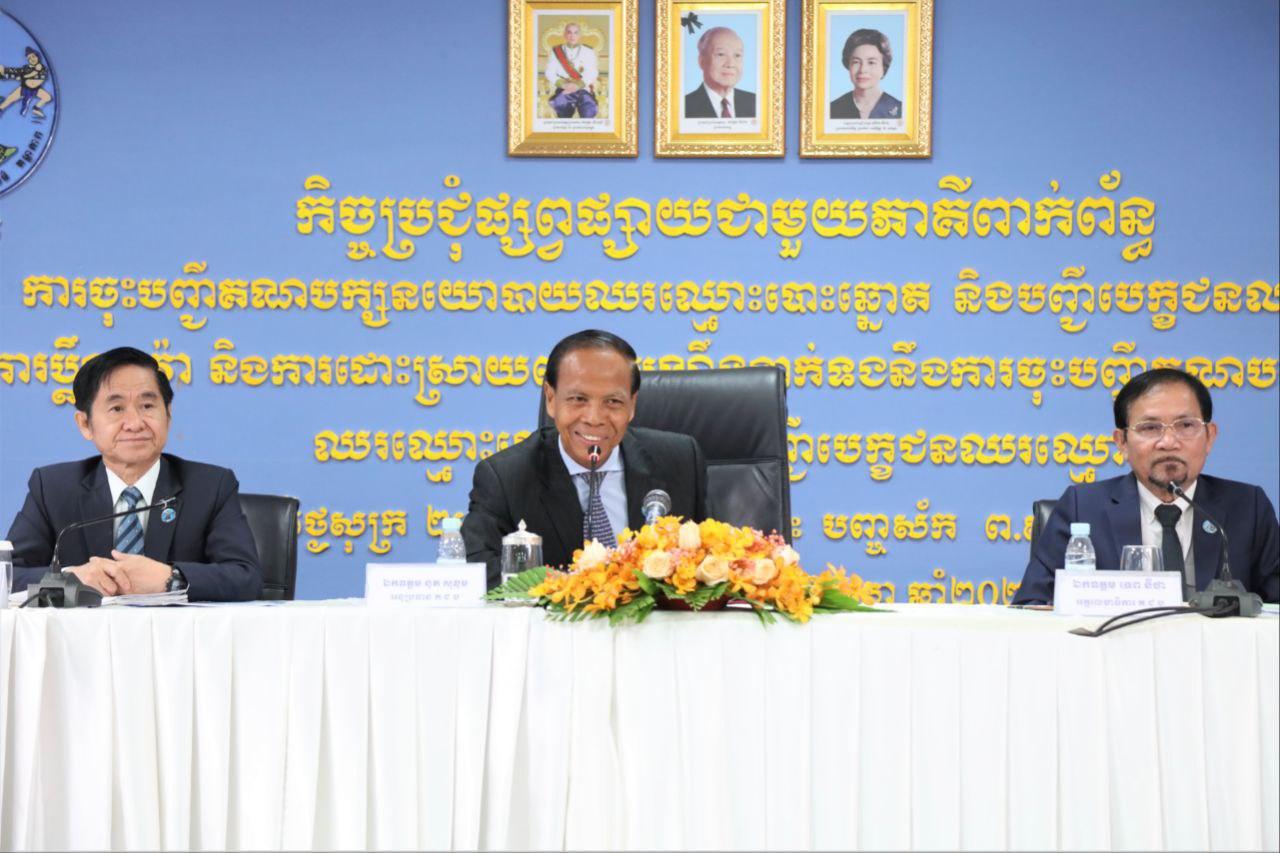 រូបភាពសកម្មភាព ឯកឧត្ដម នុត សុខុម អនុប្រធាន គ.ជ.ប ដឹកនាំកិច្ចប្រជុំផ្សព្វផ្សាយជាមួយភាគីពាក់ព័ន្ធ ស្ដីពីការចុះបញ្ជីគណបក្សនយោបាយឈរឈ្មោះបោះឆ្នោត និងបញ្ជីបេក្ខជនឈរឈ្មោះ និងការប្តឹងតវ៉ា និងការដោះស្រាយពាក្យបណ្តឹងទាក់ទងនឹងការចុះបញ្ជីគណបក្សនយោបាយ ឈរឈ្មោះបោះឆ្នោត និងបញ្ជីបេក្ខជនឈរឈ្មោះ សម្រាប់ការបោះឆ្នោតជ្រើសតាំងតំណាងរាស្ត្រ នីតិកាលទី៧ ឆ្នាំ២០២៣ នៅទីស្ដីការ គ.ជ.ប នាព្រឹកថ្ងៃទី២១ ខែមេសា ឆ្នាំ២០២៣។