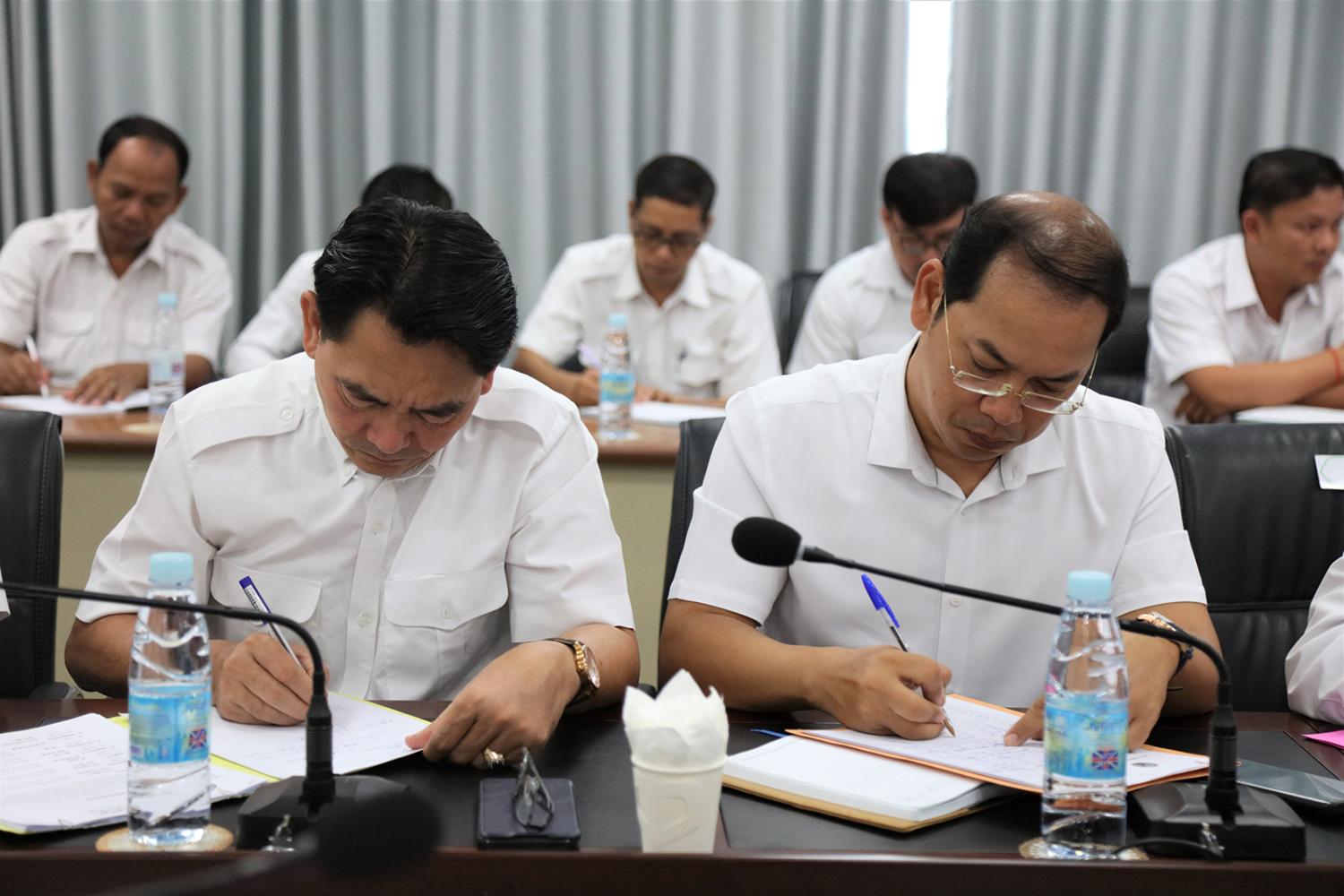 រូបភាពសកម្មភាព ឯកឧត្ដម ទេព នីថា អគ្គលេខាធិការ គ.ជ.ប បានដឹកនាំកិច្ចប្រជុំអគ្គលេខាធិការដ្ឋាន គ.ជ.ប ដើម្បីណែនាំដល់ថ្នាក់ដឹកនាំ និងមន្ត្រីជាន់ខ្ពស់ នៃអគ្គលេខាធិការដ្ឋាន គ.ជ.ប ដែលត្រូវចុះសម្របសម្រួល និងត្រួតពិនិត្យការប្រឡងជ្រើសរើសសមាសភាពគណៈកម្មការឃុំ សង្កាត់រៀបចំការបោះឆ្នោត សម្រាប់ការបោះឆ្នោតជ្រើសតាំងតំណាងរាស្រ្ដ នីតិកាលទី៧ ឆ្នាំ២០២៣ នាព្រឹកថ្ងៃទី២៤ ខែមេសា ឆ្នាំ២០២៣ នៅទីស្ដីការ គ.ជ.ប។
