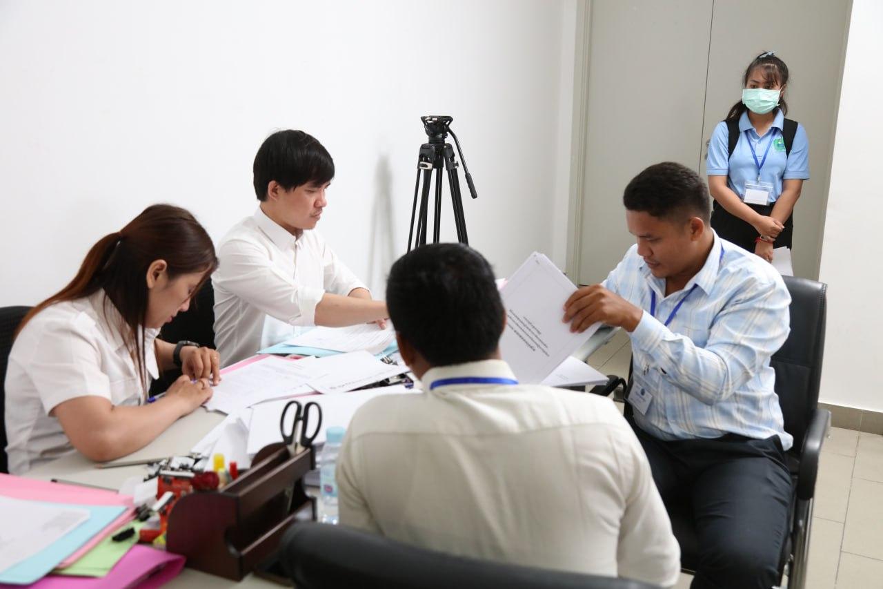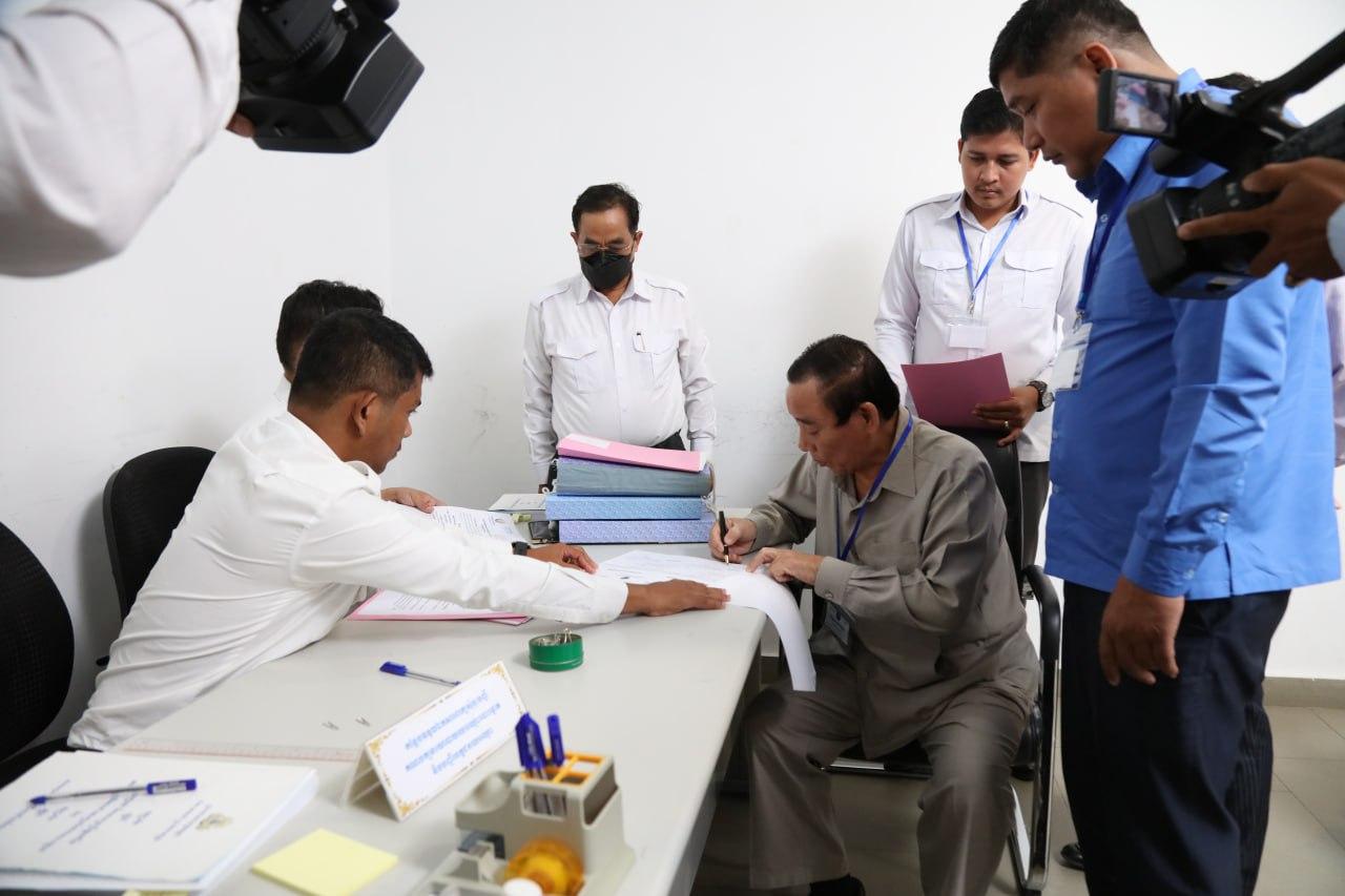 រូបភាពសកម្មភាព នៃការទទួលពាក្យសុំចុះបញ្ជីគណបក្សនយោបាយឈរឈ្មោះបោះឆ្នោត និងបញ្ជីបេក្ខជនឈរឈ្មោះបោះឆ្នោត ដែលរួមមាន គណបក្សប្រជាជនកម្ពុជា គណបក្សយុវជនកម្ពុជា គណបក្សខ្មែររួបរួមជាតិ និងគណបក្សធម្មាធិបតេយ្យ នៅទីស្ដីការ គ.ជ.ប នាព្រឹកថ្ងៃទី២៤ ខែមេសា ឆ្នាំ២០២៣។