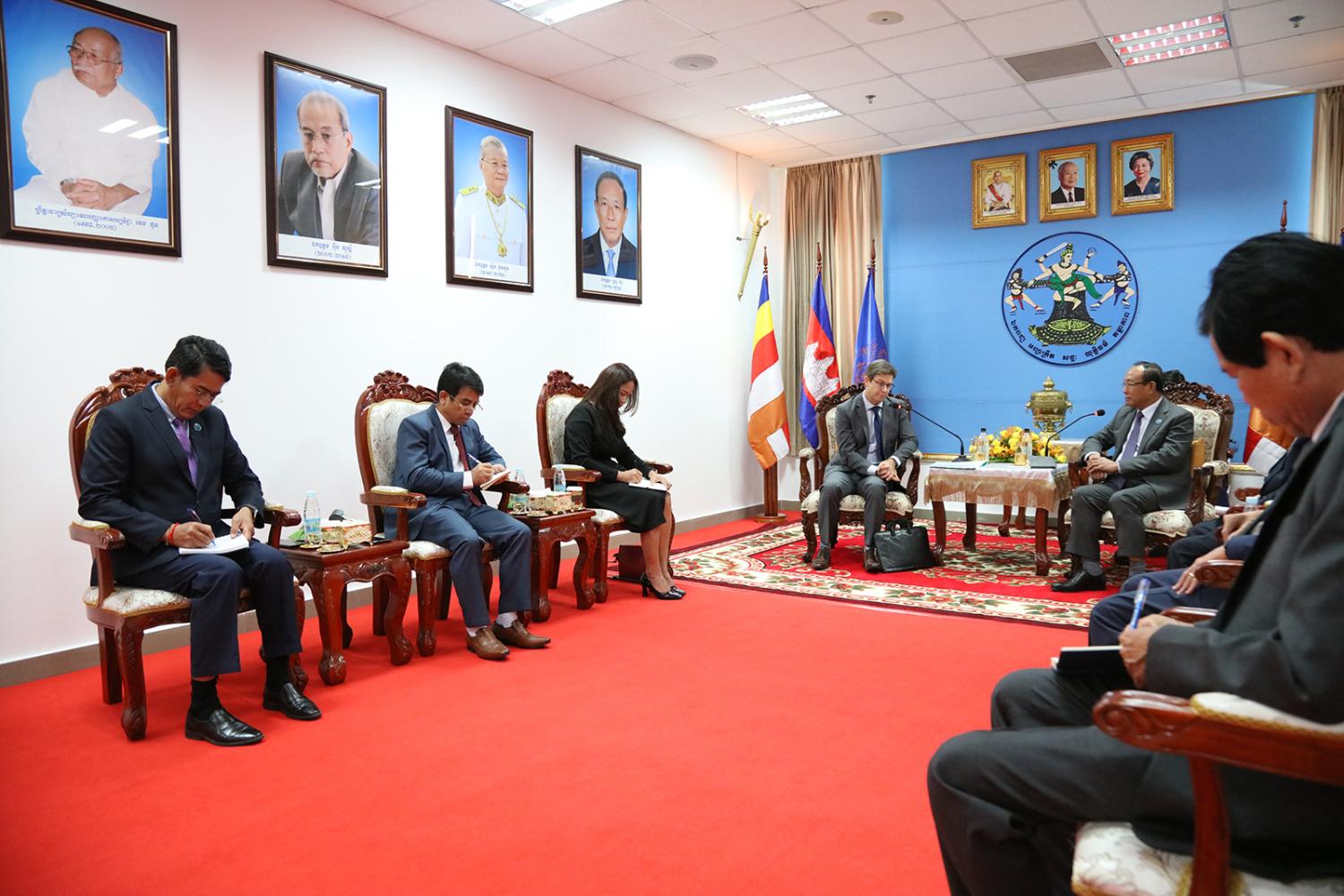 រូបភាពសកម្ម្ភភាព ឯកឧត្ដម ប្រាជ្ញ ចន្ទ ប្រធាន គ.ជ.ប ទទួលជួបឯកឧត្ដម ចាស្ទីន វ៉ាយអេត (Justin Whyatt) ឯកអគ្គរដ្ឋទូតអូស្ត្រាលី ប្រចាំកម្ពុជា និងសហការី ដើម្បីពិភាក្សាការងារពាក់ព័ន្ធនឹងការរៀបចំការបោះឆ្នោតជ្រើសតាំងតំណាងរាស្ត្រ នីតិកាលទី៧ ឆ្នាំ២០២៣ នាពេលខាងមុខនេះ នៅទីស្ដីការ គ.ជ.ប នាព្រឹកថ្ងៃទី៥ ខែឧសភា ឆ្នាំ២០២៣។