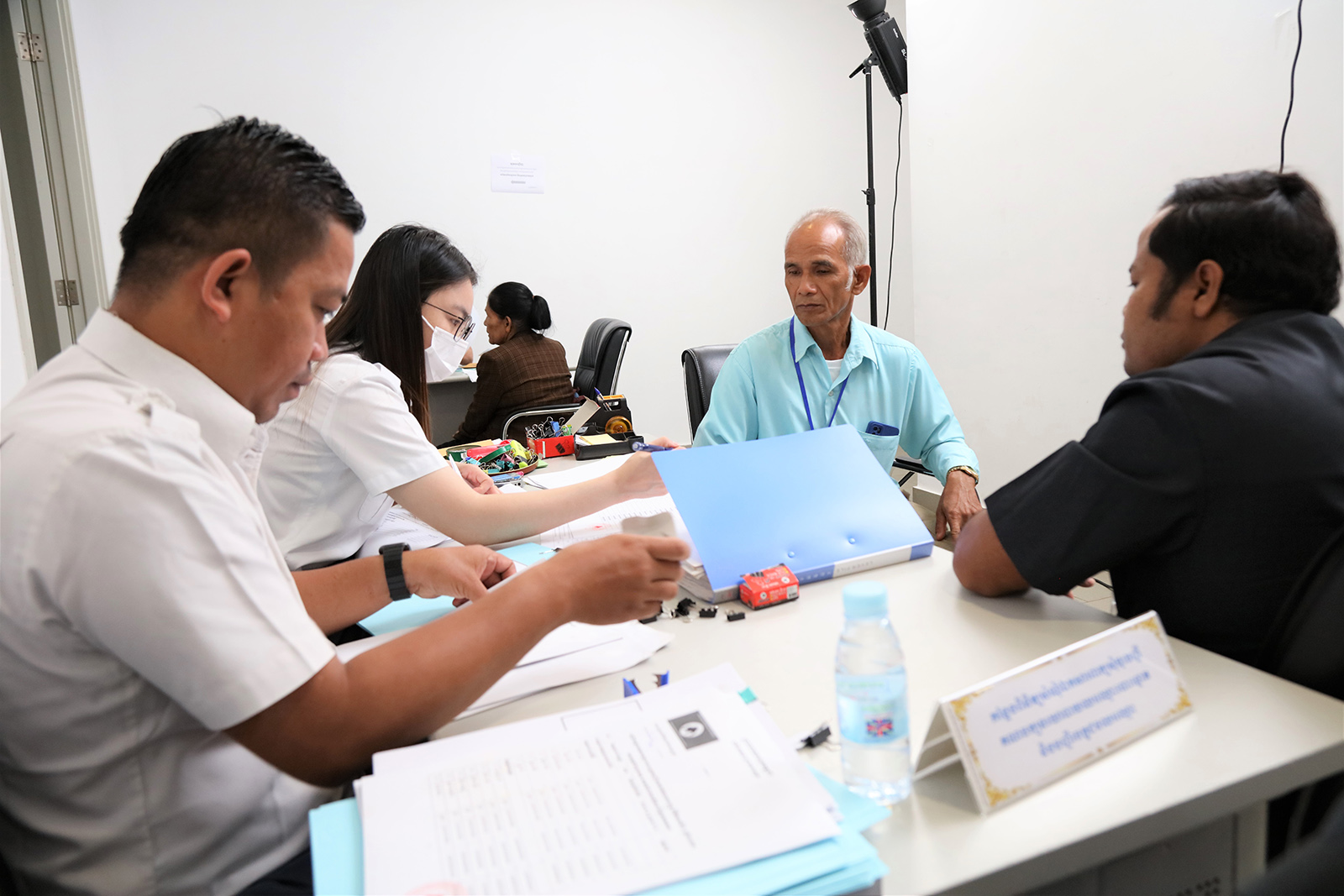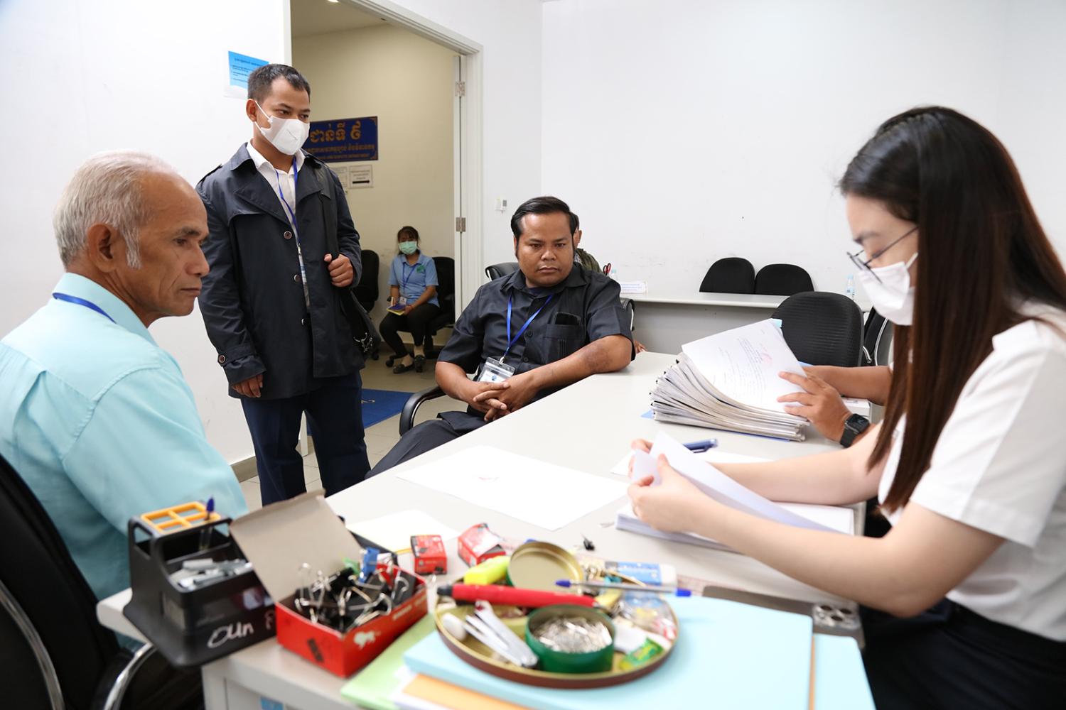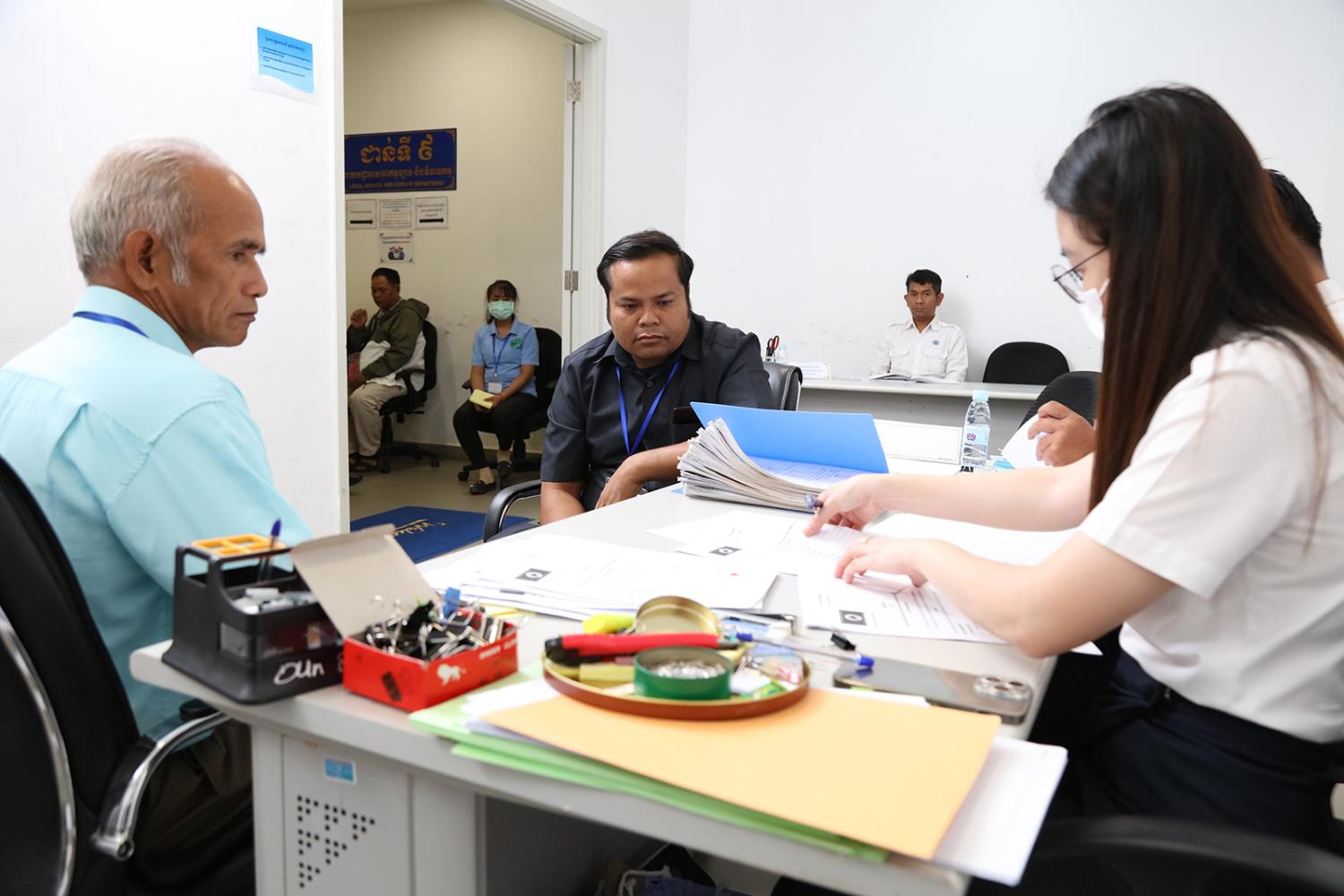 រូបភាពសកម្មភាពនៃការទទួលពាក្យសុំចុះបញ្ជីគណបក្សនយោបាយឈរឈ្មោះបោះឆ្នោត និងបញ្ជីបេក្ខជនឈរឈ្មោះ របស់គណបក្សជនជាតិដើមប្រជាធិបតេយ្យកម្ពុជា សម្រាប់ការបោះឆ្នោតជ្រើសតាំងតំណាងរាស្ត្រ នីតិកាលទី៧ ឆ្នាំ២០២៣ នៅទីស្ដីការ គ.ជ.ប នាព្រឹកថ្ងៃទី៨ ខែឧសភា ឆ្នាំ២០២៣។