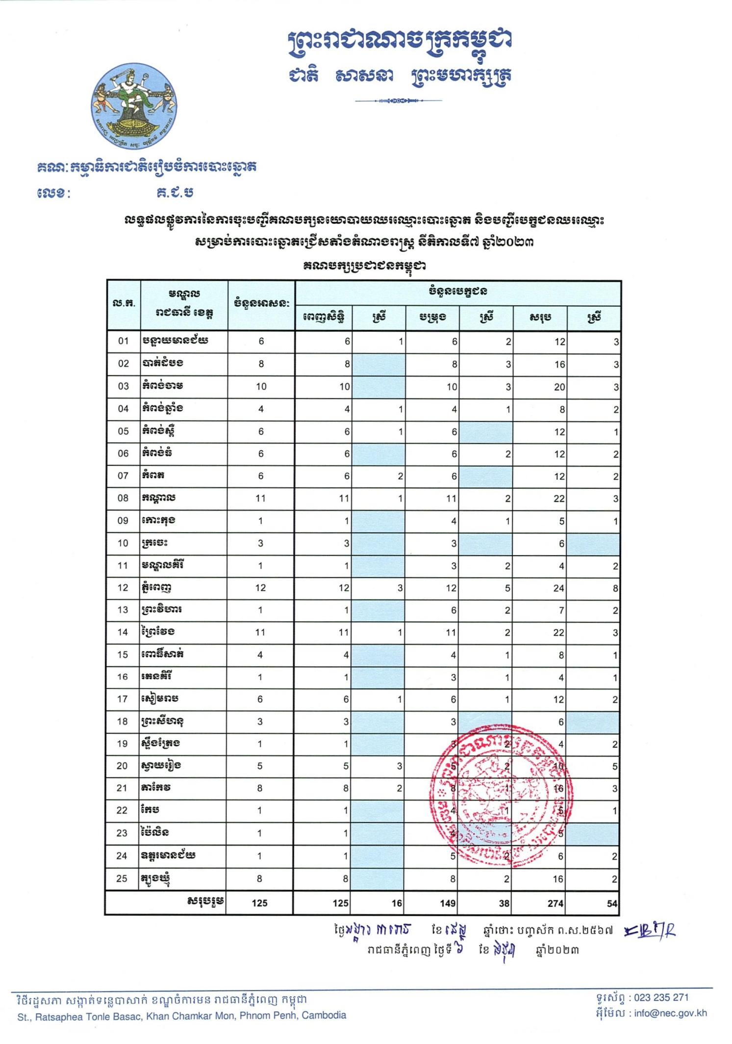 លទ្ធផលផ្លូវការនៃការចុះបញ្ជីគណបក្សនយោបាយឈរឈ្មោះបោះឆ្នោត និងបញ្ជីបេក្ខជនឈរឈ្មោះ សម្រាប់ការបោះឆ្នោតជ្រើសតាំងតំណាងរាស្ត្រ នីតិកាលទី៧ ឆ្នាំ២០២៣ - គណបក្សប្រជាជនកម្ពុជា