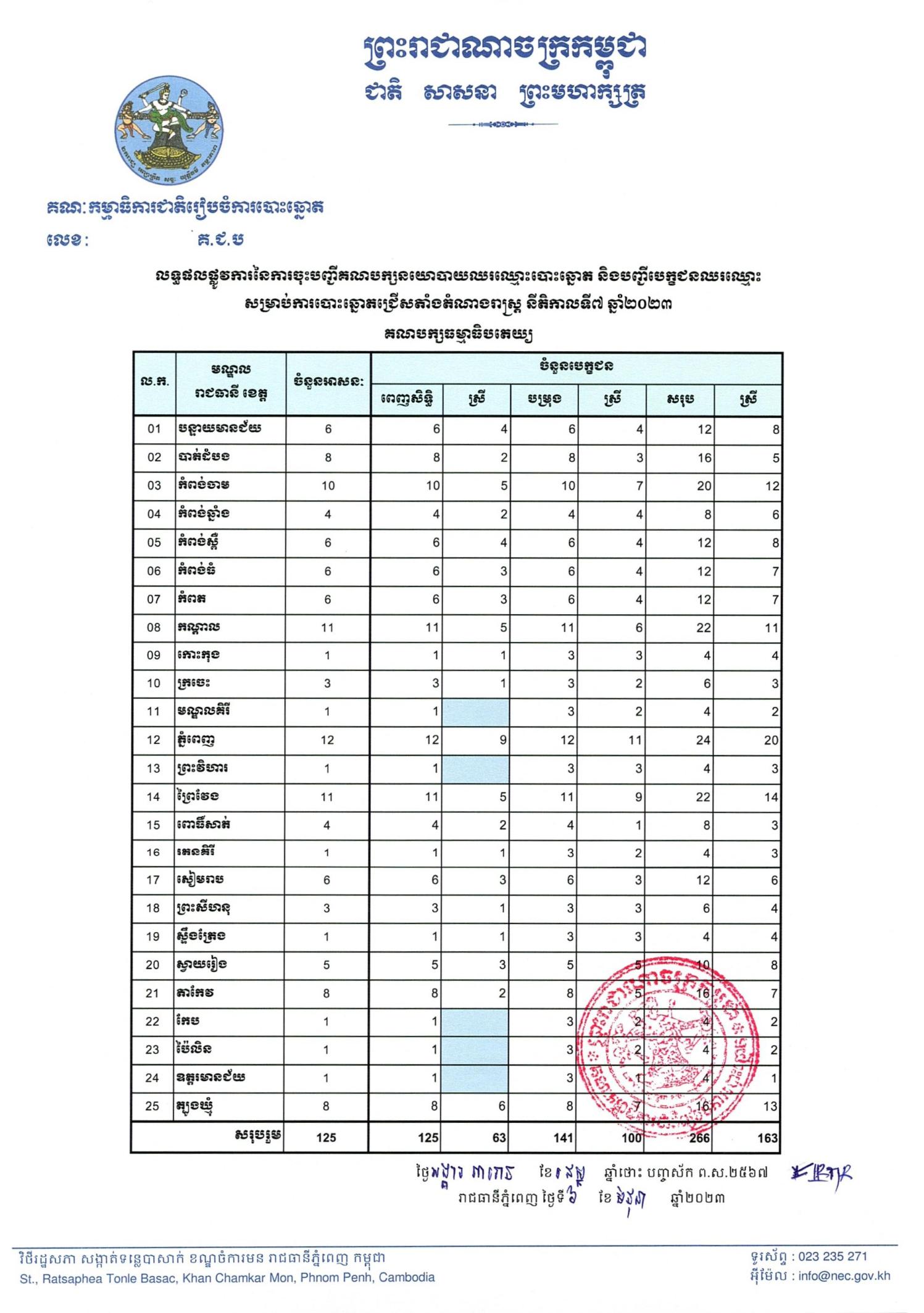 លទ្ធផលផ្លូវការនៃការចុះបញ្ជីគណបក្សនយោបាយឈរឈ្មោះបោះឆ្នោត និងបញ្ជីបេក្ខជនឈរឈ្មោះ សម្រាប់ការបោះឆ្នោតជ្រើសតាំងតំណាងរាស្ត្រ នីតិកាលទី៧ ឆ្នាំ២០២៣ - គណបក្សធម្មាធិបតេយ្យ