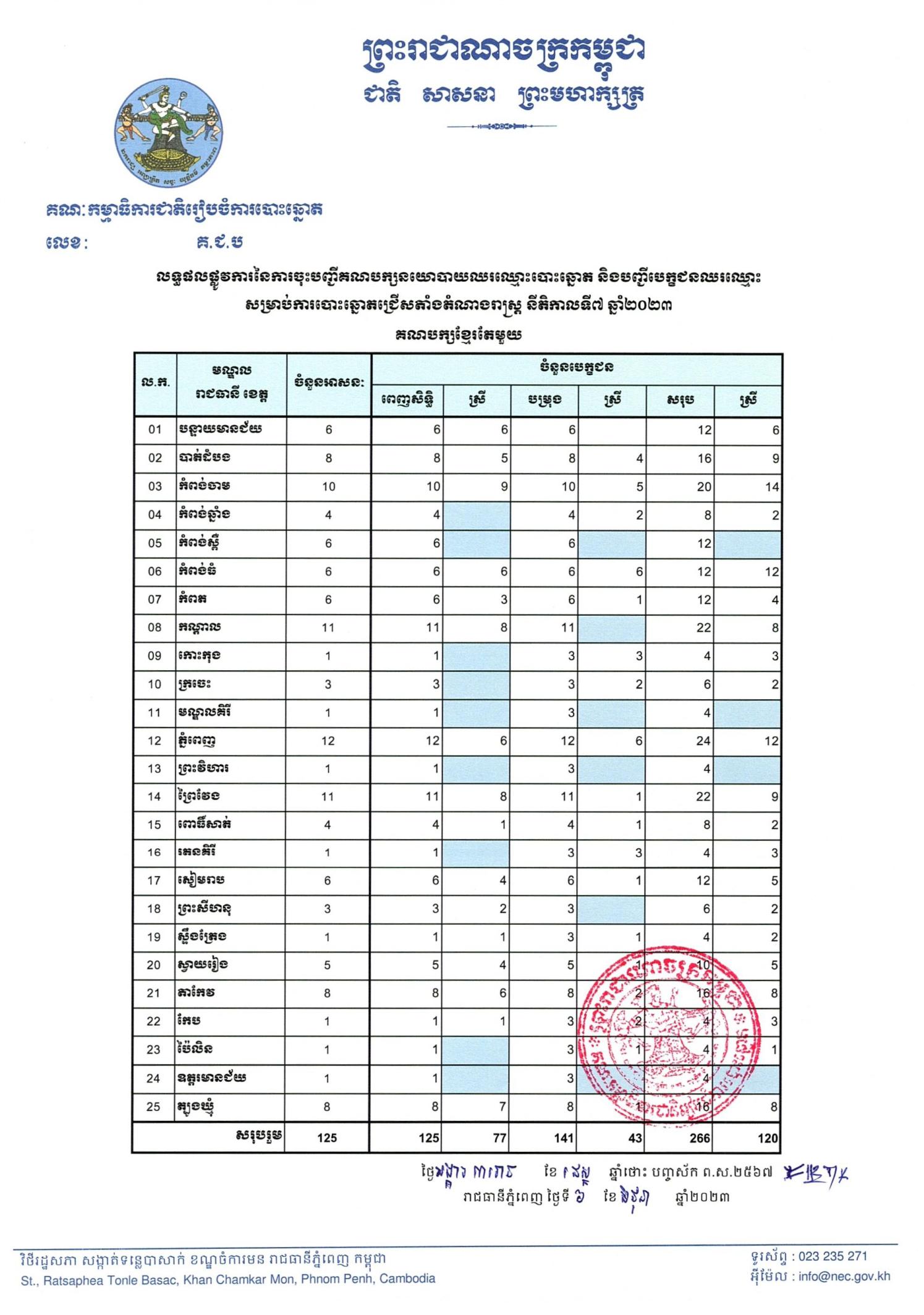 គណបក្សនយោបាយឈរឈ្មោះបោះឆ្នោត និងបញ្ជីបេក្ខជនឈរឈ្មោះ សម្រាប់ការបោះឆ្នោតជ្រើសតាំងតំណាងរាស្ត្រ នីតិកាលទី៧ ឆ្នាំ២០២៣ - គណបក្សខ្មែរតែមួយ