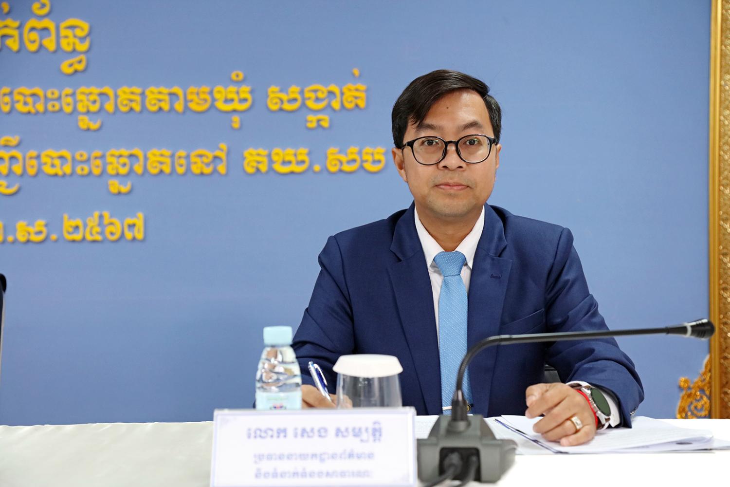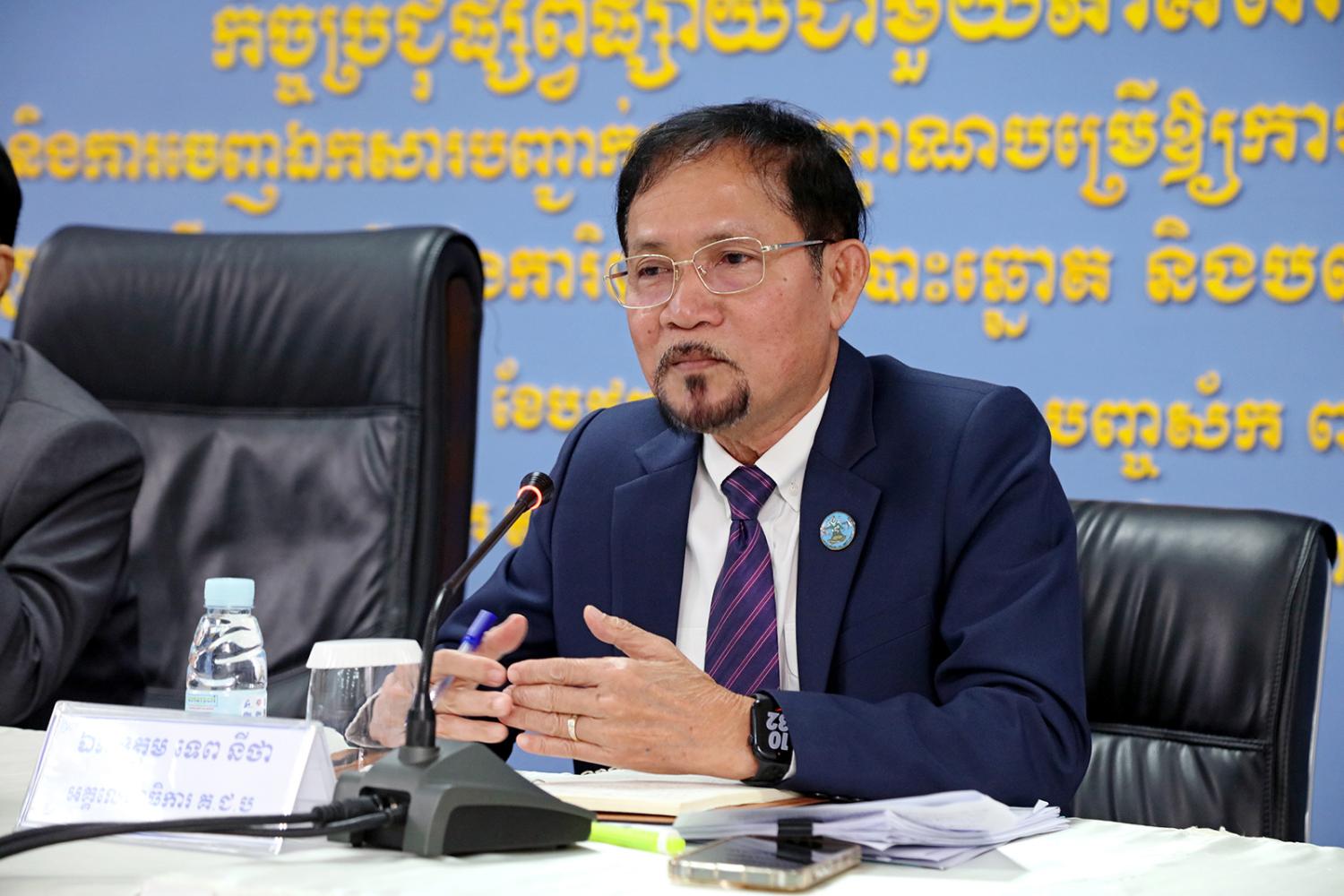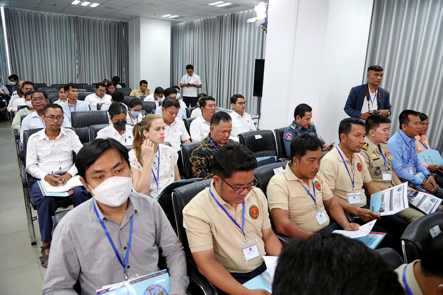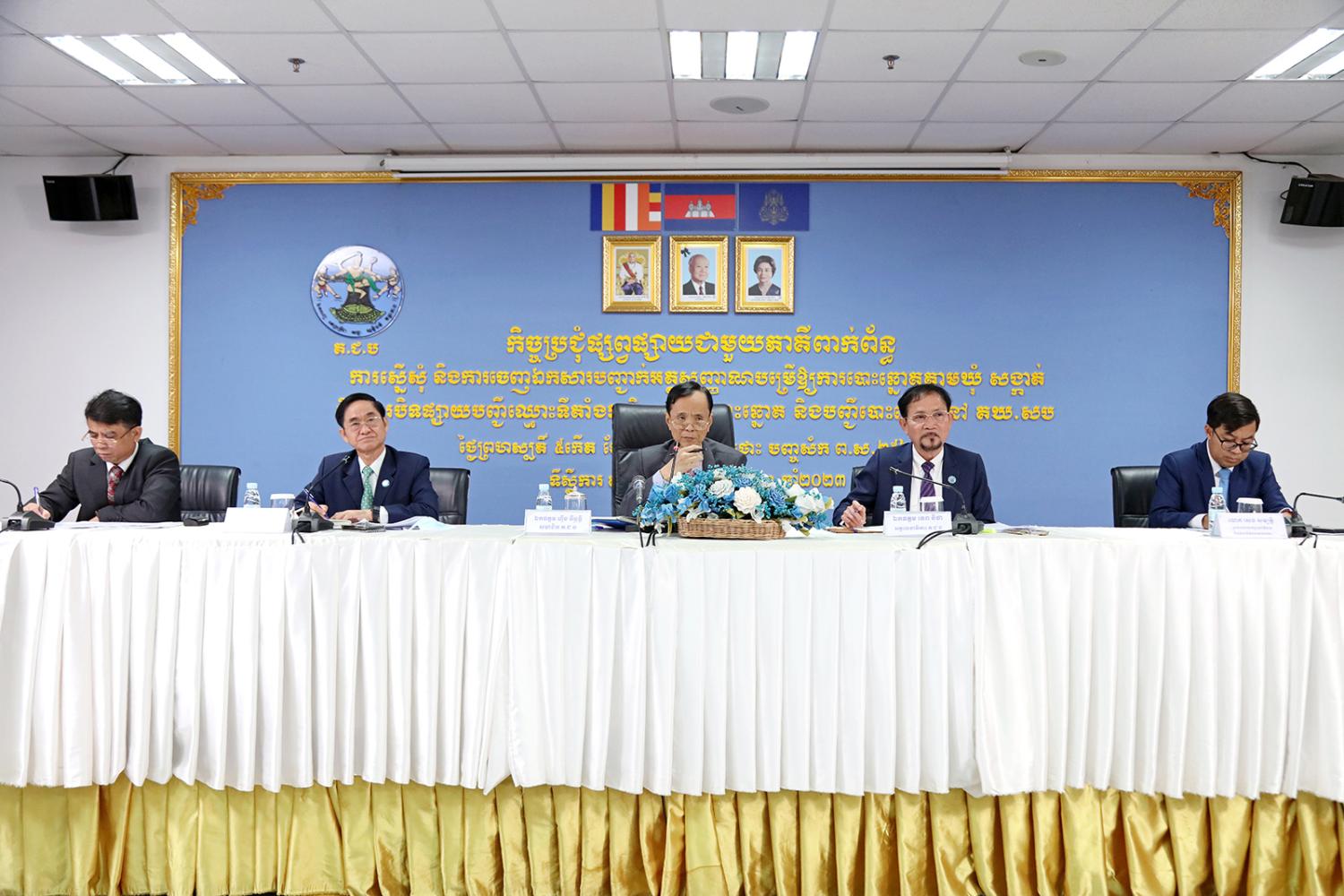រូបភាពសកម្មភាព ឯកឧត្តម ហ៊ីង ធីឫទ្ធិ សមាជិក គ.ជ.ប ដឹកនាំកិច្ចប្រជុំផ្សព្វផ្សាយជាមួយភាគីពាក់ព័ន្ធស្ដីពី ការស្នើសុំ និងការចេញឯកសារបញ្ជាក់អត្តសញ្ញាណបម្រើឱ្យការបោះឆ្នោតតាមឃុំ សង្កាត់ និងការបិទផ្សាយបញ្ជីឈ្មោះទីតាំងការិយាល័យបោះឆ្នោត និងបញ្ជីបោះឆ្នោតនៅគណៈកម្មការឃុំ សង្កាត់រៀបចំការបោះឆ្នោត (គឃ.សប) នាព្រឹកថ្ងៃទី២២ ខែមិថុនា ឆ្នាំ២០២៣ នៅទីស្ដីការ គ.ជ.ប។