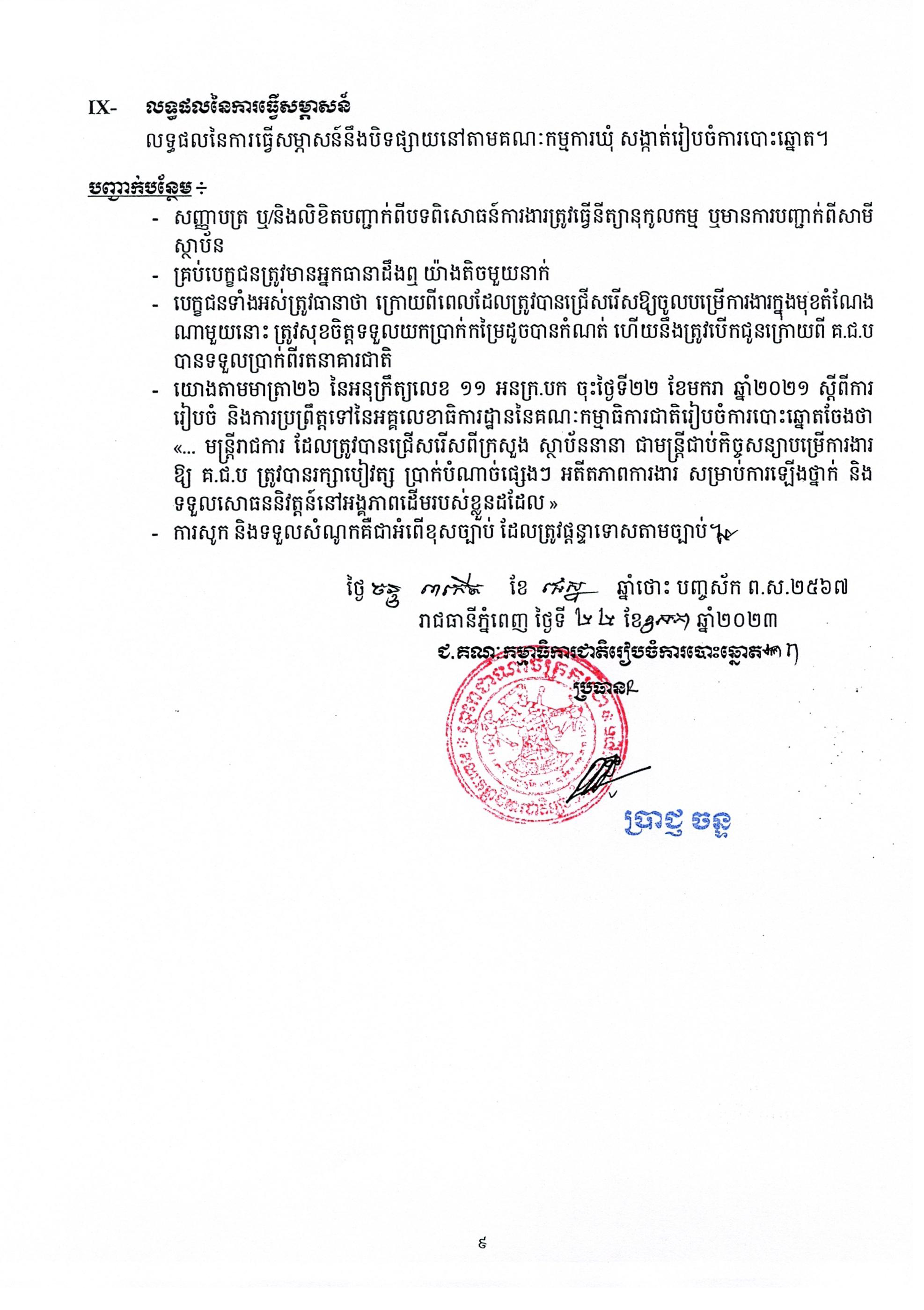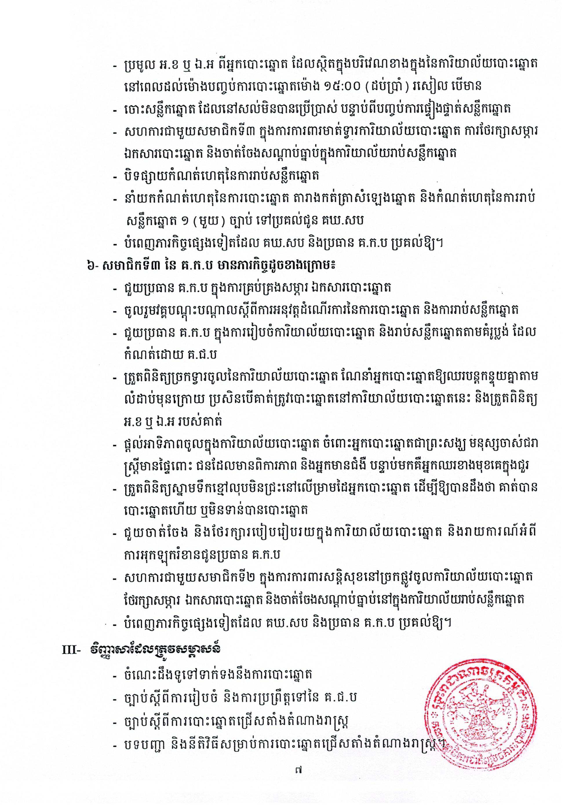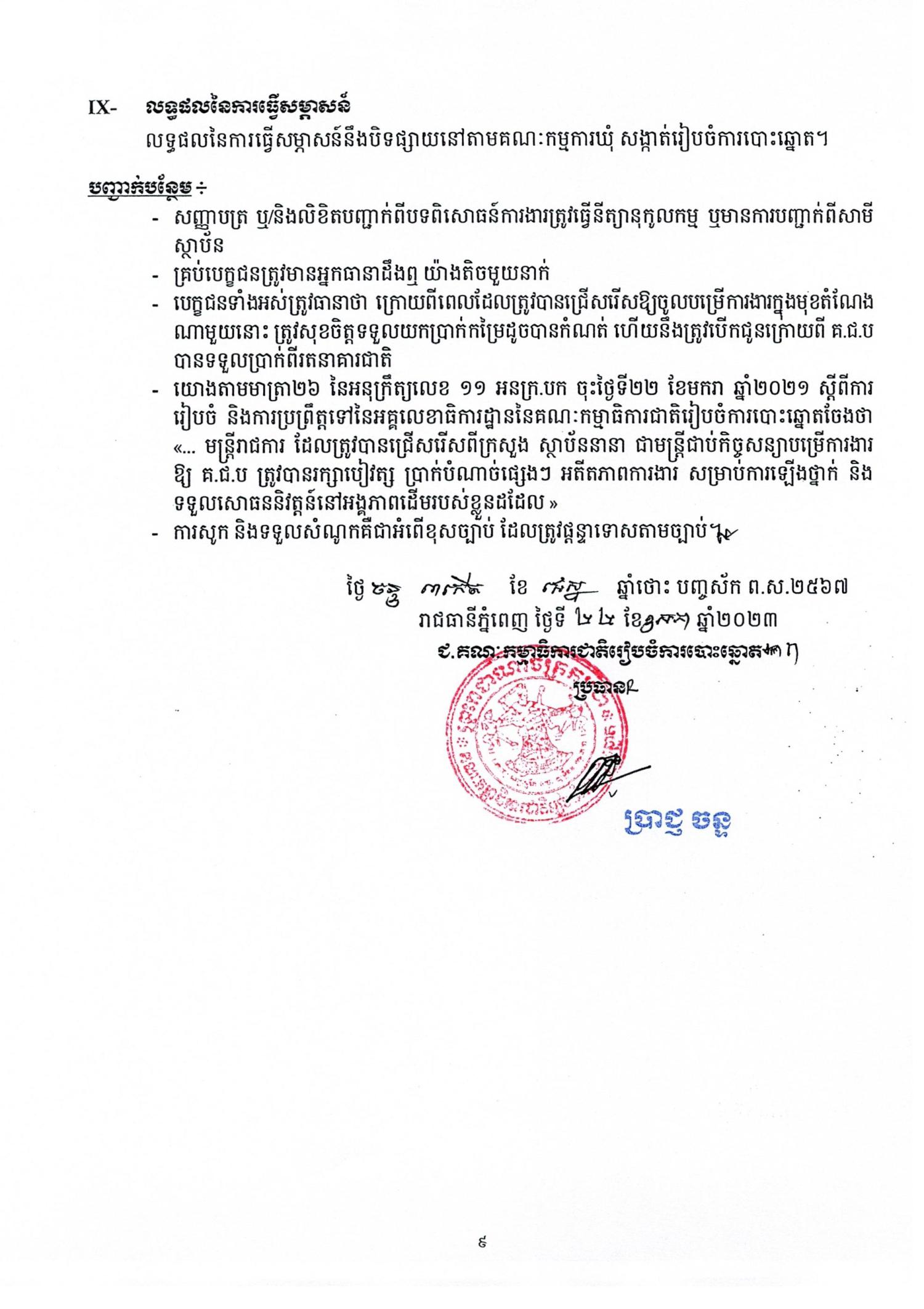សេចក្តីជូនដំណឹង ស្តីពីការជ្រើសរើសសមាសភាពគណ:កម្មការការិយាល័យបោះឆ្នោត (គ.ក.ប) សម្រាប់ការបោះឆ្នោតជ្រើសតាំងតំណាងរាស្រ្ត នីតិកាលទី៧ ឆ្នាំ២០២៣