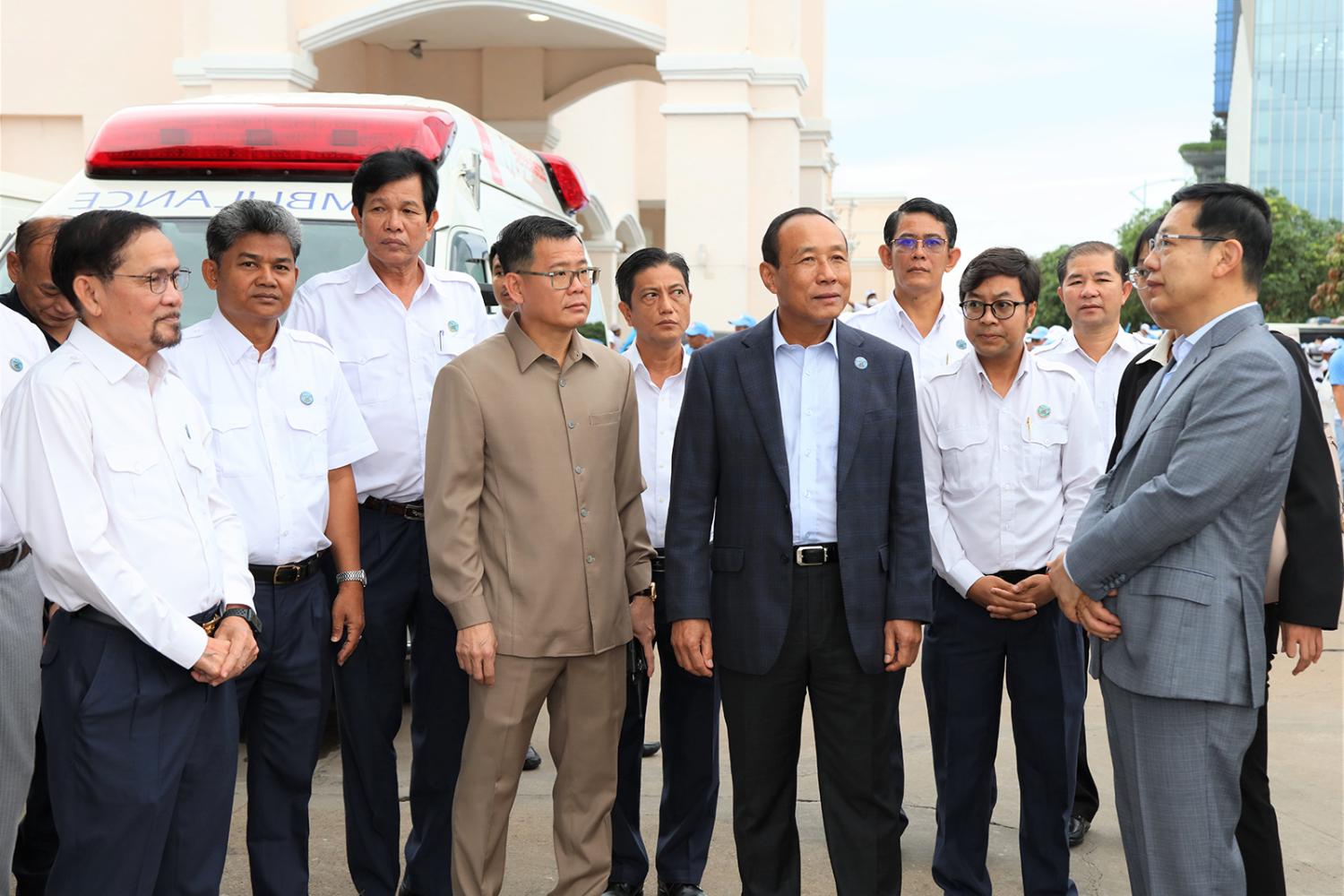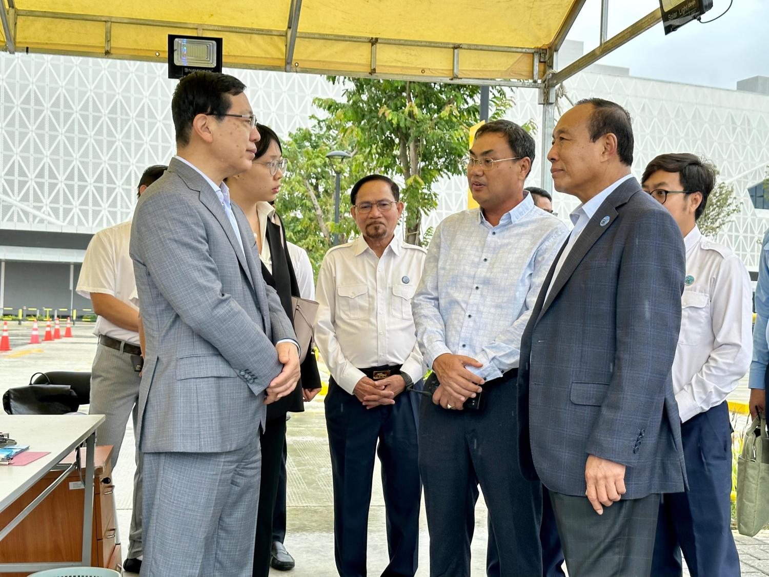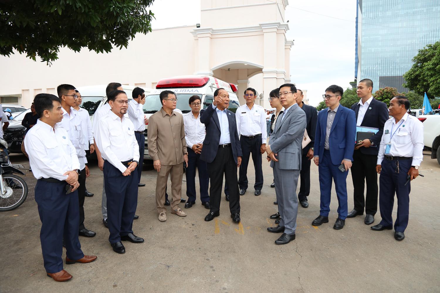 រូបភាពសកម្មភាព ឯកឧត្ដម ប្រាជ្ញ ចន្ទ ប្រធាន គ.ជ.ប បាននាំដំណើរឯកឧត្តម វ៉ាង វិនធាន ឯកអគ្គរដ្ឋទូតចិនប្រចាំប្រទេសកម្ពុជា ដែលជាភ្ញៀវពិសេសក្នុងការសង្កេតការណ៍បោះឆ្នោត ដើម្បីចុះពិនិត្យមើលទីតាំងរៀបចំដង្ហែក្បួនឃោសនារបស់គណបក្សប្រជាជនកម្ពុជា នៅមជ្ឈមណ្ឌលសន្និបាត និងពិព័រណ៍កោះពេជ្រ និងការហែរក្បួនឃោសនារបស់គណបក្សហ៊្វុនស៊ិនប៉ិច នៅលើមហាវិថីសម្តេចហ៊ុនសែន ក្នុងរាជធានីភ្នំពេញ នាព្រឹកថ្ងៃទី២១ ខែកក្កដា ឆ្នាំ២០២៣។