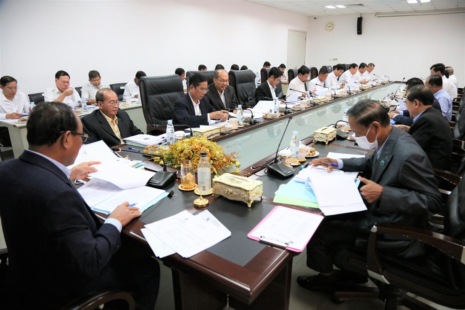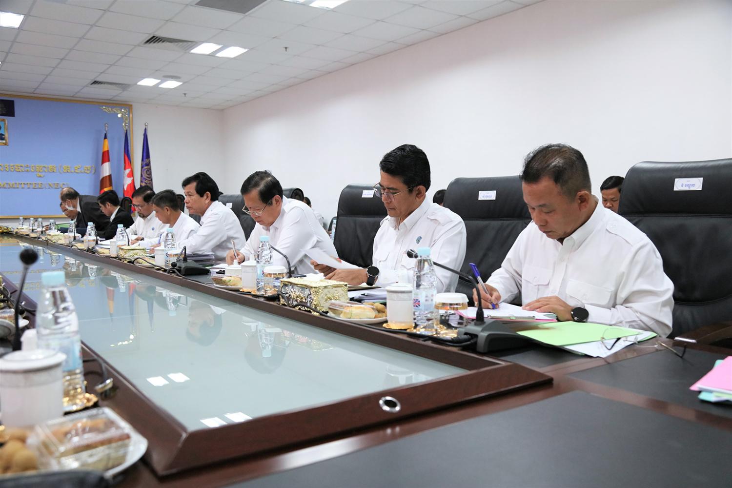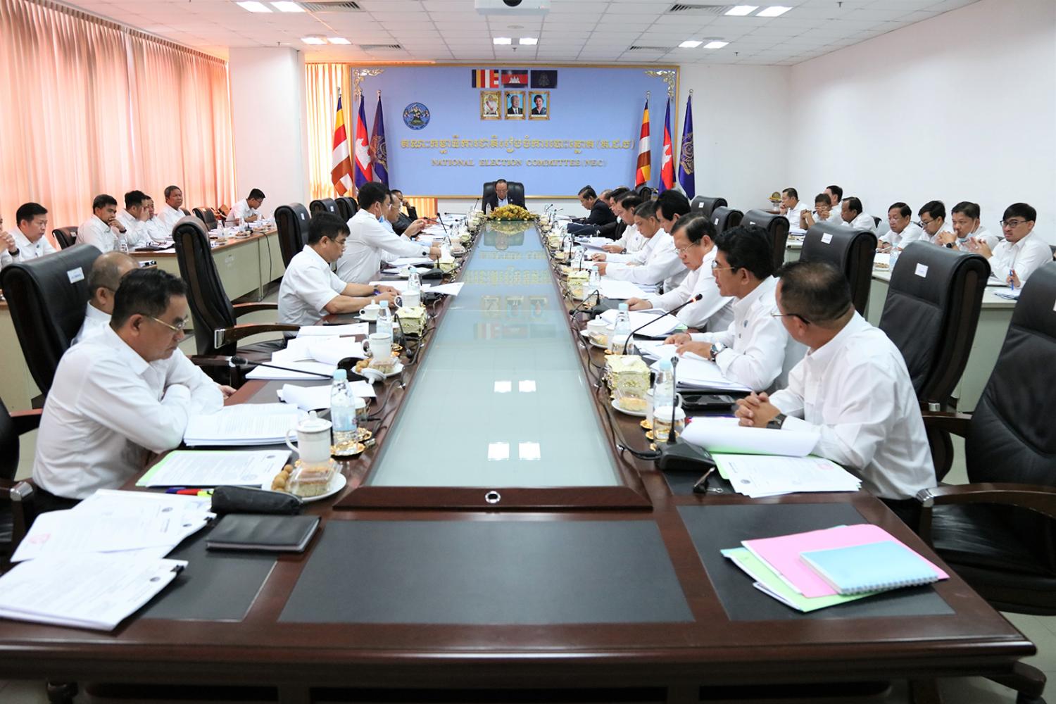 ឯកឧត្តម ប្រាជ្ញ ចន្ទ ប្រធានគណៈកម្មាធិការជាតិរៀបចំការបោះឆ្នោត (គ.ជ.ប) បានដឹកនាំកិច្ចប្រជុំ គ.ជ.ប នាព្រឹកថ្ងៃទី២៣ ខែសីហា ឆ្នាំ២០២៣ ដើម្បីពិនិត្យ និងសម្រេចលើ៖