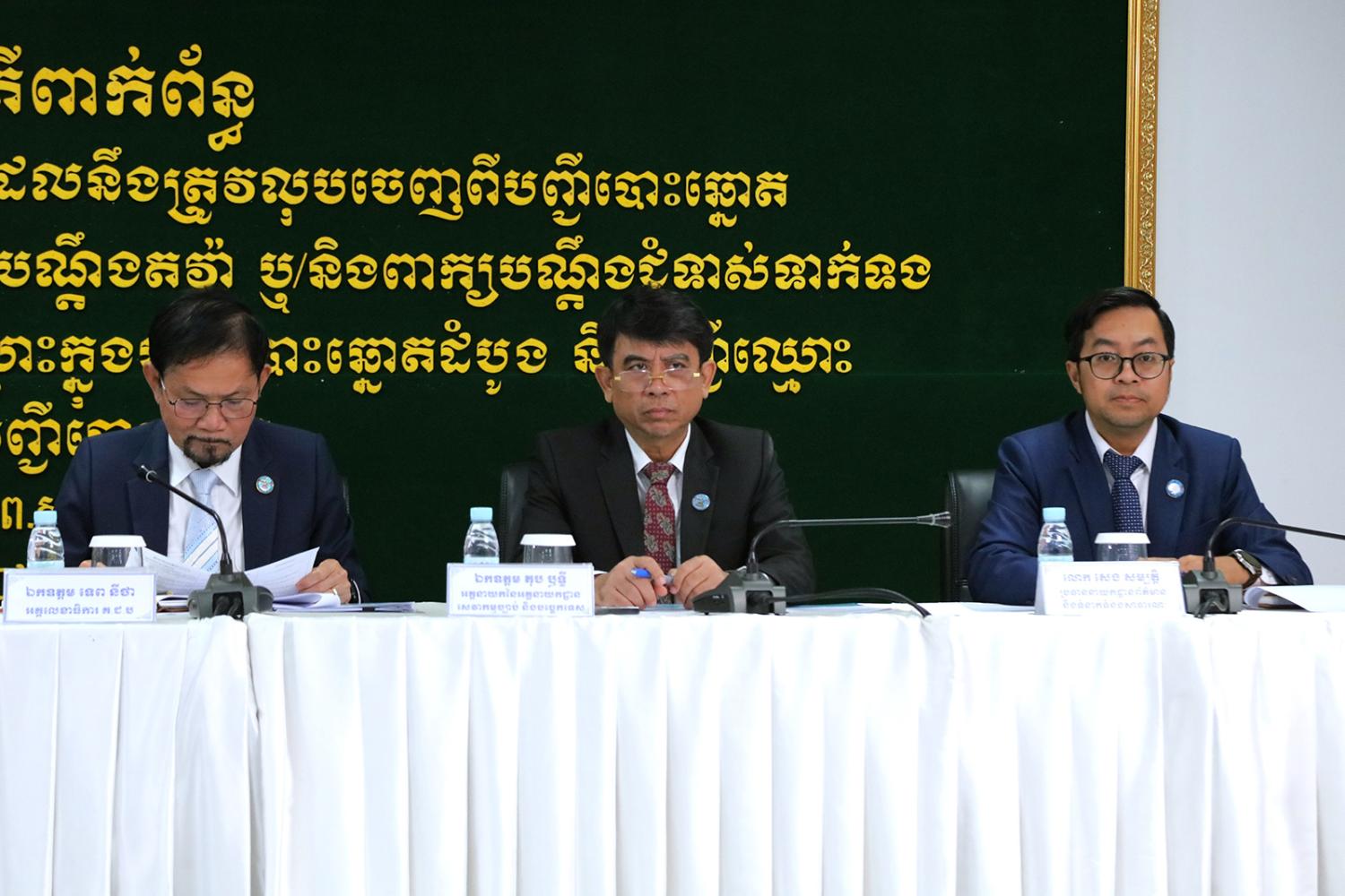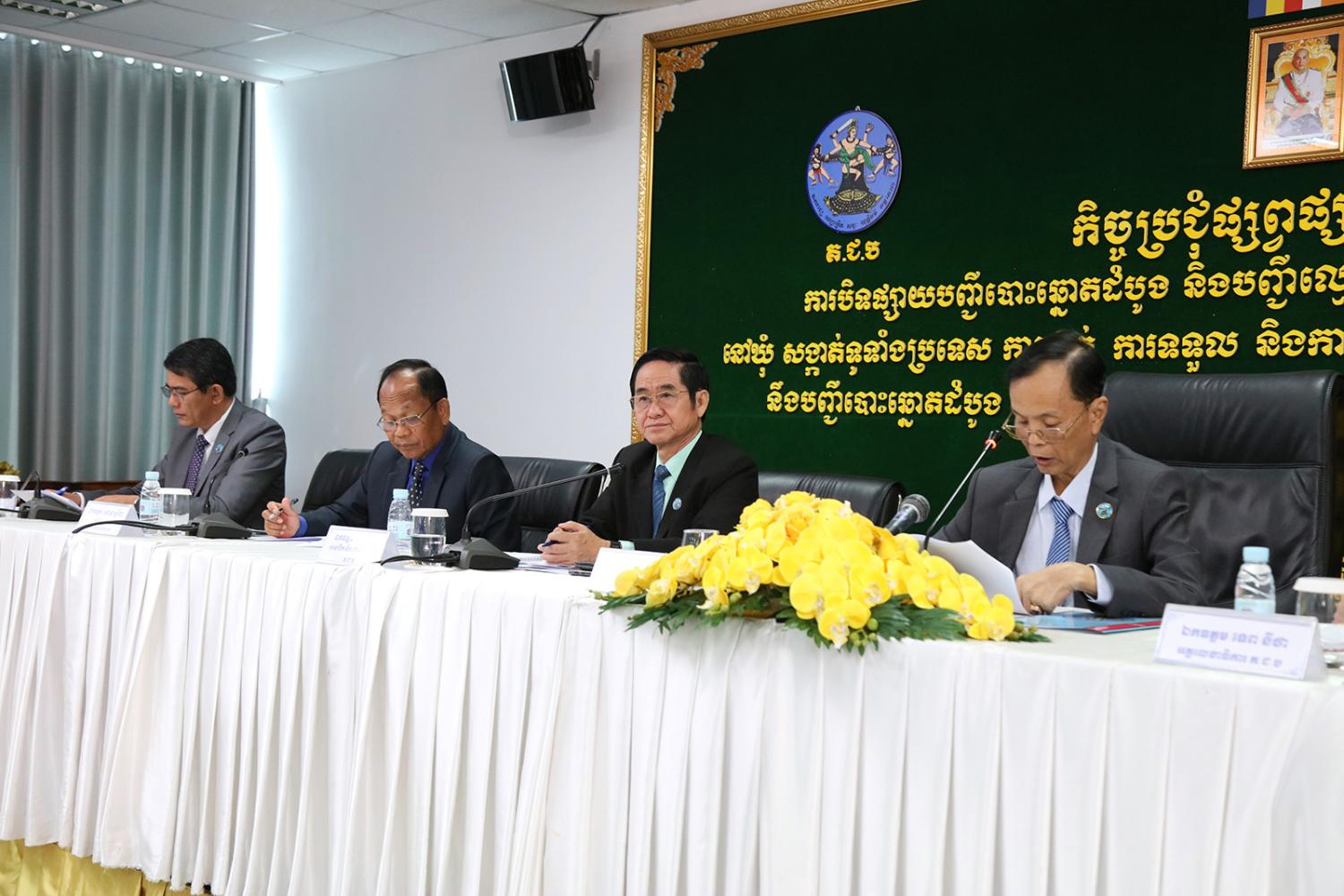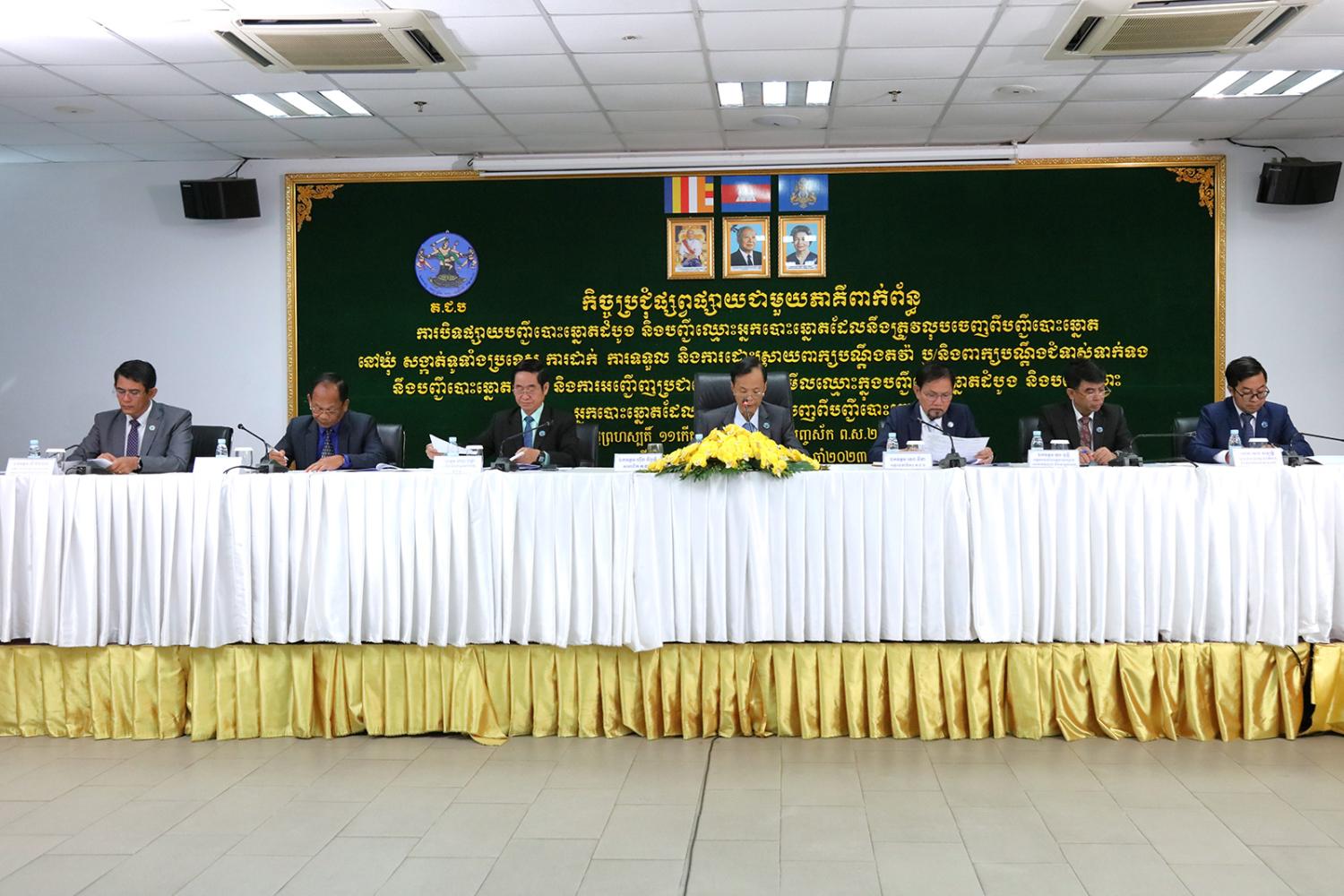រូបភាពសកម្មភាព ឯកឧត្តម ហ៊ីង ធីឫទ្ធិ សមាជិក គ.ជ.ប បានដឹកនាំកិច្ចប្រជុំផ្សព្វផ្សាយជាមួយភាគីពាក់ព័ន្ធ ស្ដីពីការបិទផ្សាយបញ្ជីបោះឆ្នោតដំបូង និងបញ្ជីឈ្មោះអ្នកបោះឆ្នោតដែលនឹងត្រូវលុបចេញពីបញ្ជីបោះឆ្នោត នៅឃុំ សង្កាត់ទូទាំងប្រទេស ការដាក់ ការទទួល និងការដោះស្រាយពាក្យបណ្តឹងតវ៉ា ឬ/និងពាក្យបណ្តឹងជំទាស់ទាក់ទងនឹងបញ្ជីបោះឆ្នោតដំបូង និងការអញ្ជើញប្រជាពលរដ្ឋឱ្យទៅមើលឈ្មោះក្នុងបញ្ជីបោះឆ្នោតដំបូង និងបញ្ជីឈ្មោះអ្នកបោះឆ្នោតដែលនឹងត្រូវលុបចេញពីបញ្ជីបោះឆ្នោត នាព្រឹកថ្ងៃទី២៣ ខែវិច្ឆិកា ឆ្នាំ២០២៣។