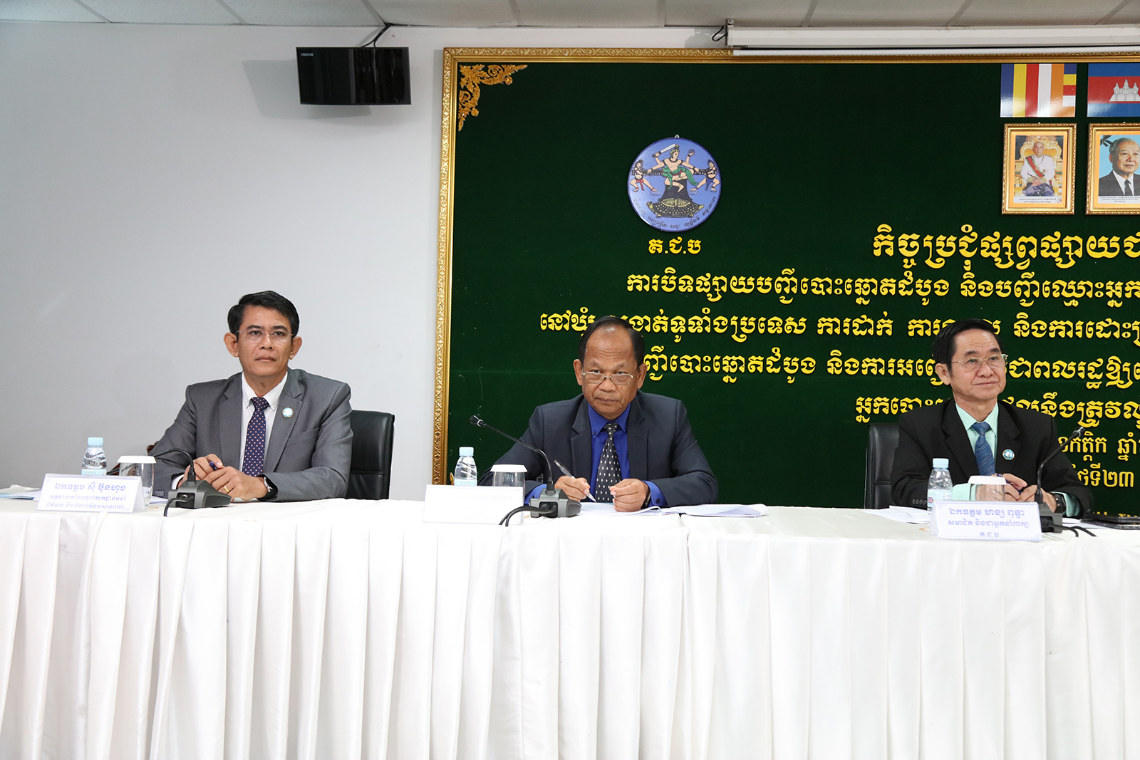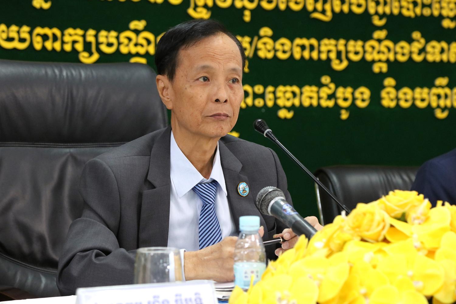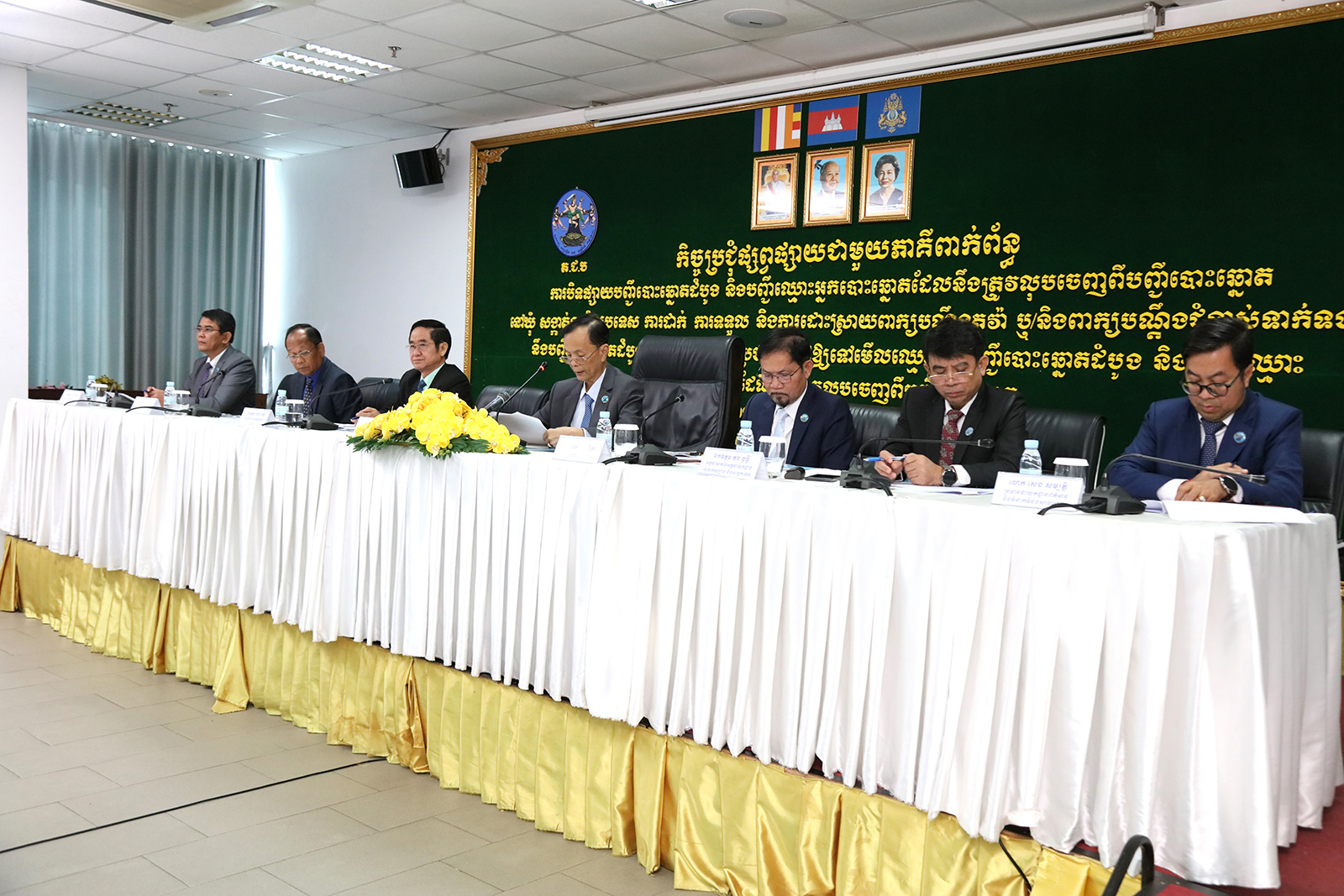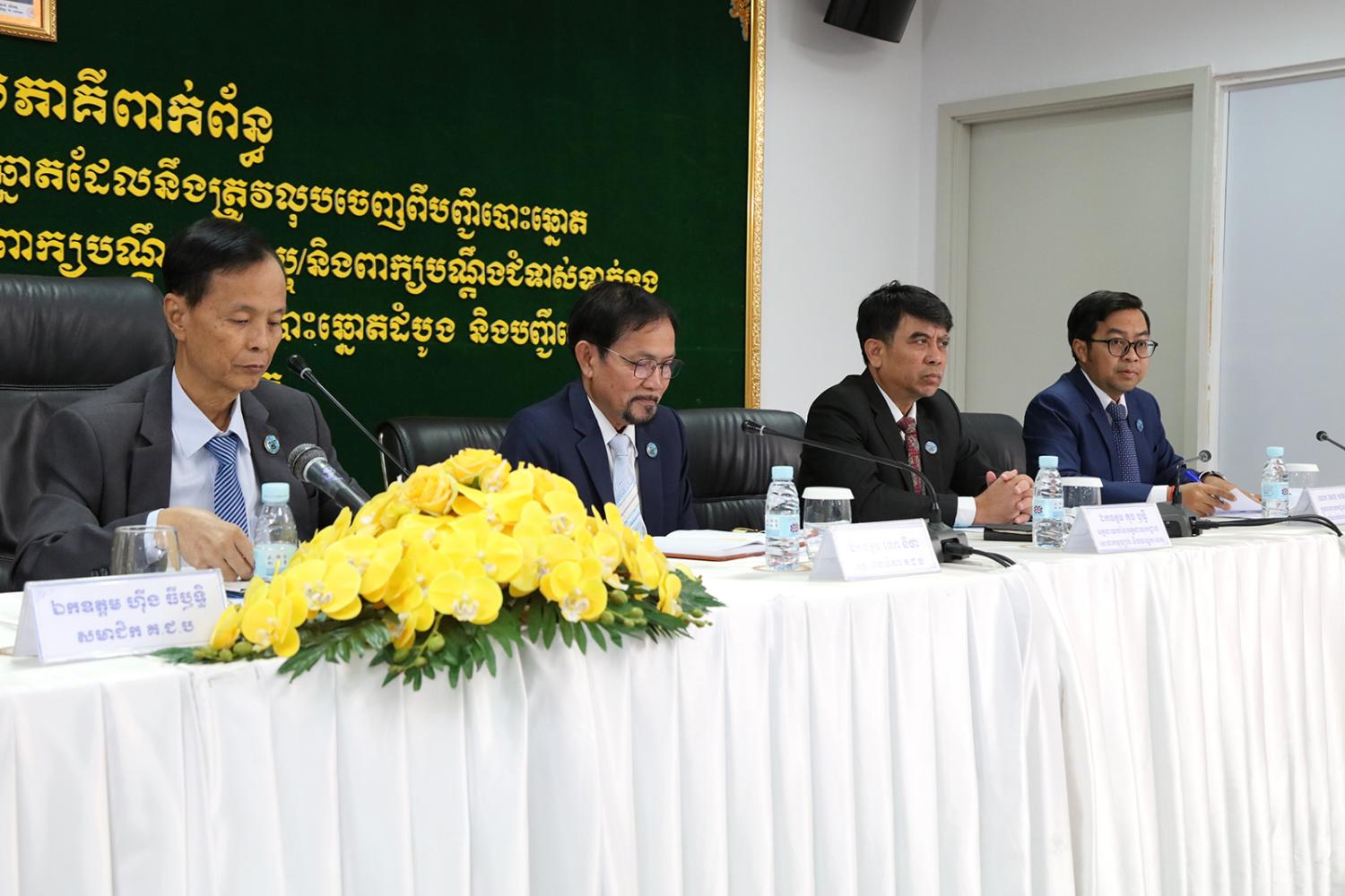 រូបភាពសកម្មភាព ឯកឧត្តម ហ៊ីង ធីឫទ្ធិ សមាជិក គ.ជ.ប បានដឹកនាំកិច្ចប្រជុំផ្សព្វផ្សាយជាមួយភាគីពាក់ព័ន្ធ ស្ដីពីការបិទផ្សាយបញ្ជីបោះឆ្នោតដំបូង និងបញ្ជីឈ្មោះអ្នកបោះឆ្នោតដែលនឹងត្រូវលុបចេញពីបញ្ជីបោះឆ្នោត នៅឃុំ សង្កាត់ទូទាំងប្រទេស ការដាក់ ការទទួល និងការដោះស្រាយពាក្យបណ្តឹងតវ៉ា ឬ/និងពាក្យបណ្តឹងជំទាស់ទាក់ទងនឹងបញ្ជីបោះឆ្នោតដំបូង និងការអញ្ជើញប្រជាពលរដ្ឋឱ្យទៅមើលឈ្មោះក្នុងបញ្ជីបោះឆ្នោតដំបូង និងបញ្ជីឈ្មោះអ្នកបោះឆ្នោតដែលនឹងត្រូវលុបចេញពីបញ្ជីបោះឆ្នោត នាព្រឹកថ្ងៃទី២៣ ខែវិច្ឆិកា ឆ្នាំ២០២៣។