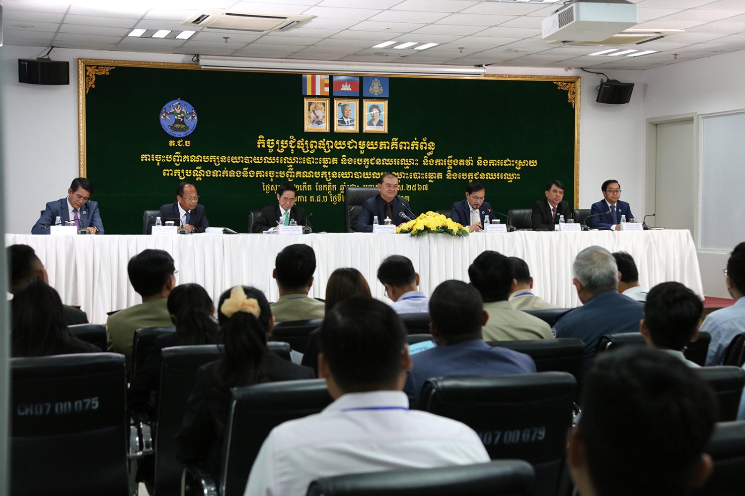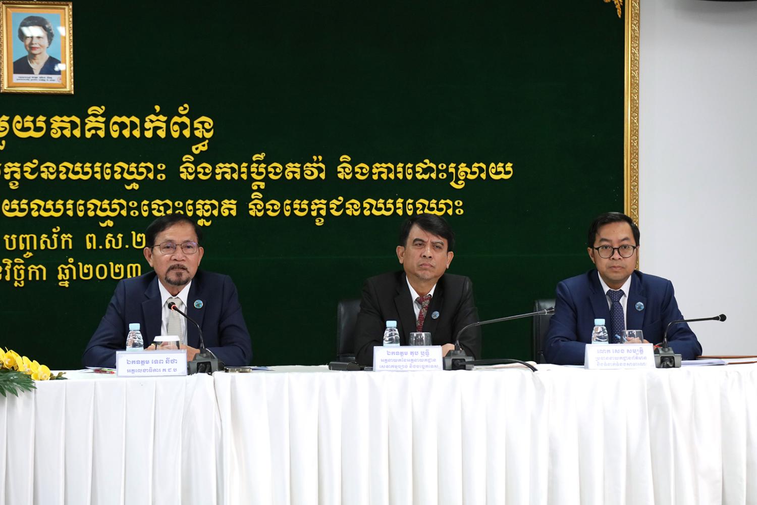 រូបភាពសកម្មភាព ឯកឧត្តម ឌឹម សុវណ្ណារុំ សមាជិក គ.ជ.ប និងជាប្រធានក្រុមប្រតិកម្មព័ត៌មាន បានដឹកនាំកិច្ចប្រជុំផ្សព្វផ្សាយជាមួយភាគីពាក់ព័ន្ធ នាព្រឹកថ្ងៃទី២៤ ខែវិច្ឆិកា ឆ្នាំ២០២៣ នៅទីស្ដីការ គ.ជ.ប
