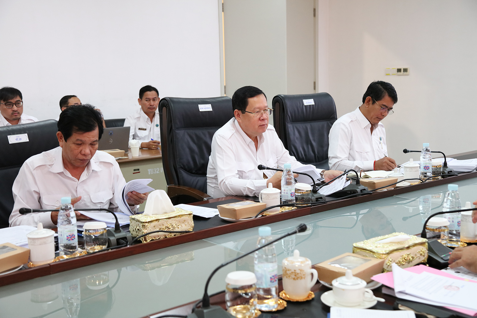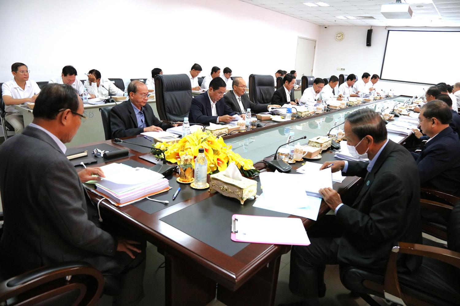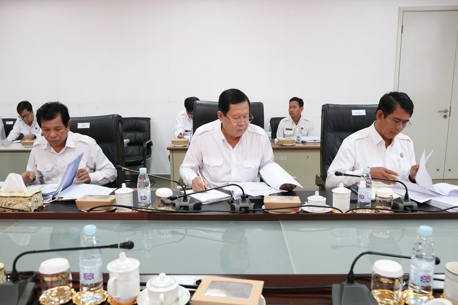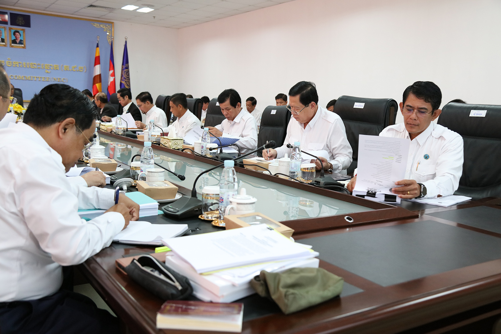ឯកឧត្តម ប្រាជ្ញ ចន្ទ ប្រធានគណៈកម្មាធិការជាតិរៀបចំការបោះឆ្នោត (គ.ជ.ប) បានដឹកនាំកិច្ចប្រជុំ គ.ជ.ប នាព្រឹកថ្ងៃទី៤ ខែធ្នូ ឆ្នាំ២០២៣ ដើម្បីពិនិត្យ និងសម្រេចលើ៖