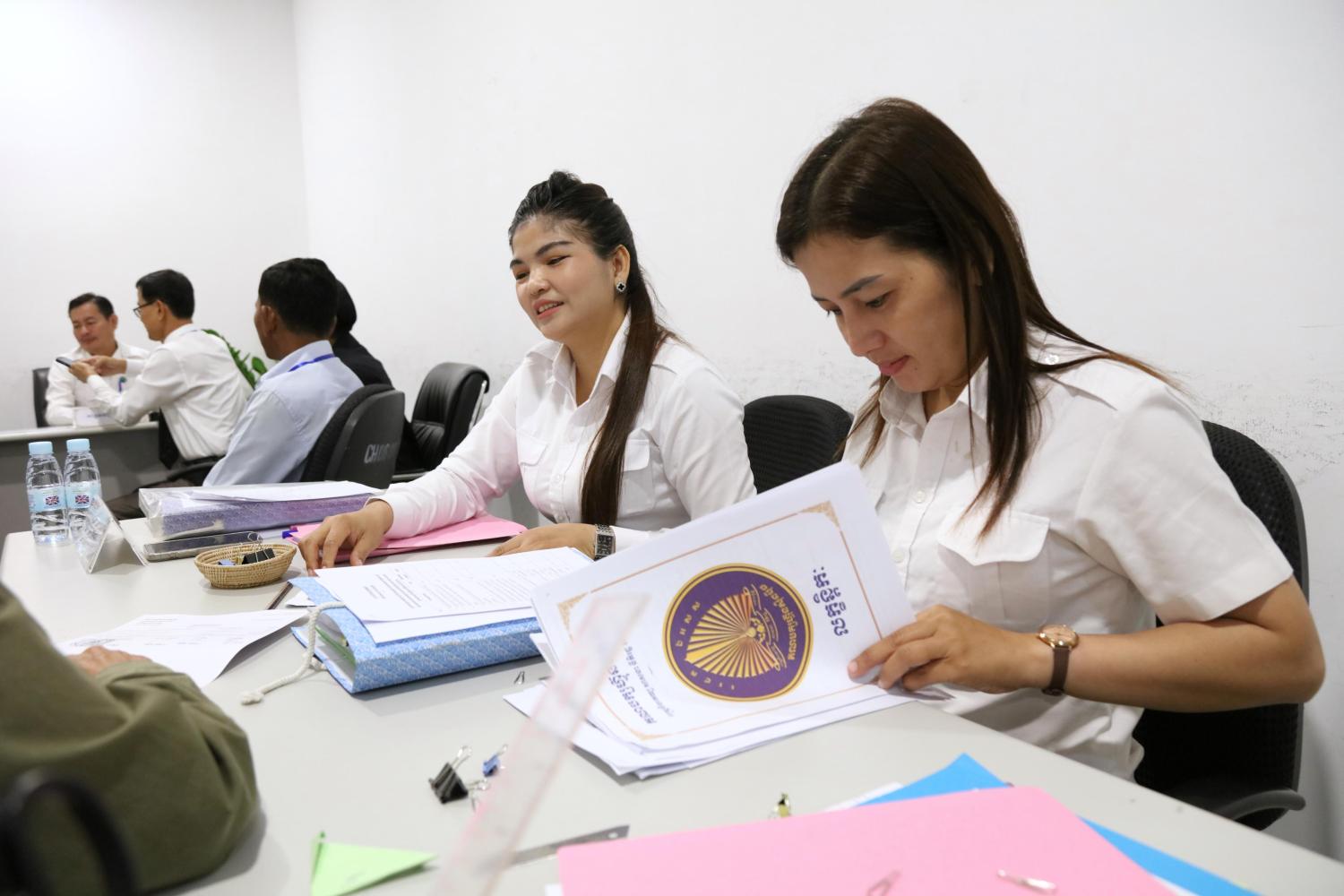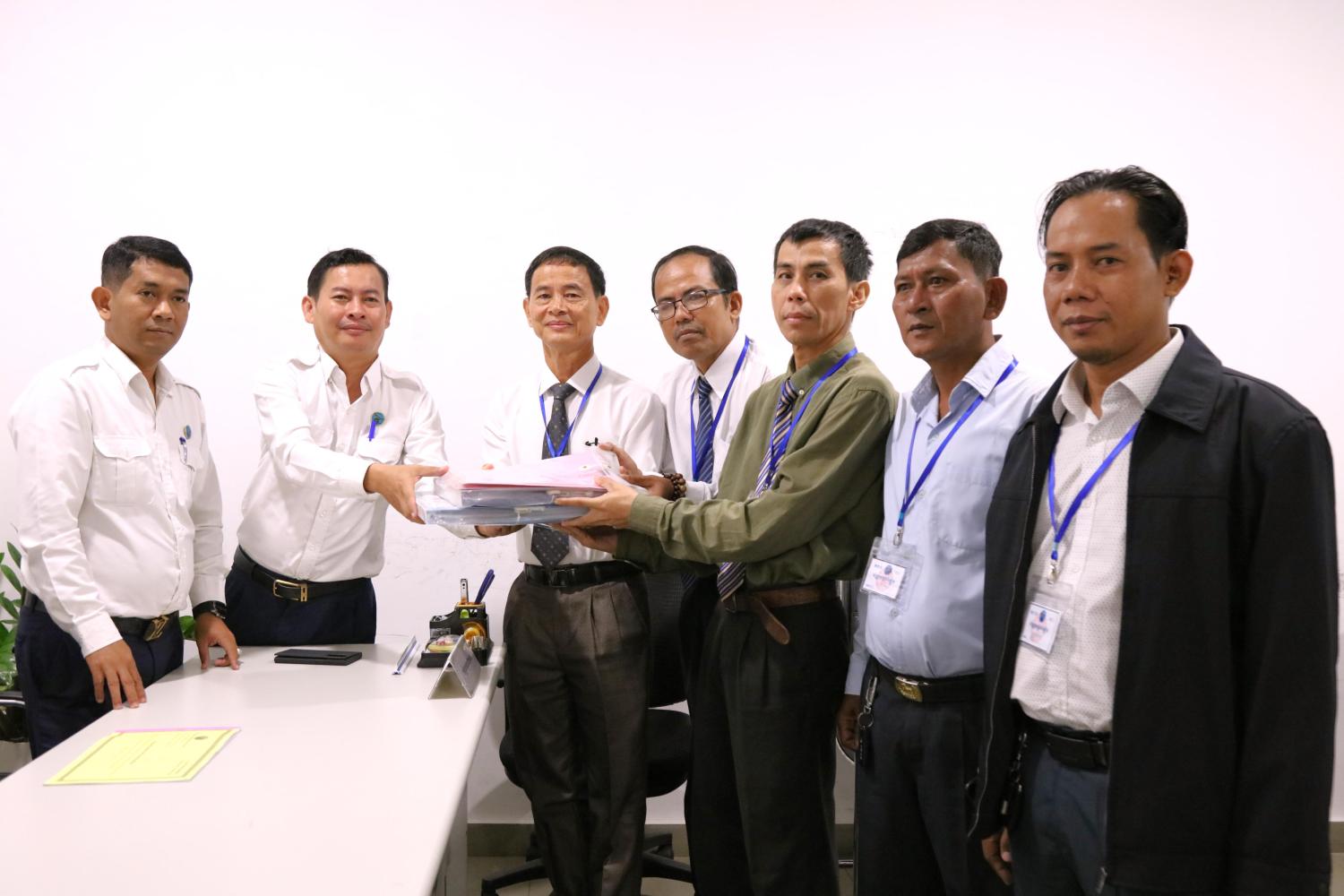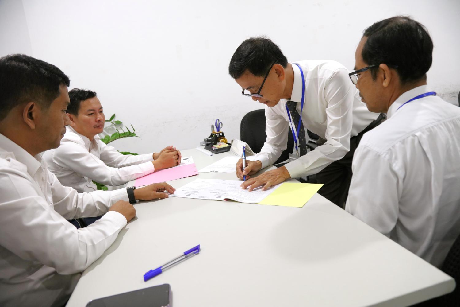 រូបភាពសកម្មភាពនៃការទទួលពាក្យសុំចុះបញ្ជីគណបក្សនយោបាយឈរឈ្មោះបោះឆ្នោត និងបញ្ជីបេក្ខជនឈរឈ្មោះ សម្រាប់ការបោះឆ្នោតជ្រើសតាំងសមាជិកព្រឹទ្ធសភា នីតិកាលទី៥ ឆ្នាំ២០២៤ របស់គណបក្សហ៊្វុនស៊ិនប៉ិច នៅទីស្ដីការ គ.ជ.ប នាព្រឹកថ្ងៃទី៩ ខែធ្នូ ឆ្នាំ២០២៣