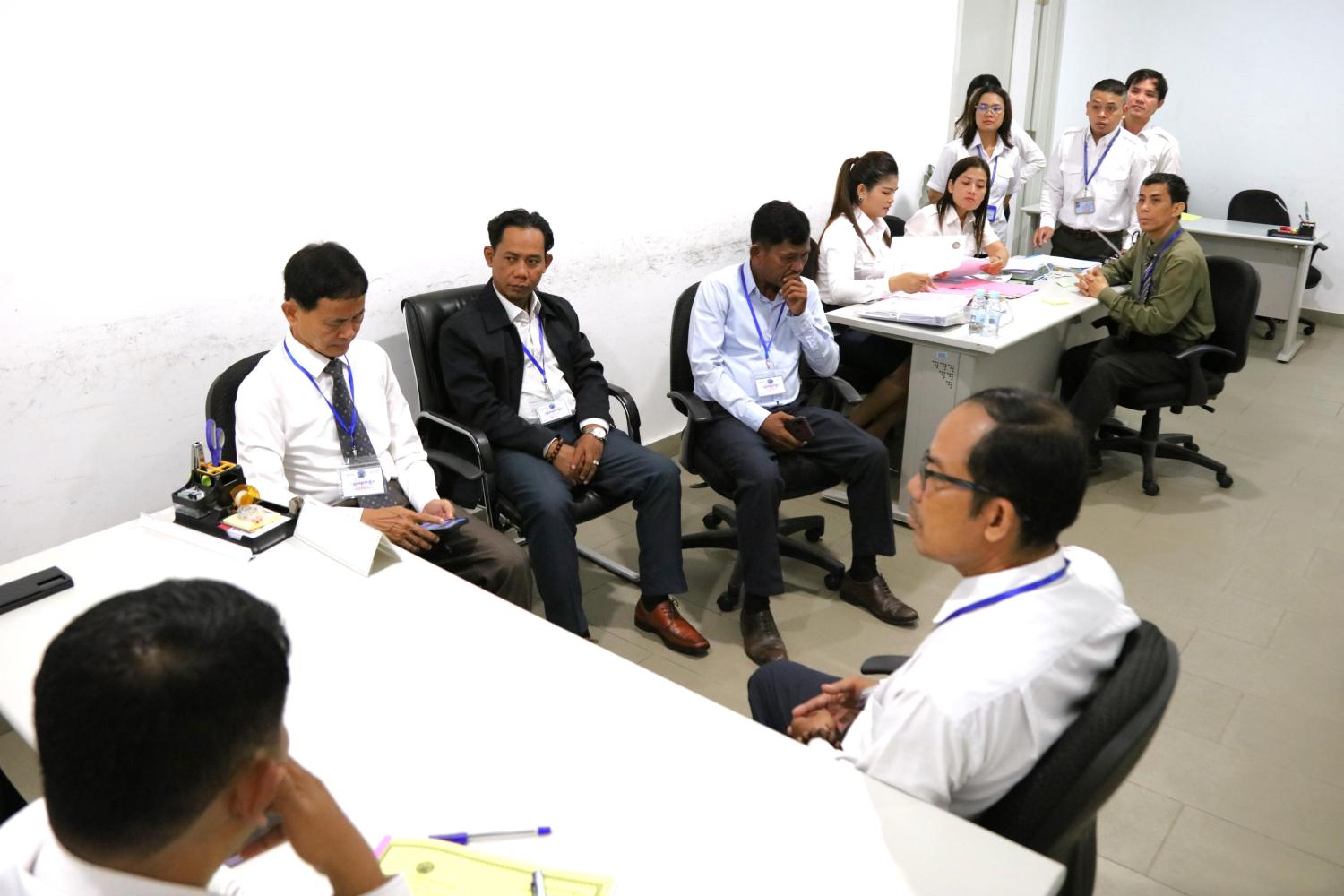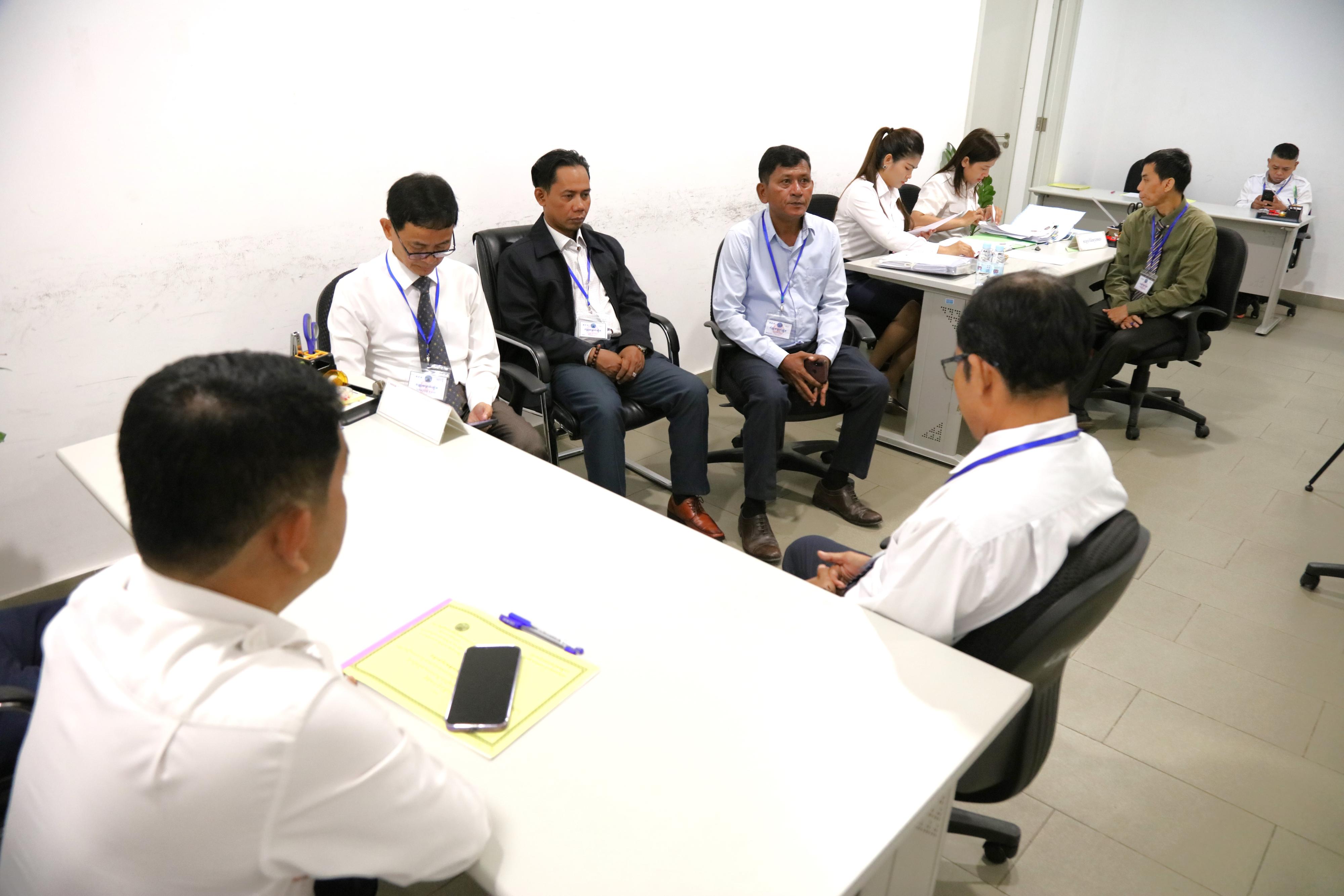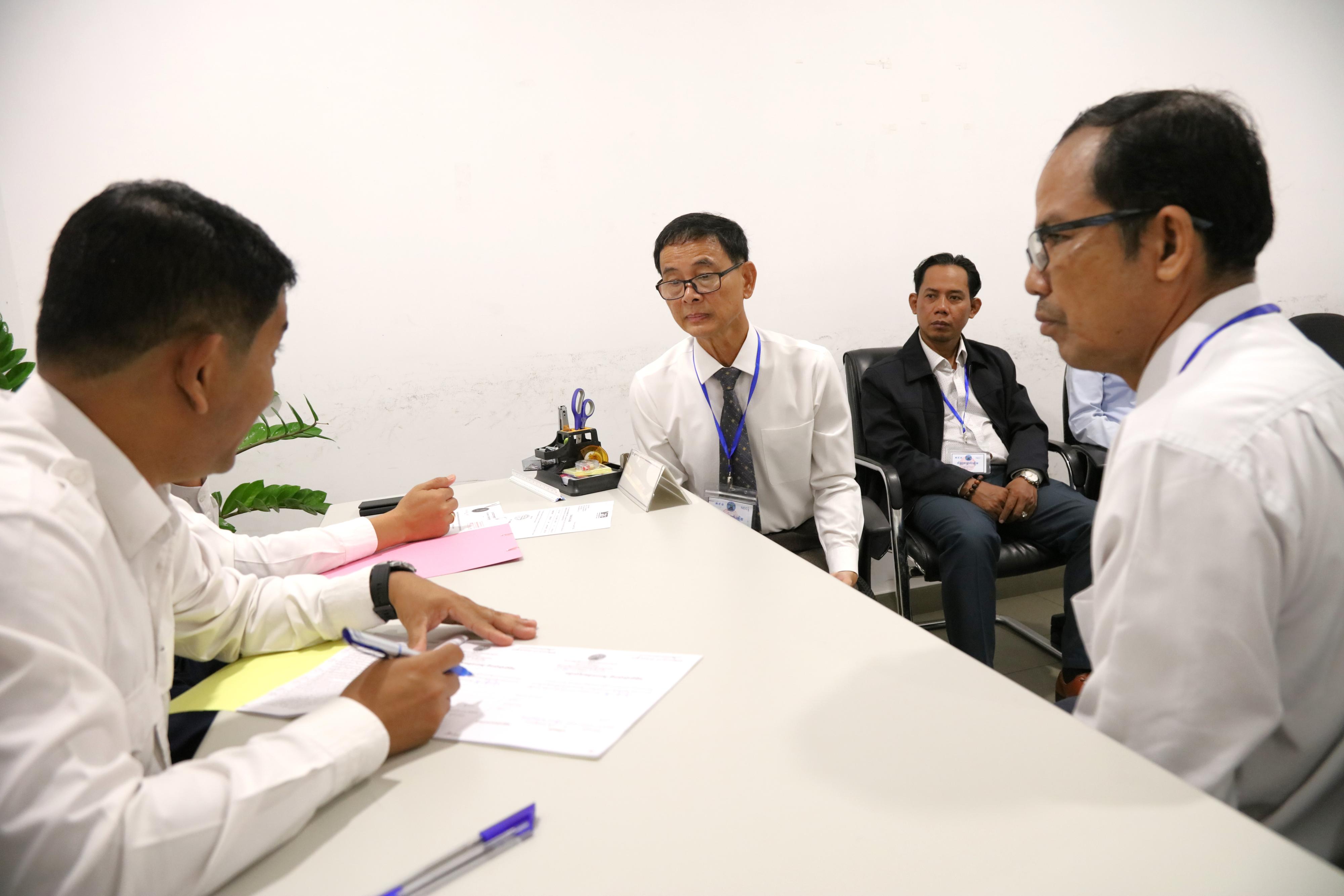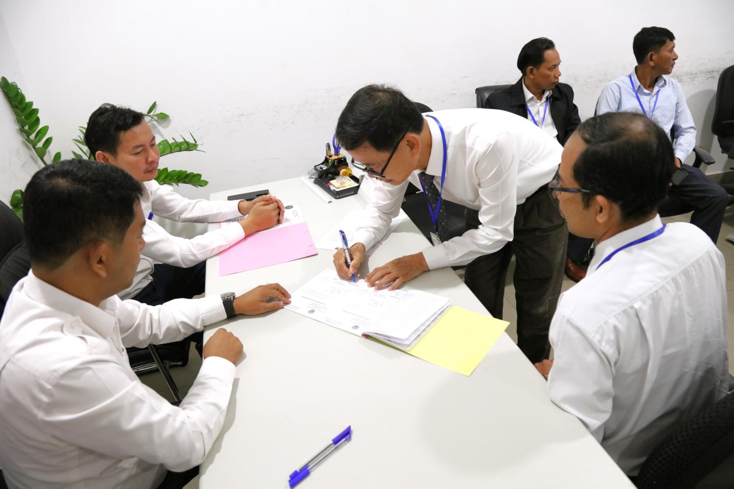 រូបភាពសកម្មភាពនៃការទទួលពាក្យសុំចុះបញ្ជីគណបក្សនយោបាយឈរឈ្មោះបោះឆ្នោត និងបញ្ជីបេក្ខជនឈរឈ្មោះ សម្រាប់ការបោះឆ្នោតជ្រើសតាំងសមាជិកព្រឹទ្ធសភា នីតិកាលទី៥ ឆ្នាំ២០២៤ របស់គណបក្សហ៊្វុនស៊ិនប៉ិច នៅទីស្ដីការ គ.ជ.ប នាព្រឹកថ្ងៃទី៩ ខែធ្នូ ឆ្នាំ២០២៣