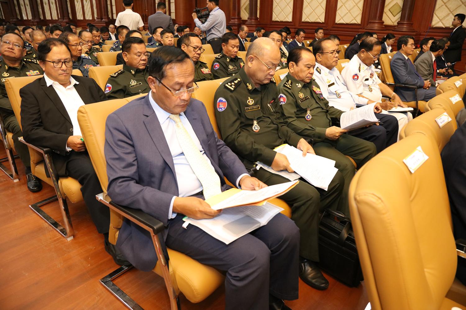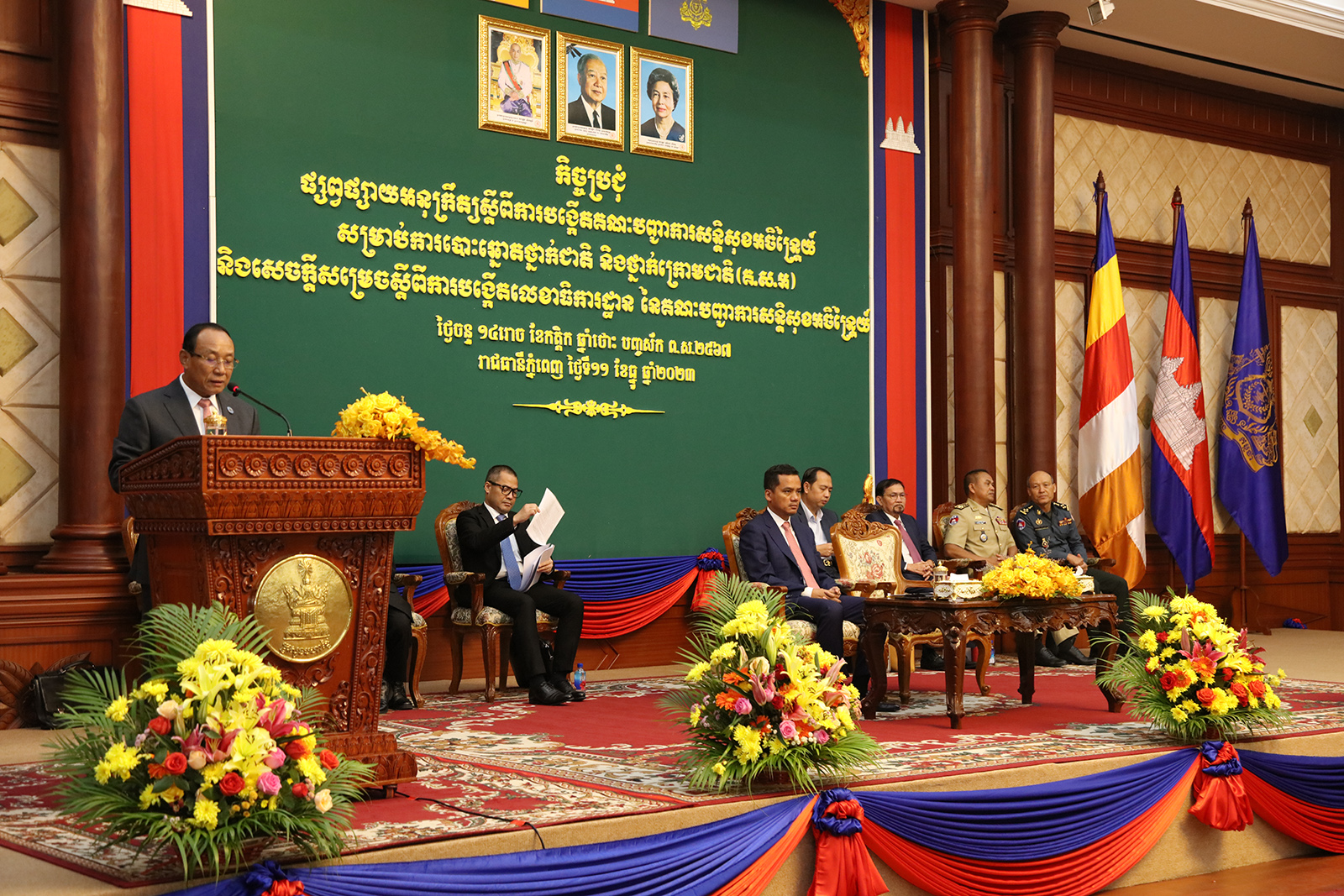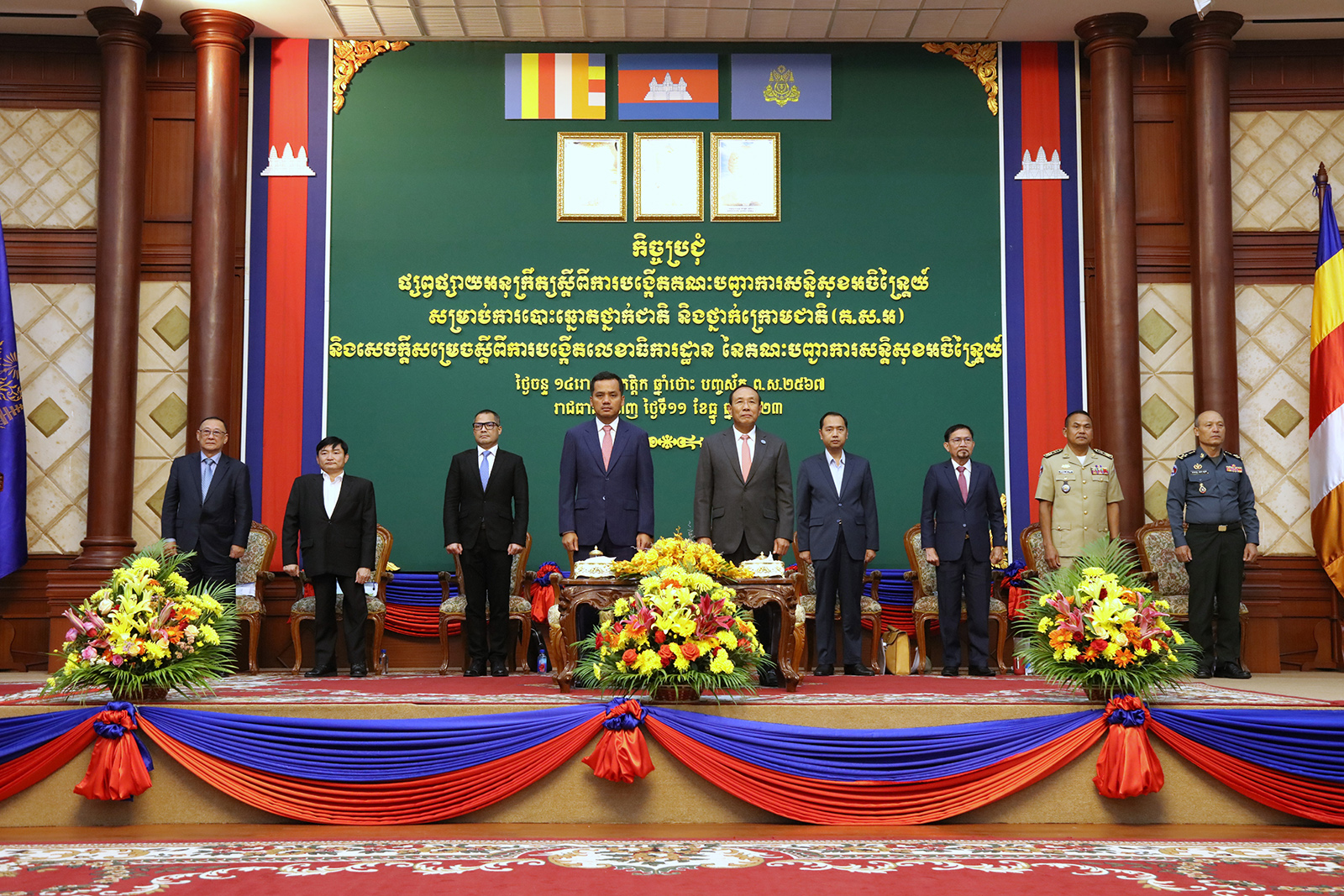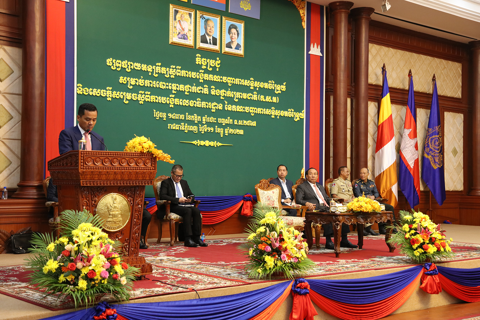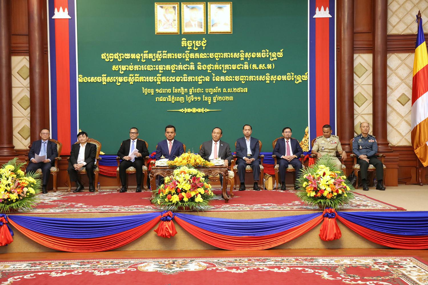 រូបភាពសកម្មភាព ឯកឧត្តម ប្រាជ្ញ ចន្ទ ប្រធានគណៈកម្មាធិការជាតិរៀបចំការបោះឆ្នោត (គ.ជ.ប) រួមទាំងថ្នាក់ដឹកនាំនៃអគ្គលេខាធិការដ្ឋាន គ.ជ.ប បានអញ្ជើញចូលរួមក្នុងកិច្ចប្រជុំផ្សព្វផ្សាយអនុក្រឹត្យ ស្តីពីការបង្កើតគណៈបញ្ជាការសន្តិសុខអចិន្រ្តៃយ៍សម្រាប់ការបោះឆ្នោតថ្នាក់ជាតិ និងថ្នាក់ក្រោមជាតិ (គ.ស.អ) និងសេចក្តីសម្រេចស្តីពីការបង្កើតលេខាធិការដ្ឋាននៃគណៈបញ្ជាការសន្តិសុខអចិន្រ្តៃយ៍សម្រាប់ការបោះឆ្នោតថ្នាក់ជាតិ និងថ្នាក់ក្រោមជាតិ នៅសាលប្រជុំអគារ S ទីស្តីការក្រសួងមហាផ្ទៃ នារសៀលថ្ងៃទី១១ ខែធ្នូ ឆ្នាំ២០២៣។