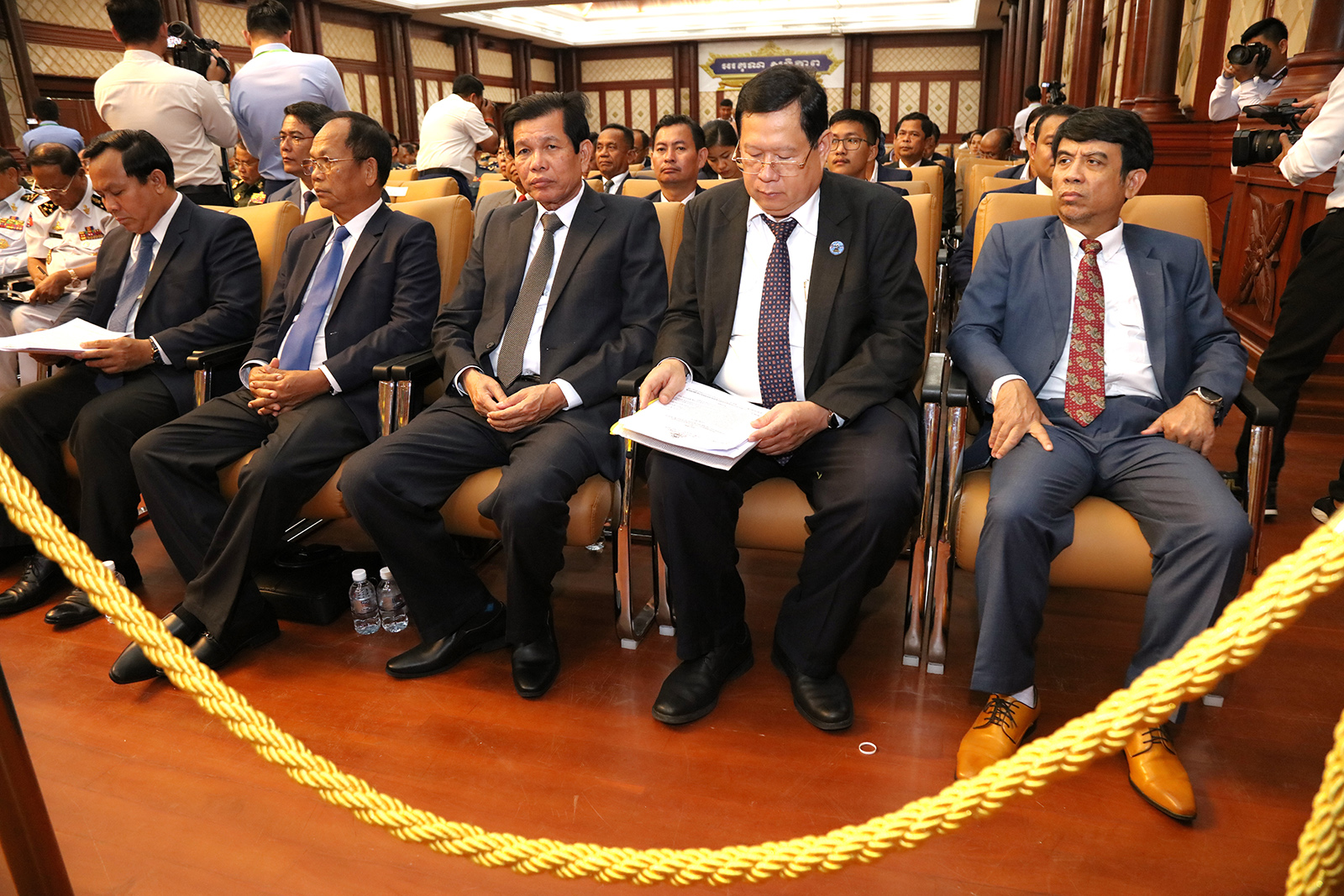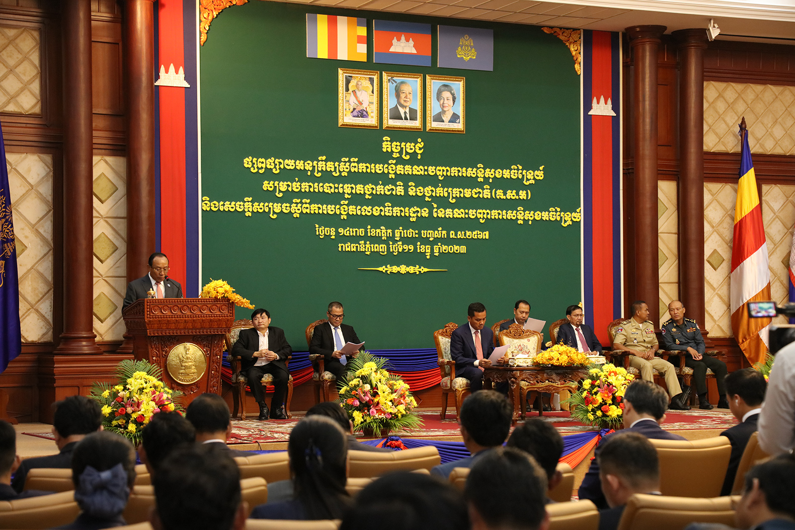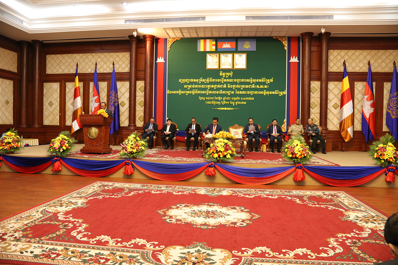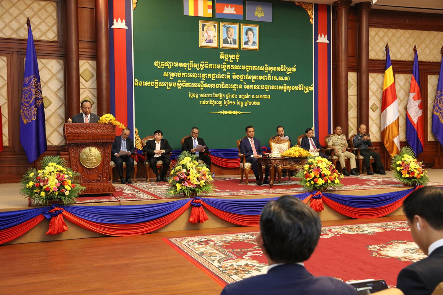 រូបភាពសកម្មភាព ឯកឧត្តម ប្រាជ្ញ ចន្ទ ប្រធានគណៈកម្មាធិការជាតិរៀបចំការបោះឆ្នោត (គ.ជ.ប) រួមទាំងថ្នាក់ដឹកនាំនៃអគ្គលេខាធិការដ្ឋាន គ.ជ.ប បានអញ្ជើញចូលរួមក្នុងកិច្ចប្រជុំផ្សព្វផ្សាយអនុក្រឹត្យ ស្តីពីការបង្កើតគណៈបញ្ជាការសន្តិសុខអចិន្រ្តៃយ៍សម្រាប់ការបោះឆ្នោតថ្នាក់ជាតិ និងថ្នាក់ក្រោមជាតិ (គ.ស.អ) និងសេចក្តីសម្រេចស្តីពីការបង្កើតលេខាធិការដ្ឋាននៃគណៈបញ្ជាការសន្តិសុខអចិន្រ្តៃយ៍សម្រាប់ការបោះឆ្នោតថ្នាក់ជាតិ និងថ្នាក់ក្រោមជាតិ នៅសាលប្រជុំអគារ S ទីស្តីការក្រសួងមហាផ្ទៃ នារសៀលថ្ងៃទី១១ ខែធ្នូ ឆ្នាំ២០២៣។