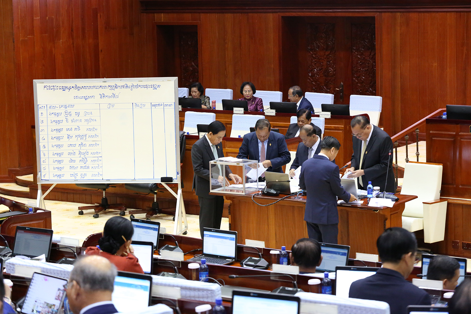 រូបភាពសកម្មភាព សមាសភាពគណៈកម្មាធិការជាតិរៀបចំការបោះឆ្នោត អាណត្តិថ្មី ចំនួន ៩រូបរួមមាន ៖