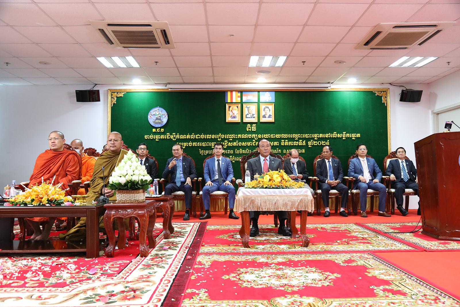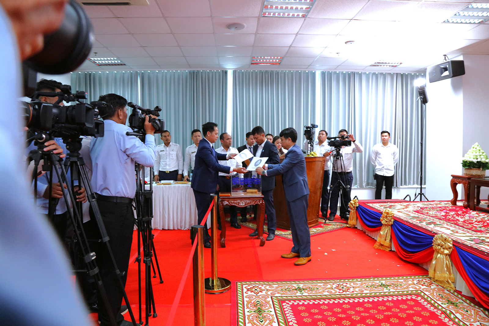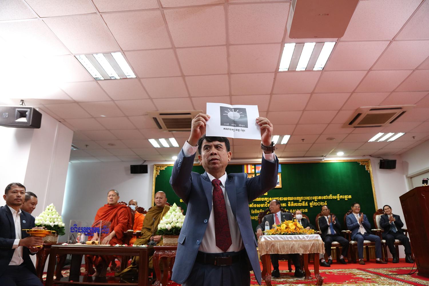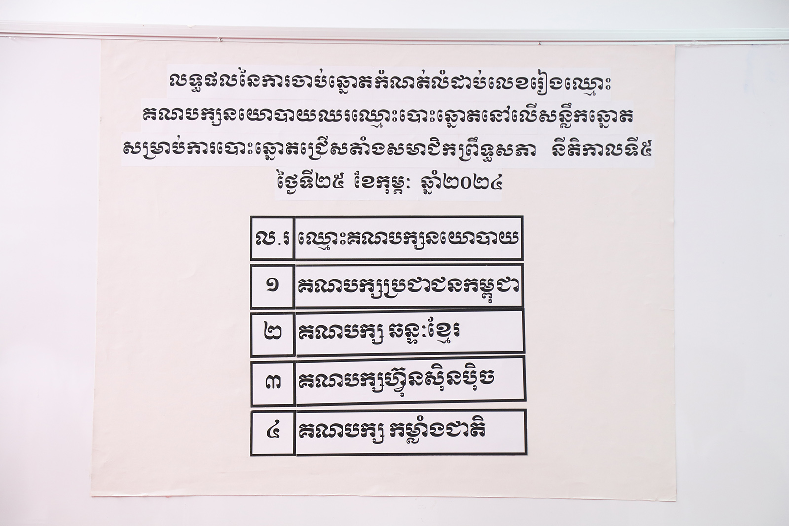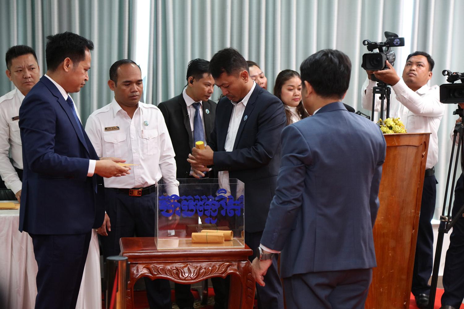 រូបភាពសកម្មភាព គណៈកម្មាធិការជាតិរៀបចំការបោះឆ្នោត (គ.ជ.ប) បានរៀបចំពិធីចាប់ឆ្នោតដើម្បីកំណត់លំដាប់លេខរៀងឈ្មោះគណបក្ស នយោបាយឈរឈ្មោះបោះឆ្នោតនៅលើសន្លឹកឆ្នោត សម្រាប់ការបោះឆ្នោតជ្រើសតាំង សមាជិកព្រឹទ្ធសភា នីតិកាលទី៥ ឆ្នាំ២០២៤ នៅទីស្ដីការ គ.ជ.ប នាព្រឹកថ្ងៃទី២៨ ខែធ្នូ ឆ្នាំ២០២៣។