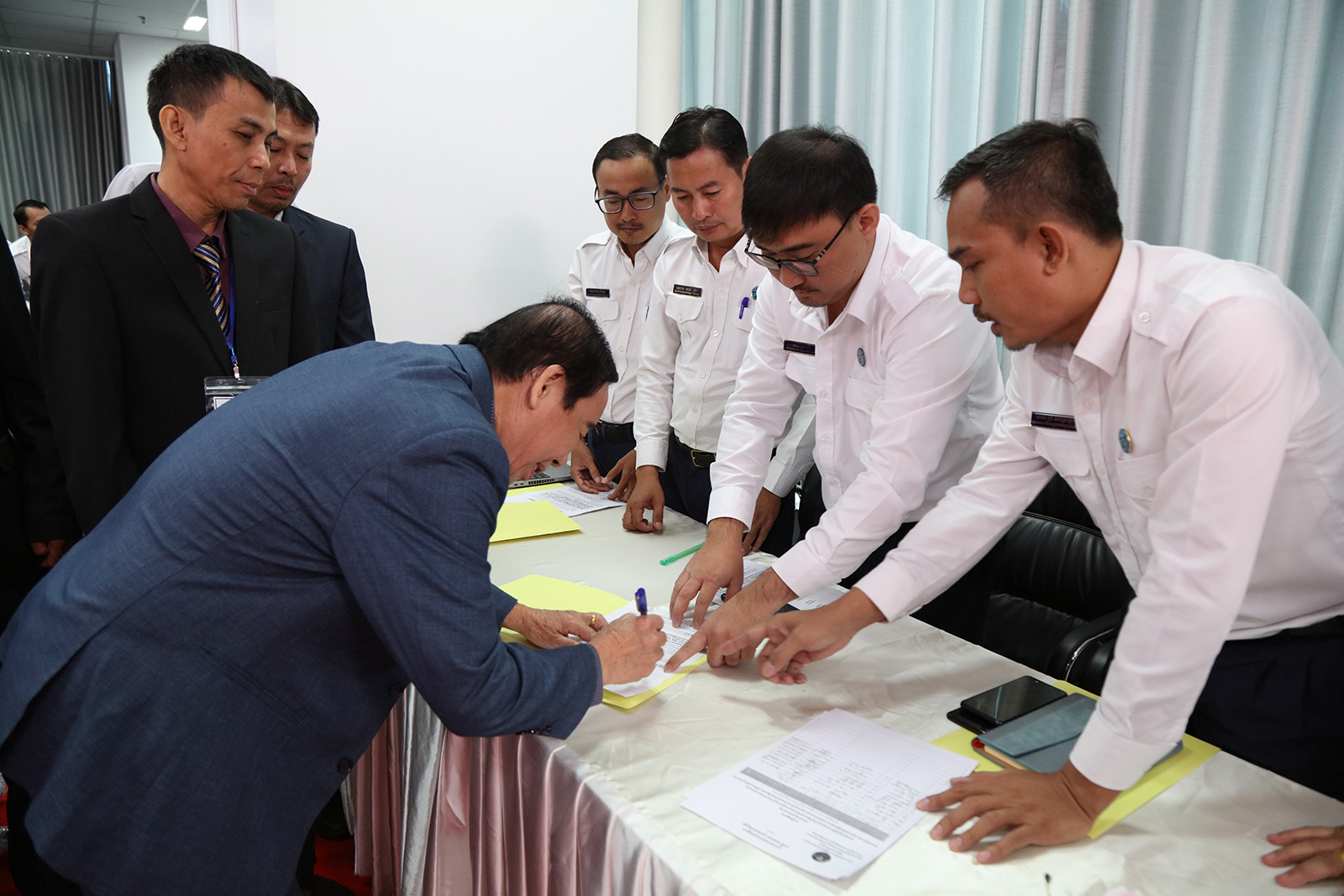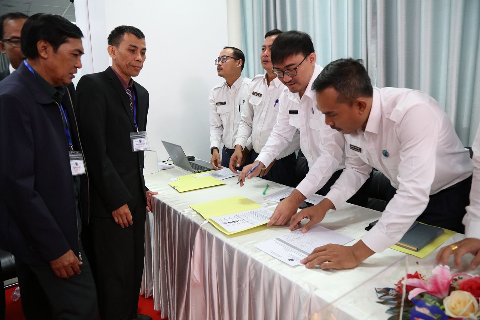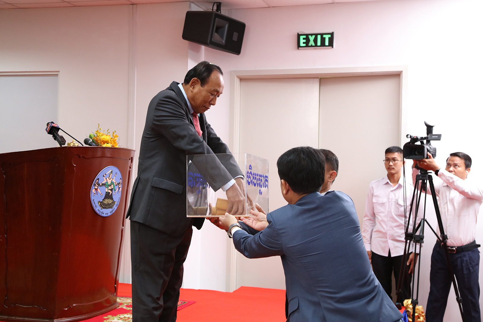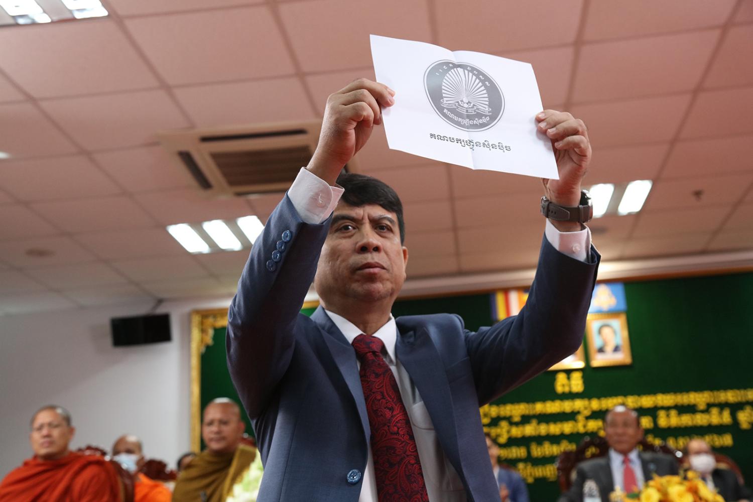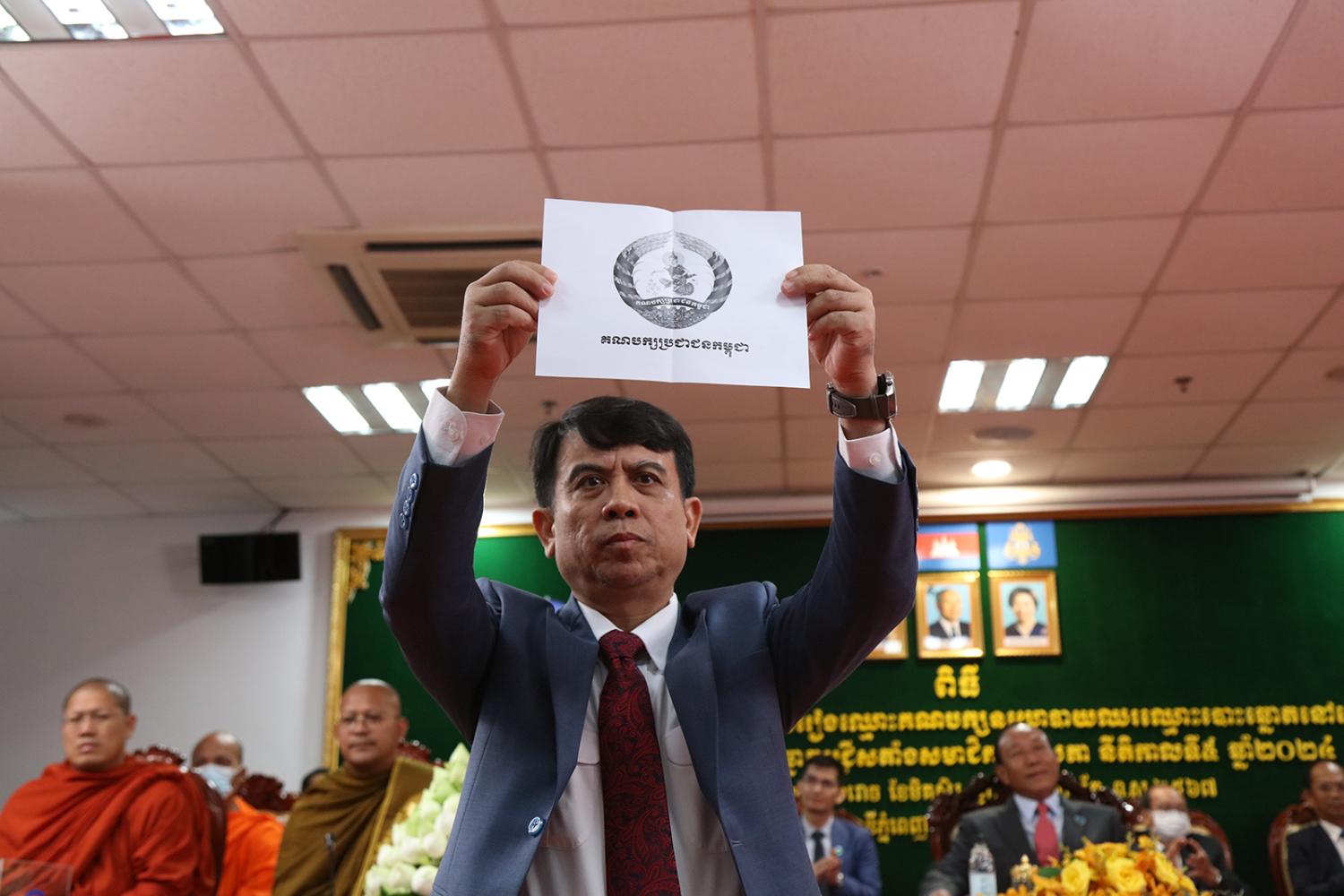 រូបភាពសកម្មភាព គណៈកម្មាធិការជាតិរៀបចំការបោះឆ្នោត (គ.ជ.ប) បានរៀបចំពិធីចាប់ឆ្នោតដើម្បីកំណត់លំដាប់លេខរៀងឈ្មោះគណបក្ស នយោបាយឈរឈ្មោះបោះឆ្នោតនៅលើសន្លឹកឆ្នោត សម្រាប់ការបោះឆ្នោតជ្រើសតាំង សមាជិកព្រឹទ្ធសភា នីតិកាលទី៥ ឆ្នាំ២០២៤ នៅទីស្ដីការ គ.ជ.ប នាព្រឹកថ្ងៃទី២៨ ខែធ្នូ ឆ្នាំ២០២៣។