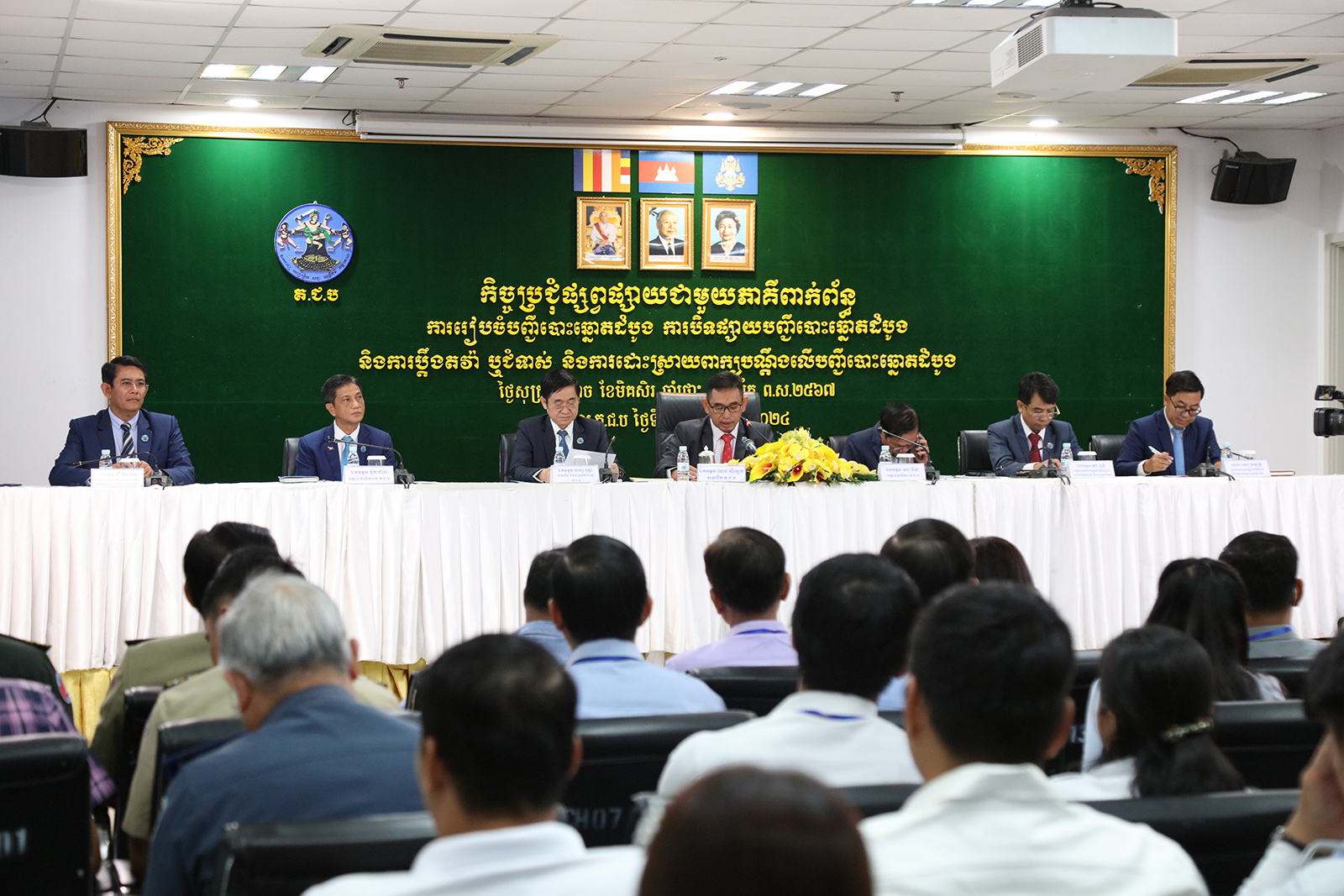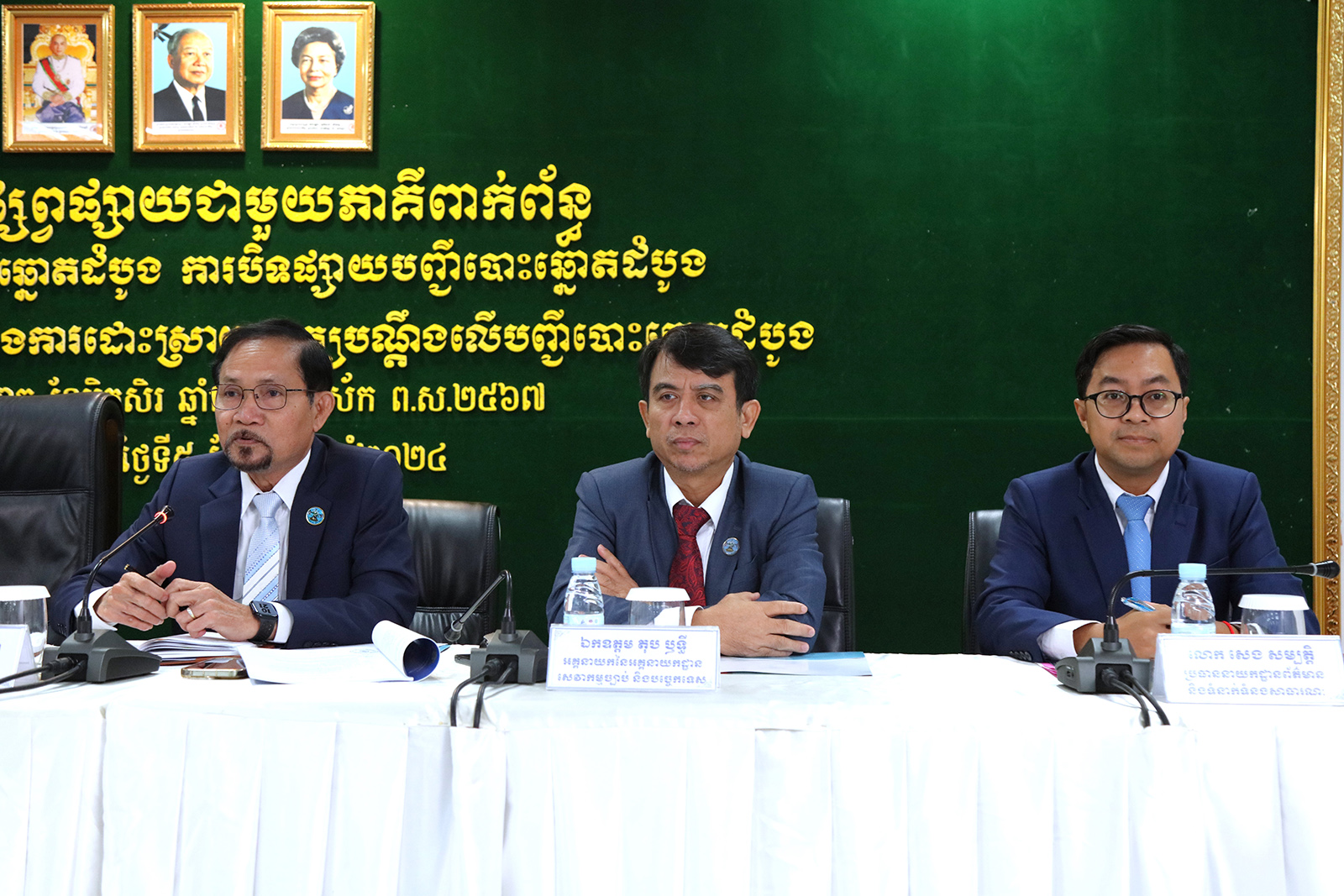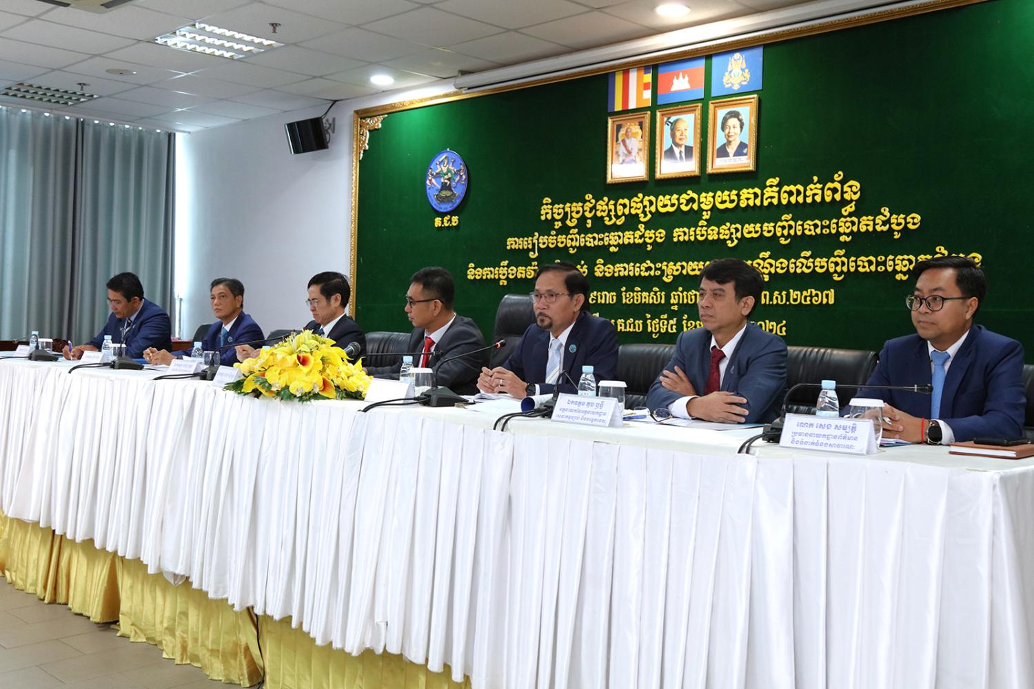 រូបភាពសកម្មភាព ឯកឧត្តម ហេង ស៊ីឡេង សមាជិក គ.ជ.ប បានដឹកនាំកិច្ចប្រជុំផ្សព្វផ្សាយជាមួយភាគីពាក់ព័ន្ធ ស្តីពី ការរៀបចំបញ្ជីបោះឆ្នោតដំបូង ការបិទផ្សាយបញ្ជីបោះឆ្នោតដំបូង ការប្តឹងតវ៉ា ឬជំទាស់ និងការដោះស្រាយពាក្យបណ្តឹងលើបញ្ជីបោះឆ្នោតដំបូង សម្រាប់ការបោះឆ្នោតជ្រើសតាំង សមាជិកព្រឹទ្ធសភា នីតិកាលទី៥ ឆ្នាំ២០២៤ នៅទីស្ដីការ គ.ជ.ប នាព្រឹកថ្ងៃទី៥ ខែមករា ឆ្នាំ២០២៤។