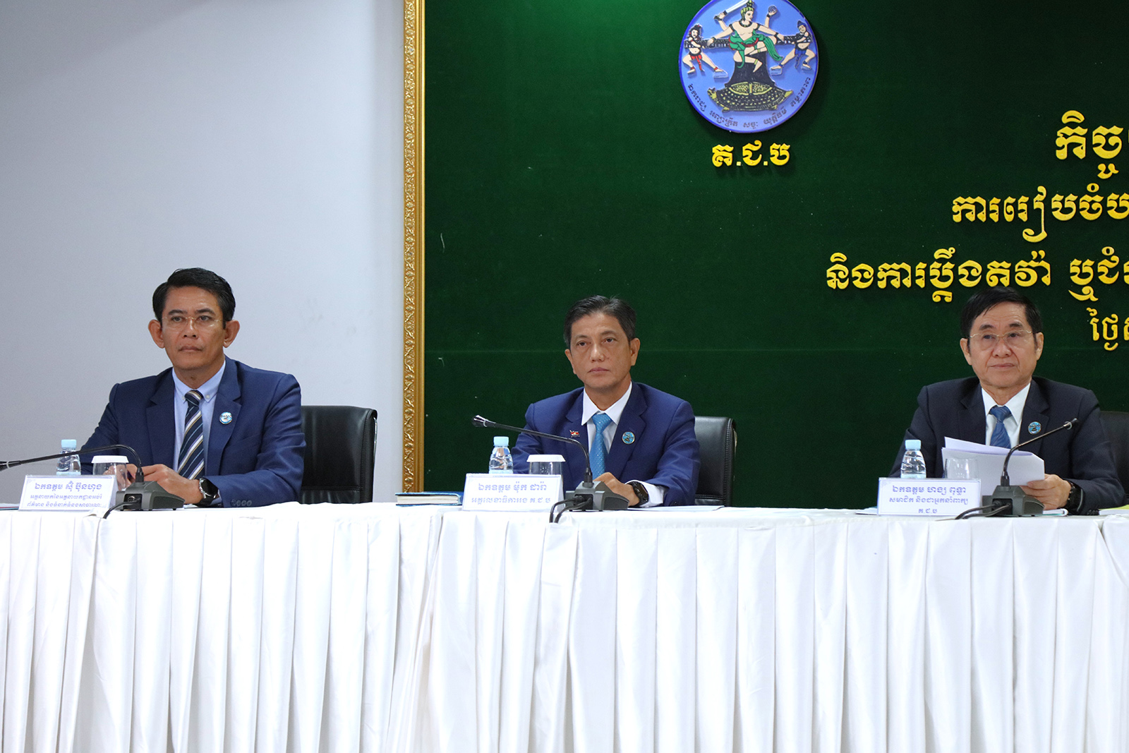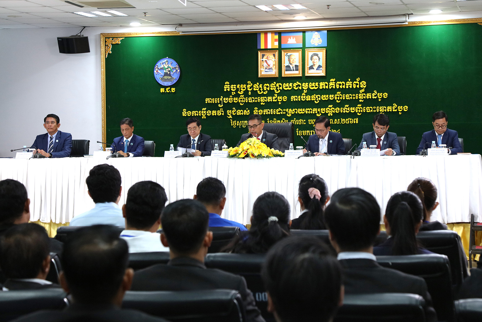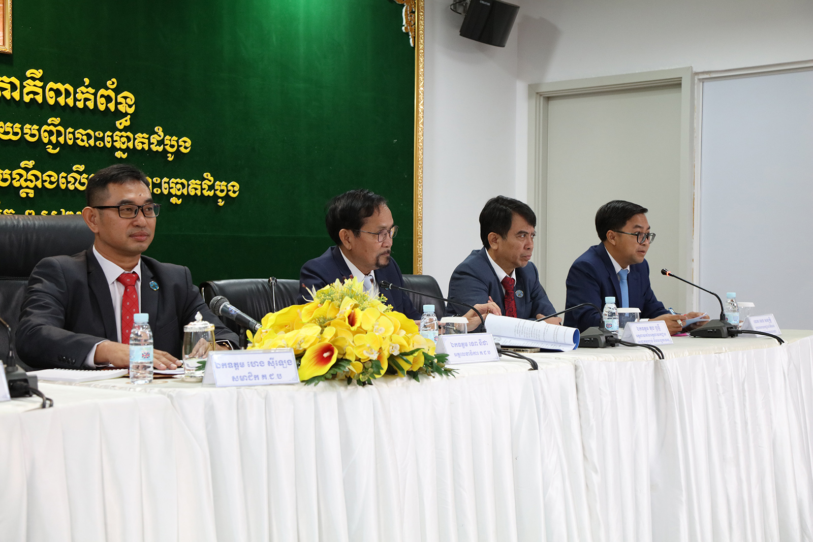 រូបភាពសកម្មភាព ឯកឧត្តម ហេង ស៊ីឡេង សមាជិក គ.ជ.ប បានដឹកនាំកិច្ចប្រជុំផ្សព្វផ្សាយជាមួយភាគីពាក់ព័ន្ធ ស្តីពី ការរៀបចំបញ្ជីបោះឆ្នោតដំបូង ការបិទផ្សាយបញ្ជីបោះឆ្នោតដំបូង ការប្តឹងតវ៉ា ឬជំទាស់ និងការដោះស្រាយពាក្យបណ្តឹងលើបញ្ជីបោះឆ្នោតដំបូង សម្រាប់ការបោះឆ្នោតជ្រើសតាំង សមាជិកព្រឹទ្ធសភា នីតិកាលទី៥ ឆ្នាំ២០២៤ នៅទីស្ដីការ គ.ជ.ប នាព្រឹកថ្ងៃទី៥ ខែមករា ឆ្នាំ២០២៤។