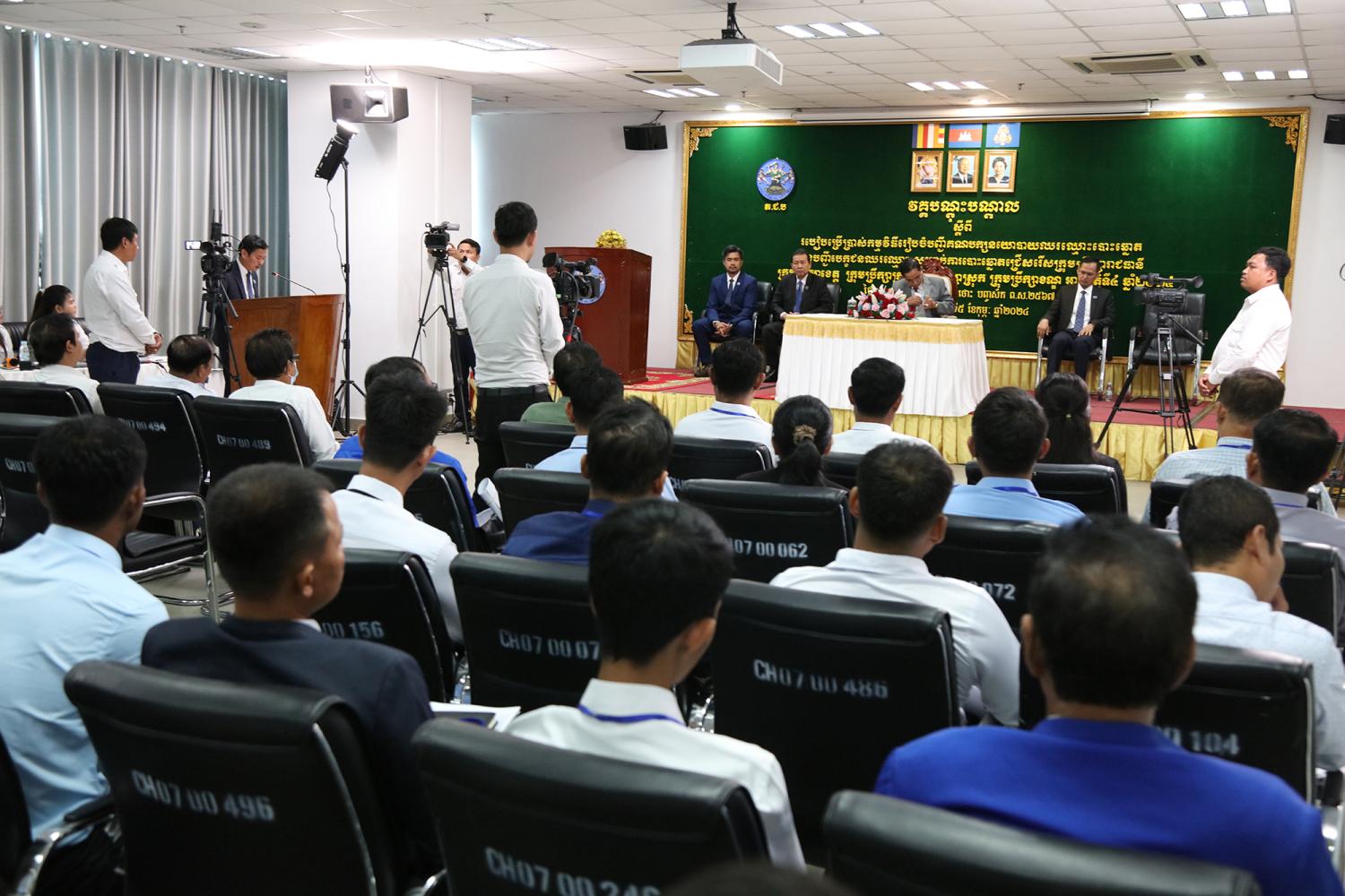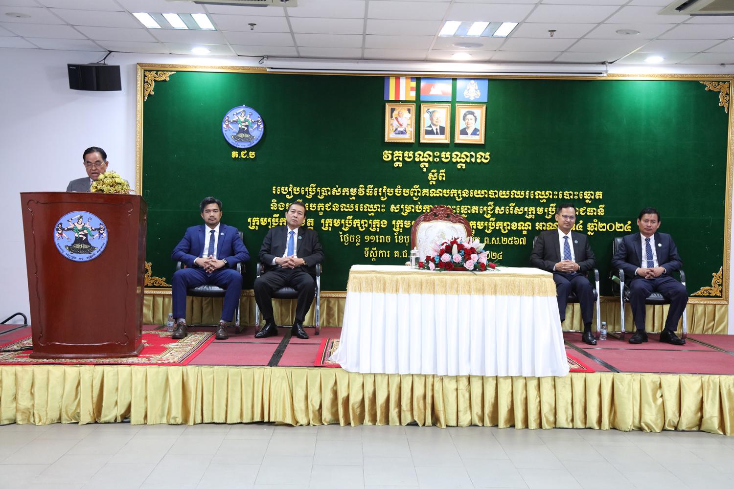 រូបភាពសកម្មភាព ឯកឧត្តម កែ រឹទ្ធិ អគ្គលេខាធិការរង គ.ជ.ប អញ្ជើញជាអធិបតី ក្នុងពិធីបិទវគ្គបណ្តុះបណ្តាល ស្តីពីរបៀបប្រើប្រាស់កម្មវិធីរៀបចំបញ្ជីគណបក្សនយោបាយឈរឈ្មោះបោះឆ្នោត និងបញ្ជីបេក្ខជនឈរឈ្មោះ សម្រាប់ការបោះឆ្នោតជ្រើសរើសក្រុមប្រឹក្សារាជធានី ក្រុមប្រឹក្សាខេត្ត ក្រុមប្រឹក្សាក្រុង ក្រុមប្រឹក្សាស្រុក ក្រុមប្រឹក្សាខណ្ឌ អាណត្តិទី៤ ឆ្នាំ២០២៤ នៅទីស្ដីការ គ.ជ.ប នាព្រឹកថ្ងៃទី៥ ខែកុម្ភៈ ឆ្នាំ២០២៤