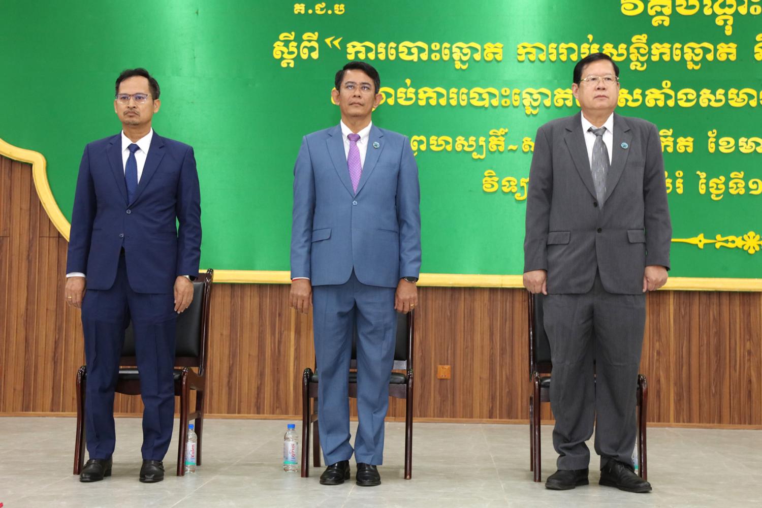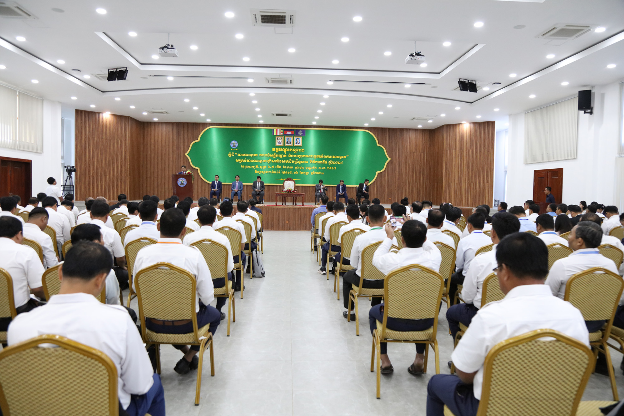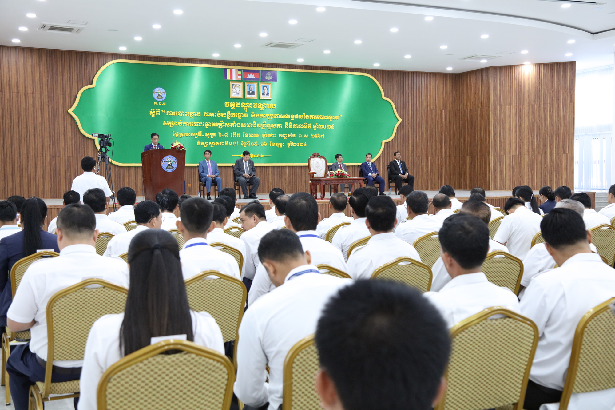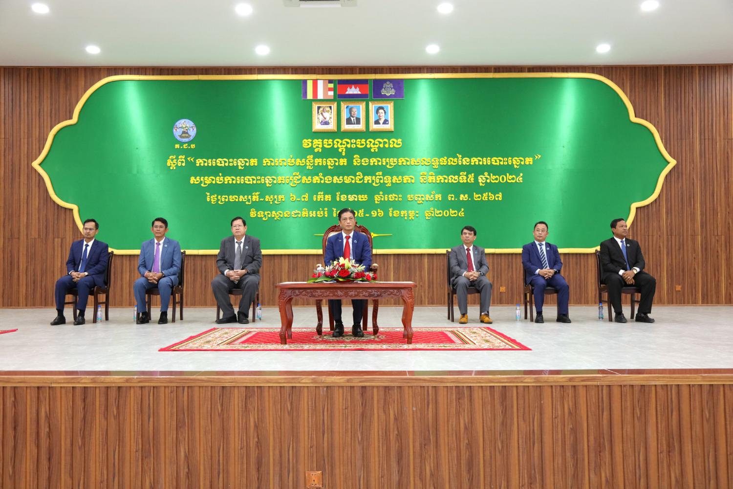 រូបភាពសកម្មភាព ឯកឧត្ដម ម៉ុក ដារ៉ា អគ្គលេខាធិការរង គ.ជ.ប បានអញ្ជើញជាអធិបតីក្នុងពិធីបើកវគ្គបណ្ដុះបណ្ដាលដល់ភាគីពាក់ព័ន្ធ និងមន្រ្តី គ.ជ.ប ស្ដីពី “ការបោះឆ្នោត ការរាប់សន្លឹកឆ្នោត និងការប្រកាសលទ្ធផលនៃការបោះឆ្នោត” សម្រាប់ការបោះឆ្នោតជ្រើសតាំងសមាជិកព្រឹទ្ធសភា នីតិកាលទី៥ ឆ្នាំ២០២៤ នាព្រឹកថ្ងៃទី១៥ ខែកុម្ភៈ ឆ្នាំ២០២៤ ស្ថានជាតិអប់រំ (NIE) រាជធានីភ្នំពេញ