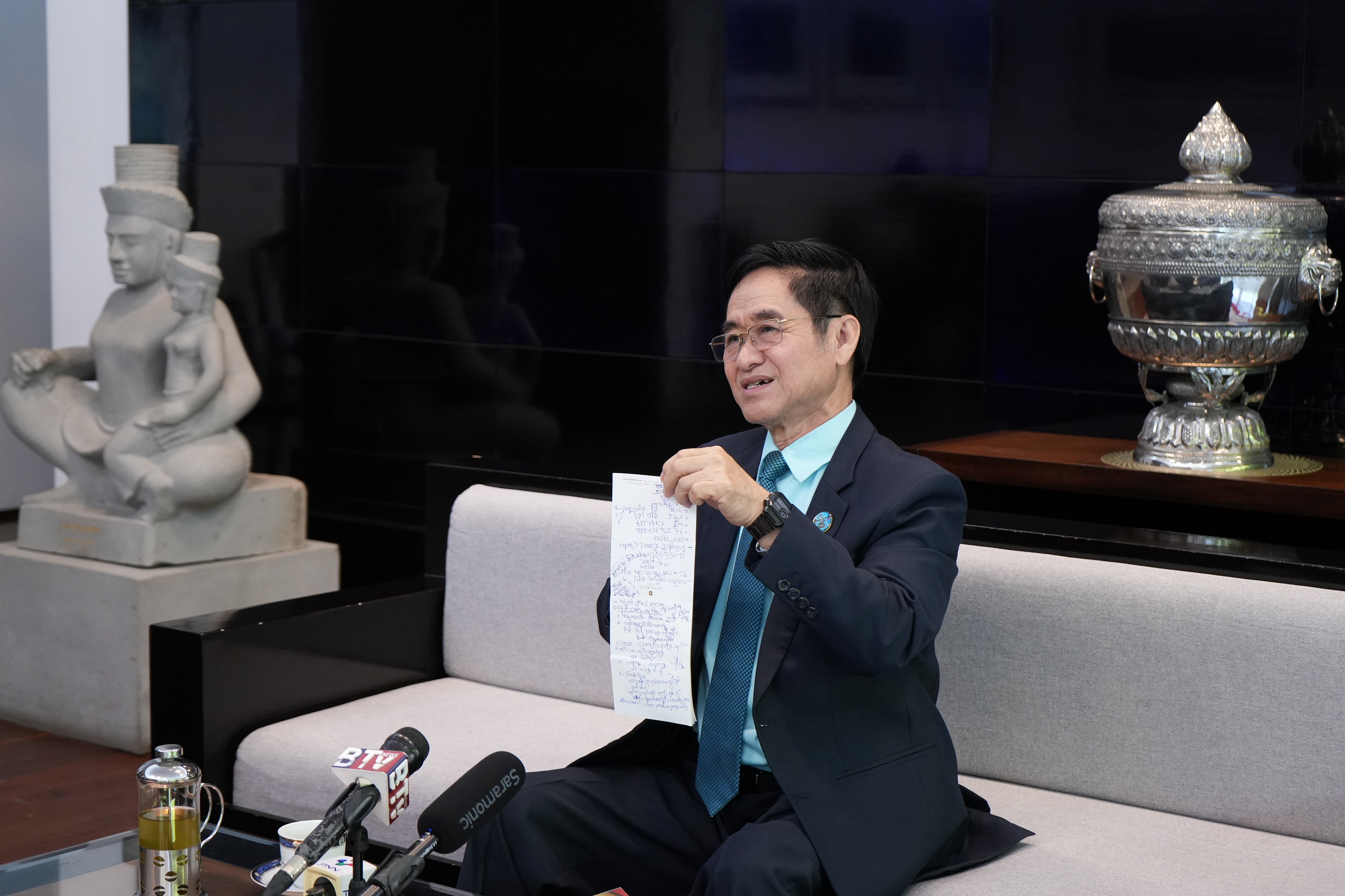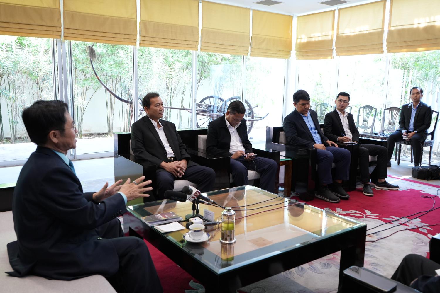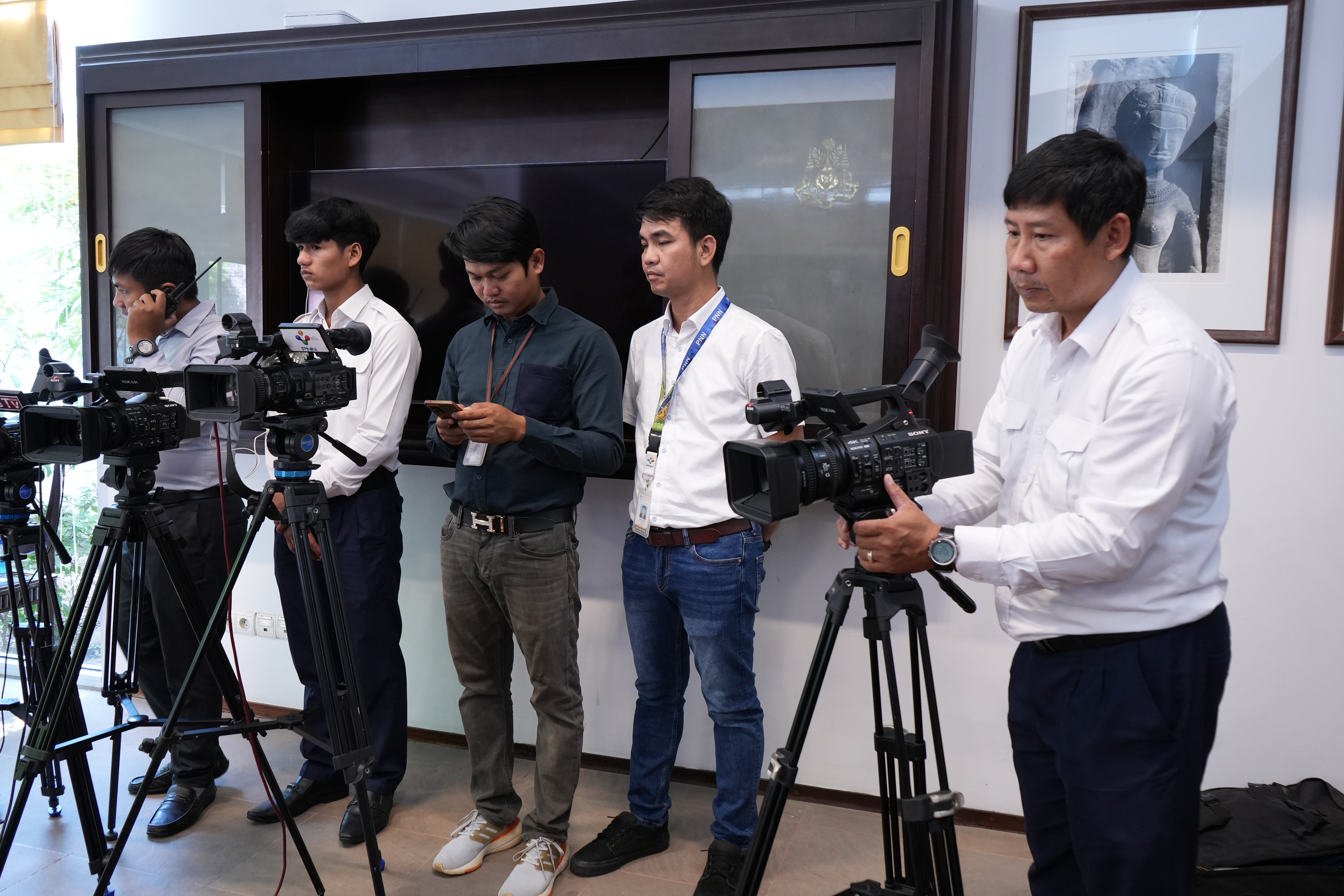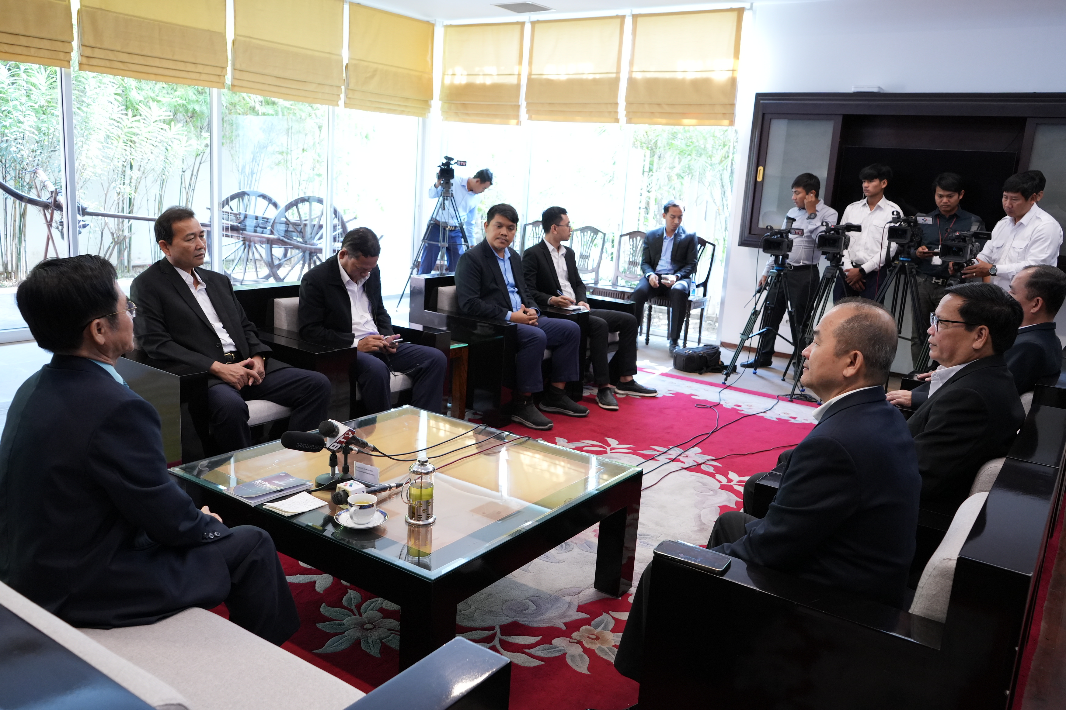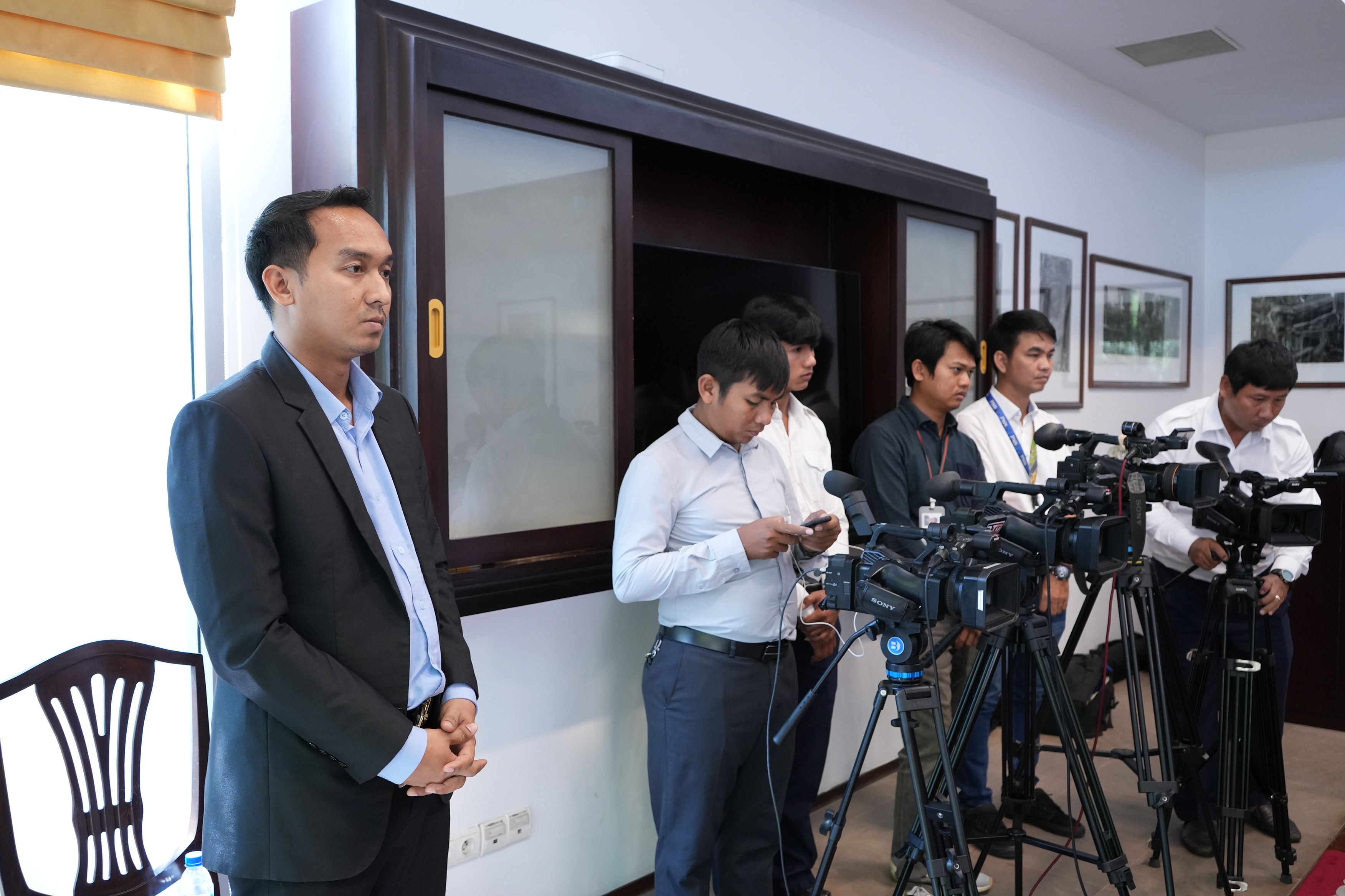 រូបភាពសកម្មភាព ឯកឧត្តម ហង្ស ពុទ្ធា សមាជិក គ.ជ.ប និងជាប្រធានក្រុមអ្នកនាំពាក្យ គ.ជ.ប បានធ្វើសន្និសីទសារព័ត៌មានជាមួយអ្នកសារព័ត៌មាន នៅអាកាសយានដ្ឋានអន្តរជាតិភ្នំពេញ ស្តីពីលទ្ធផលនៃការចូលរួមសង្កេតការណ៍បោះឆ្នោតសកលនៅសាធារណរដ្ឋឥណ្ឌូនេស៊ី បន្ទាប់ពីវិលត្រឡប់មកដល់ប្រទេសកម្ពុជាវិញដោយសុវត្ថិភាព នាព្រឹកថ្ងៃទី១៥ ខែកុម្ភៈ ឆ្នាំ២០២៤