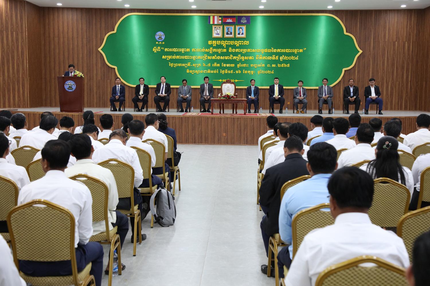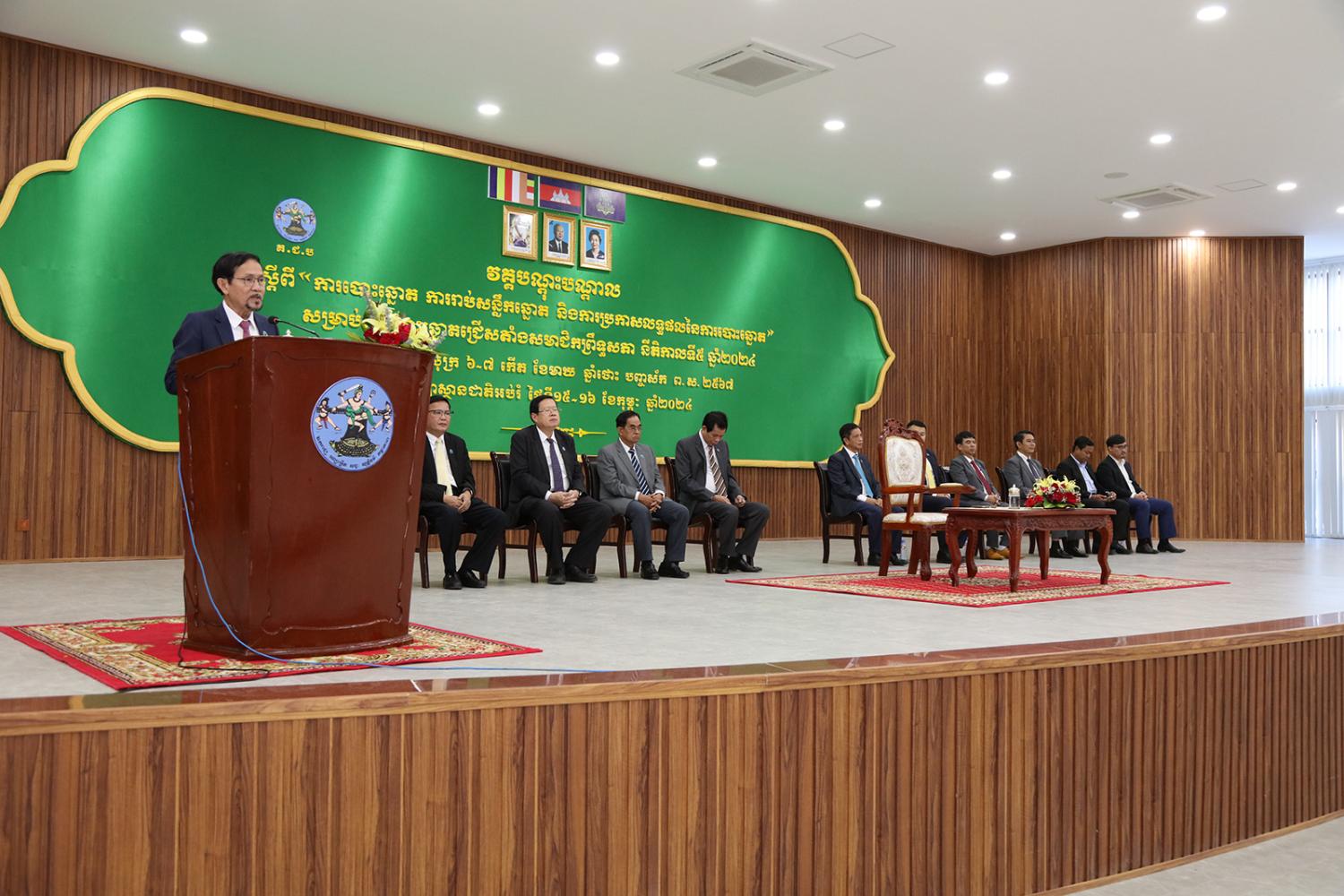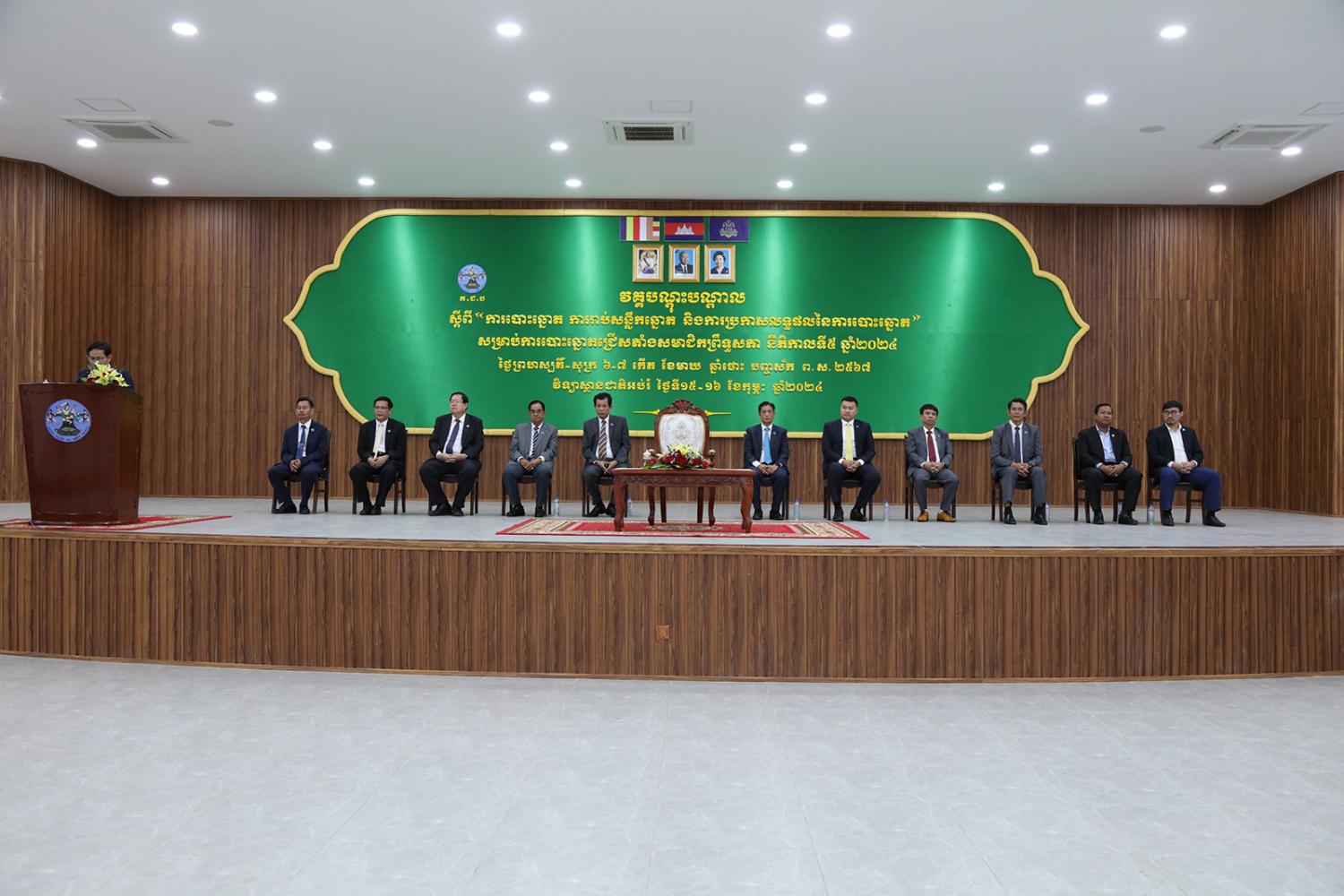 ឯកឧត្ដម ទេព នីថា អគ្គលេខាធិការ គ.ជ.ប បានអញ្ជើញជាអធិបតី ក្នុងពិធីបិទវគ្គបណ្ដុះបណ្ដាលដល់ភាគីពាក់ព័ន្ធ និងមន្រ្តី គ.ជ.ប ស្ដីពី “ការបោះឆ្នោត ការរាប់សន្លឹកឆ្នោត និងការប្រកាសលទ្ធផលនៃការបោះឆ្នោត” សម្រាប់ការបោះឆ្នោតជ្រើសតាំងសមាជិកព្រឹទ្ធសភា នីតិកាលទី៥ ឆ្នាំ២០២៤ នៅវិទ្យាស្ថានជាតិអប់រំ (NIE) រាជធានីភ្នំពេញ នារសៀលថ្ងៃទី១៦ ខែកុម្ភៈ ឆ្នាំ២០២៤។