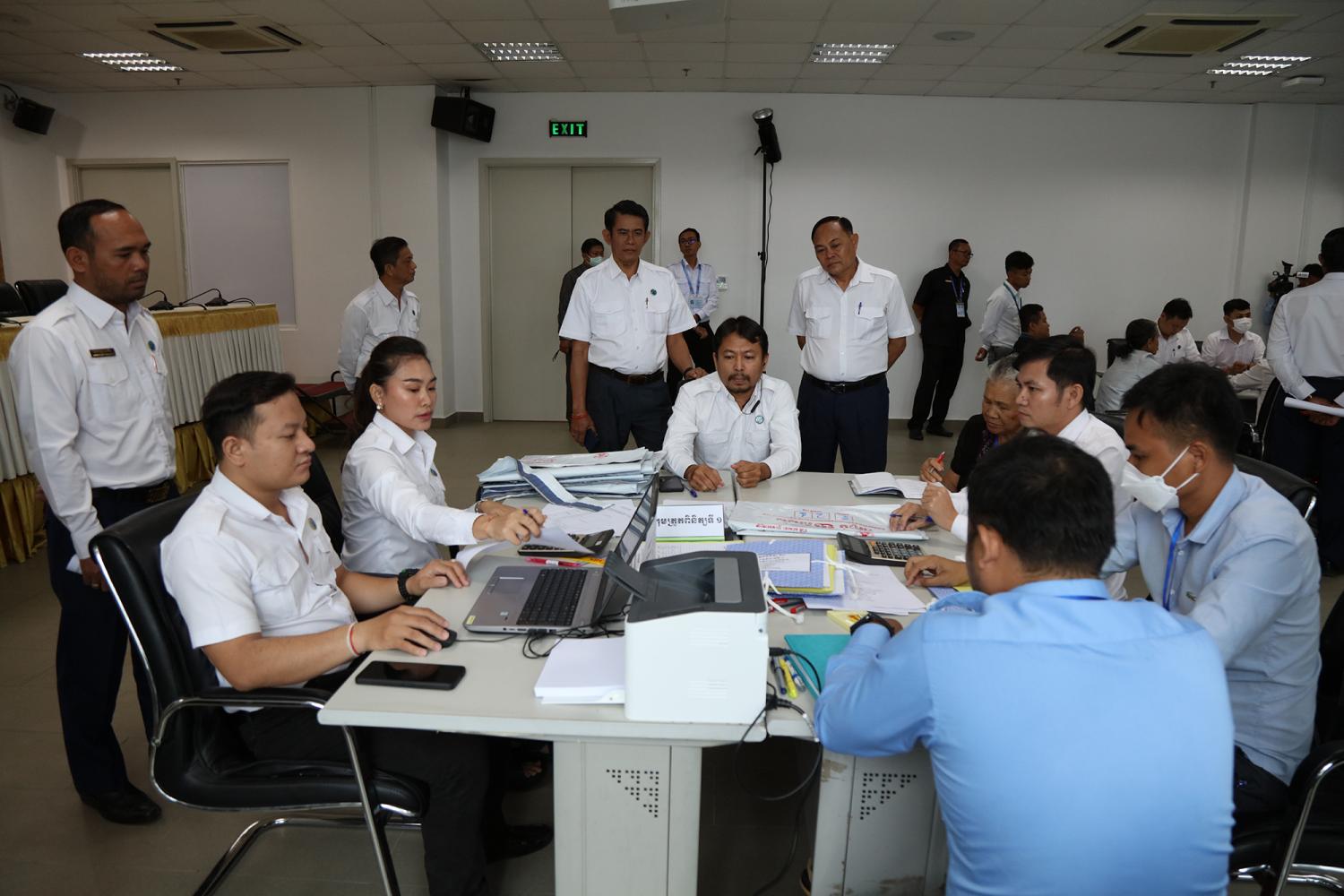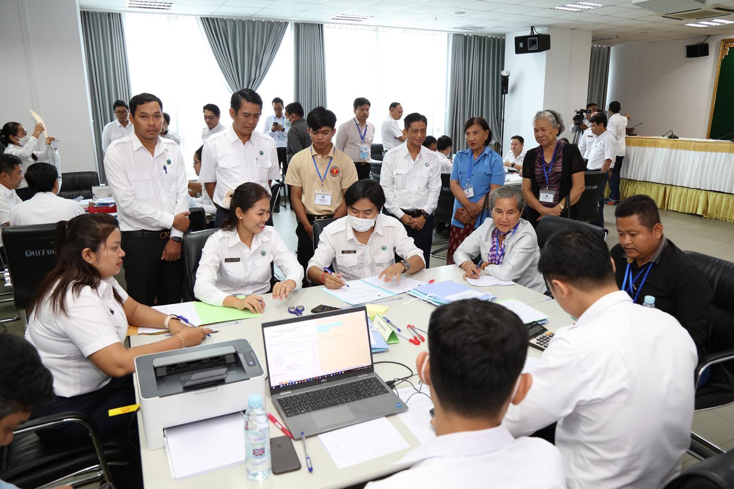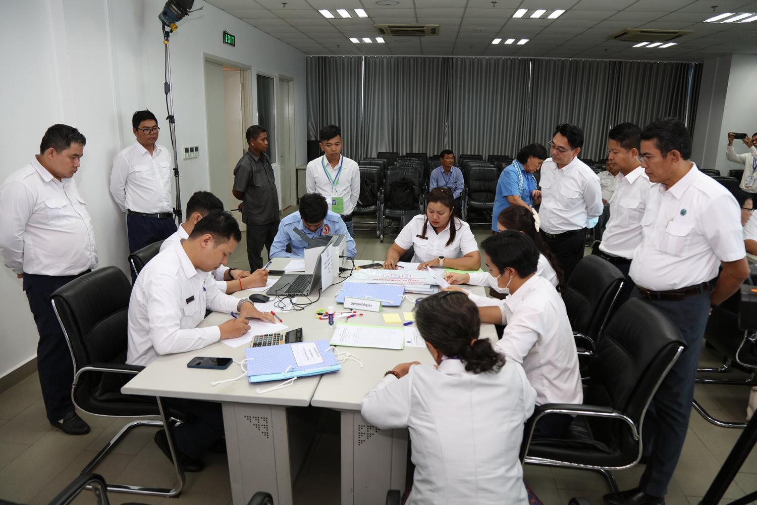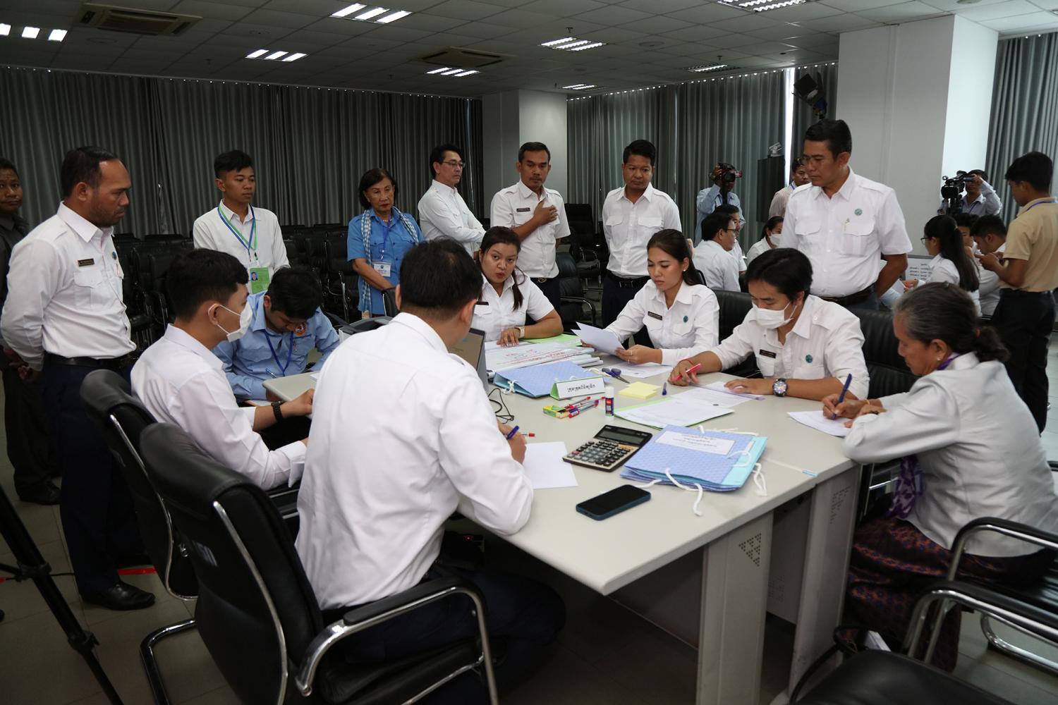 រូបភាពសកម្មភាពនៃការត្រួតពិនិត្យ និងផ្ទៀងផ្ទាត់ឡើងវិញ ដើម្បីបញ្ជាក់ពីភាពត្រឹមត្រូវនូវលទ្ធផលនៃការបោះឆ្នោតជ្រើសតាំងសមាជិកព្រឹទ្ធសភា នីតិកាលទី៥ ឆ្នាំ២០២៤ ដែលគណៈកម្មការរាជធានី ខេត្តរៀបចំការបោះឆ្នោត បានបញ្ជូនមក គ.ជ.ប នារសៀលថ្ងៃទី២៧ ខែកុម្ភៈ ឆ្នាំ២០២៤ នៅទីស្ដីការ គ.ជ.ប។