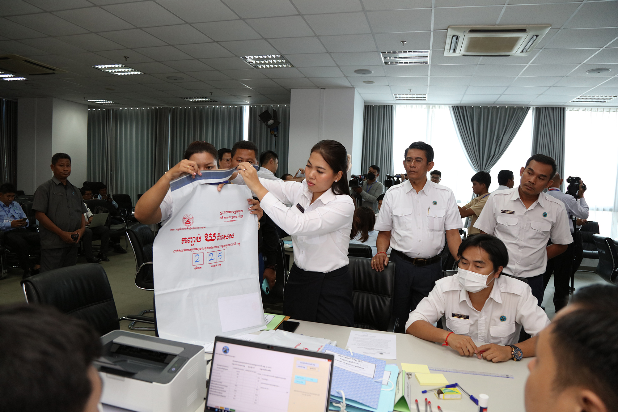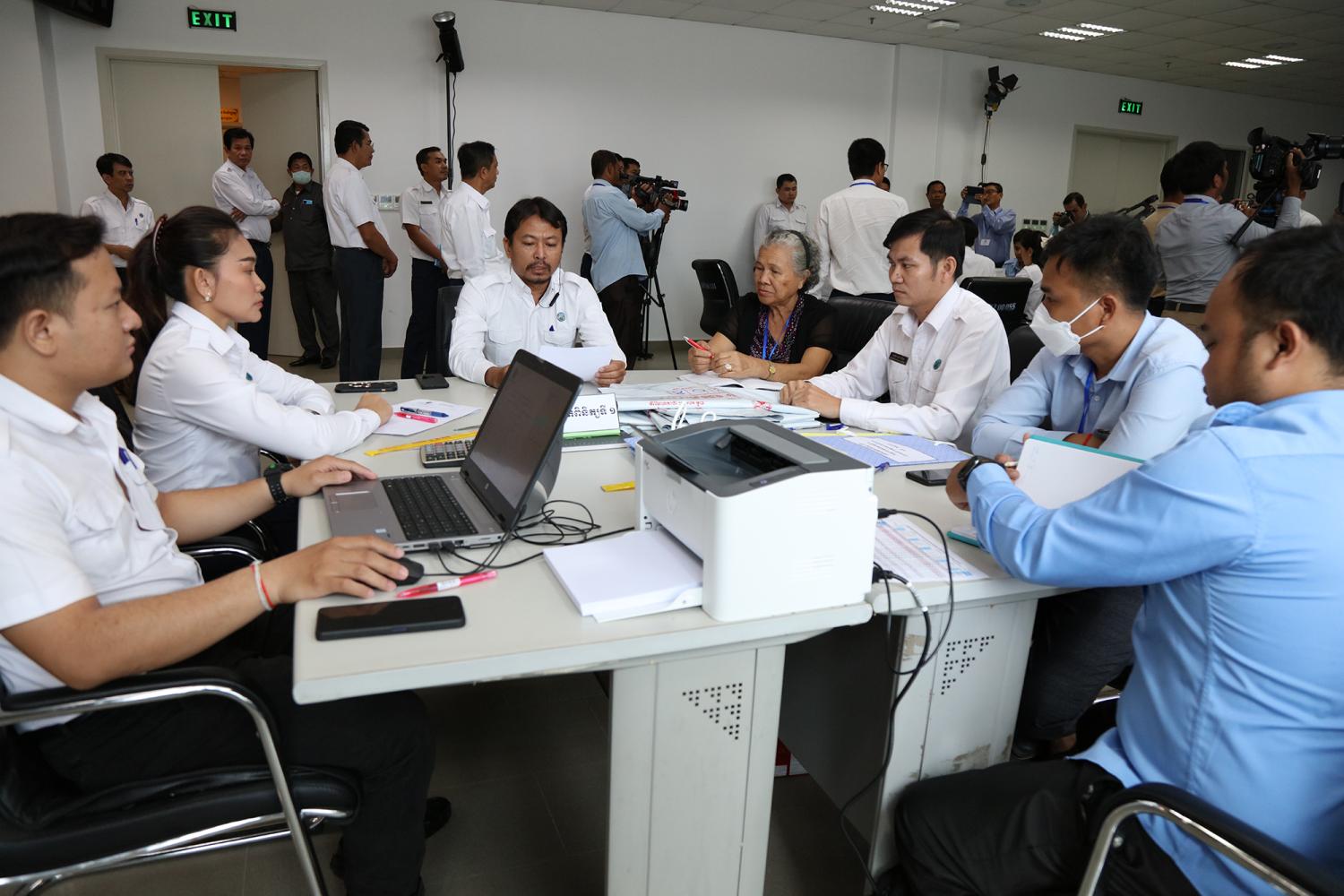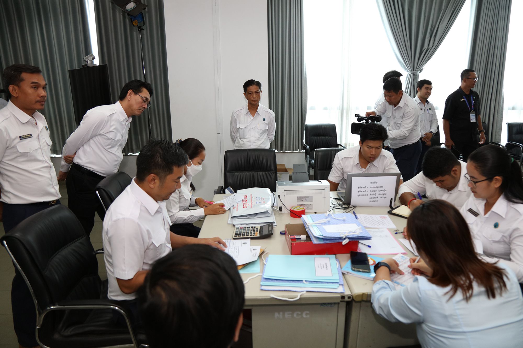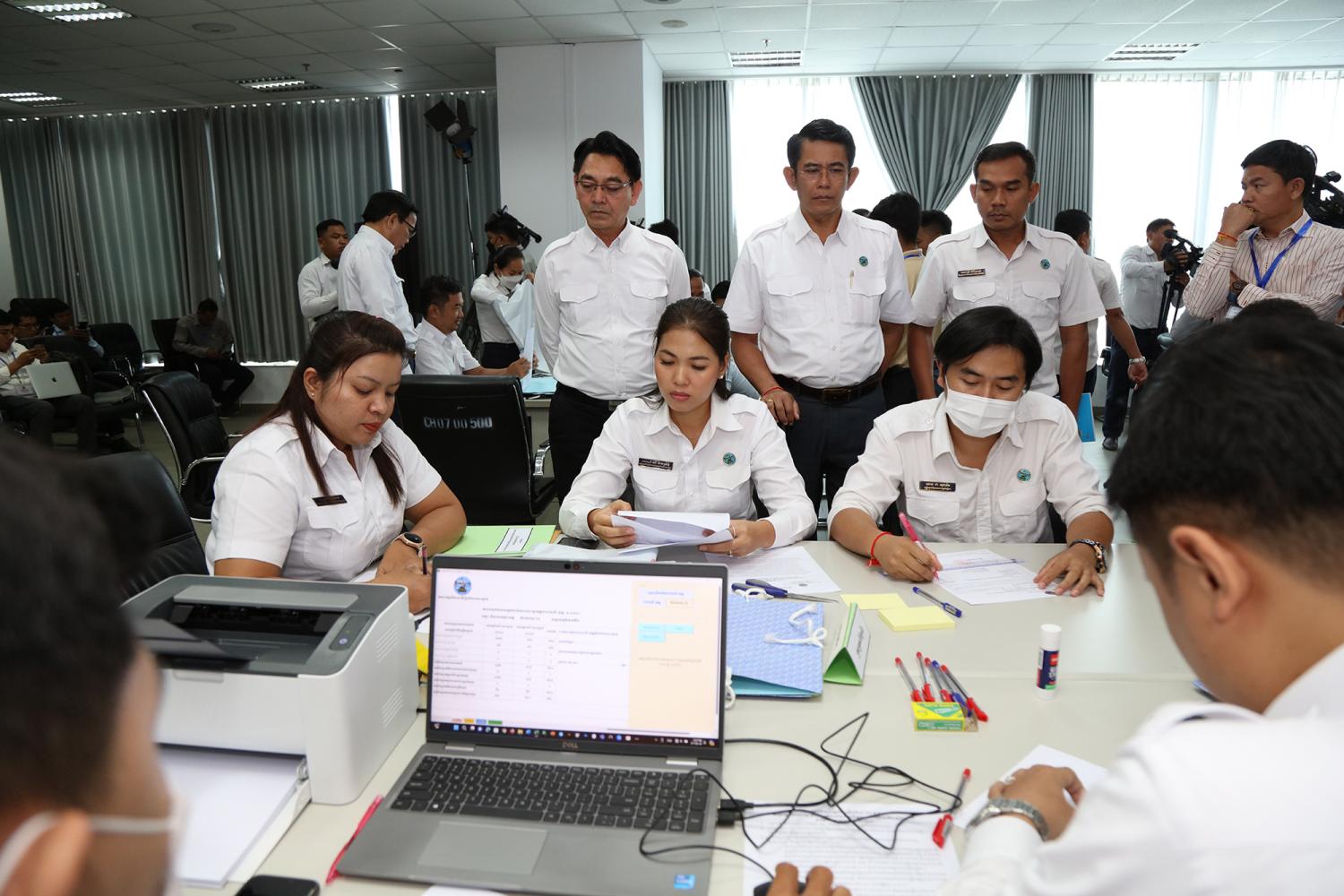 រូបភាពសកម្មភាពនៃការត្រួតពិនិត្យ និងផ្ទៀងផ្ទាត់ឡើងវិញ ដើម្បីបញ្ជាក់ពីភាពត្រឹមត្រូវនូវលទ្ធផលនៃការបោះឆ្នោតជ្រើសតាំងសមាជិកព្រឹទ្ធសភា នីតិកាលទី៥ ឆ្នាំ២០២៤ ដែលគណៈកម្មការរាជធានី ខេត្តរៀបចំការបោះឆ្នោត បានបញ្ជូនមក គ.ជ.ប នារសៀលថ្ងៃទី២៧ ខែកុម្ភៈ ឆ្នាំ២០២៤ នៅទីស្ដីការ គ.ជ.ប។