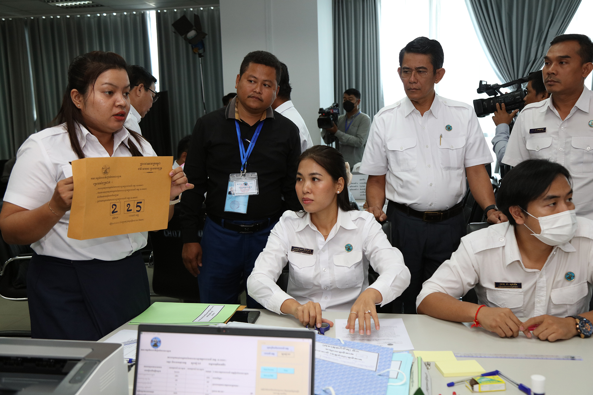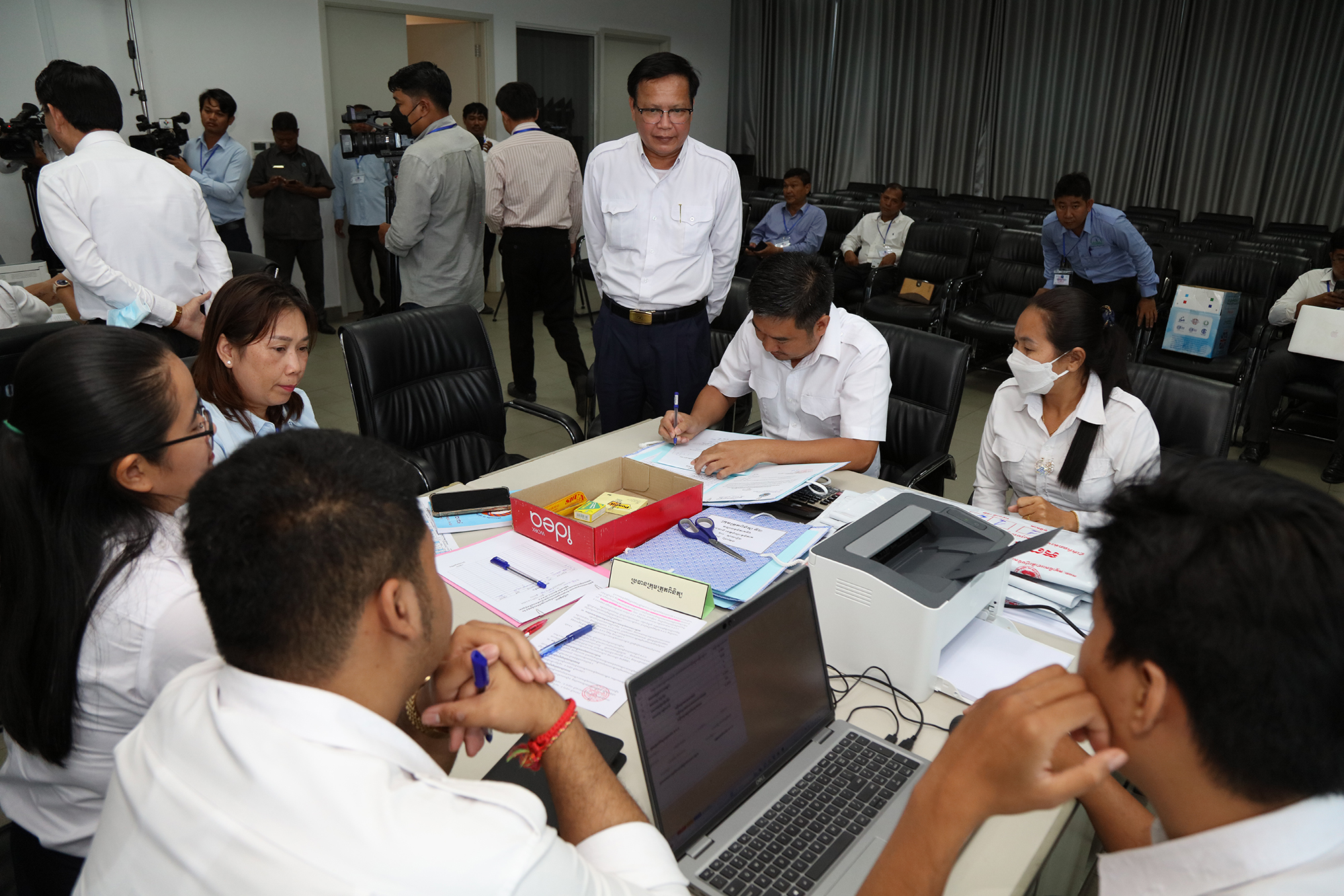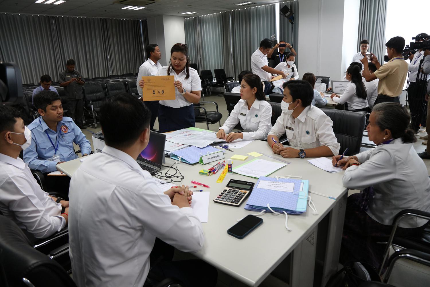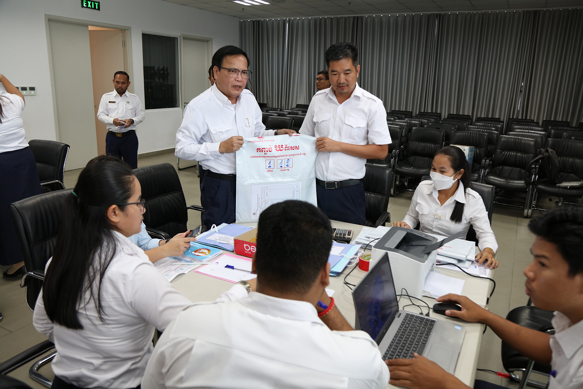 រូបភាពសកម្មភាពនៃការត្រួតពិនិត្យ និងផ្ទៀងផ្ទាត់ឡើងវិញ ដើម្បីបញ្ជាក់ពីភាពត្រឹមត្រូវនូវលទ្ធផលនៃការបោះឆ្នោតជ្រើសតាំងសមាជិកព្រឹទ្ធសភា នីតិកាលទី៥ ឆ្នាំ២០២៤ ដែលគណៈកម្មការរាជធានី ខេត្តរៀបចំការបោះឆ្នោត បានបញ្ជូនមក គ.ជ.ប នារសៀលថ្ងៃទី២៧ ខែកុម្ភៈ ឆ្នាំ២០២៤ នៅទីស្ដីការ គ.ជ.ប។