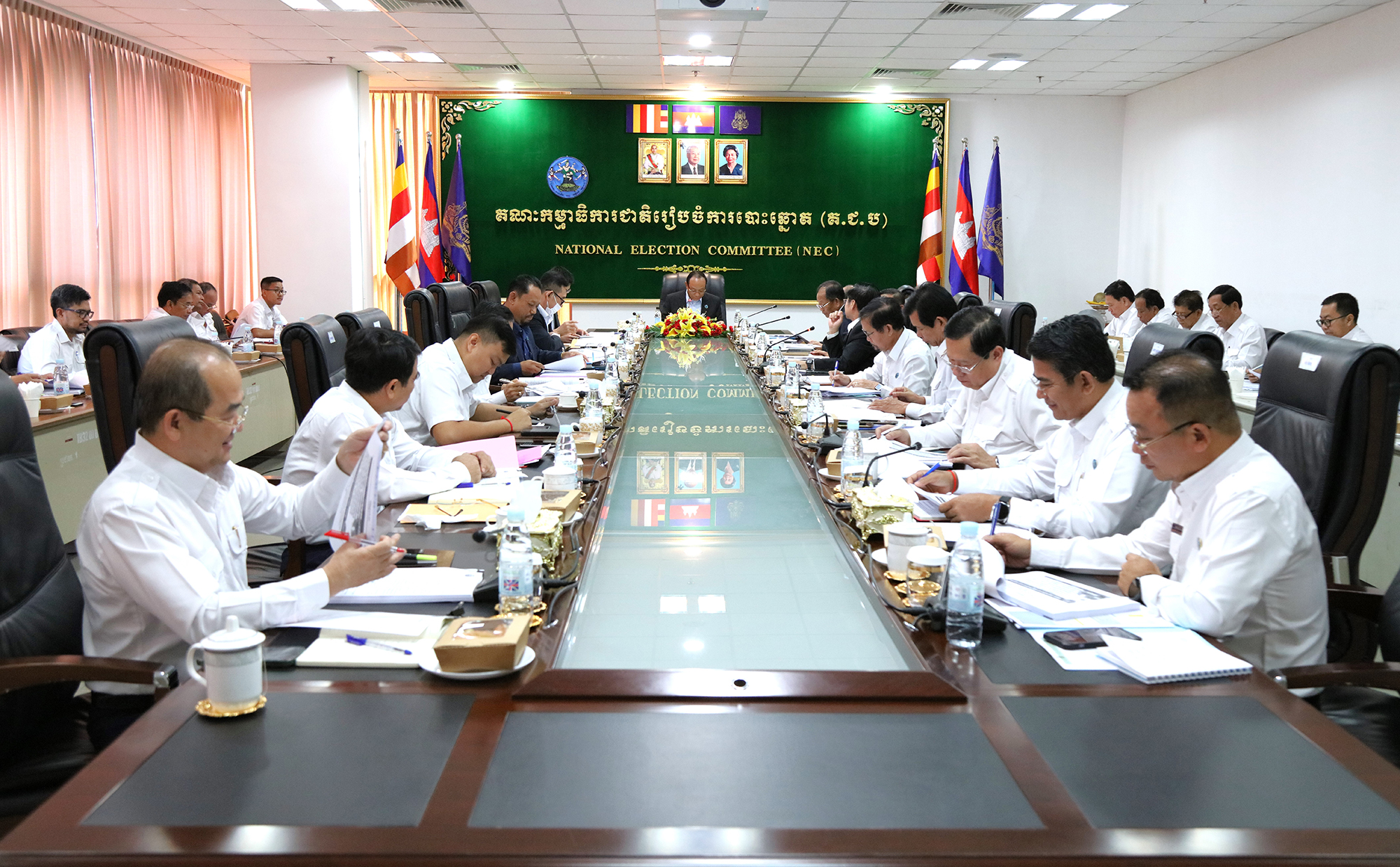 រូបភាពសកម្មភាព ឯកឧត្តម ប្រាជ្ញ ចន្ទ ប្រធានគណៈកម្មាធិការជាតិរៀបចំការបោះឆ្នោត (គ.ជ.ប) បានដឹកនាំកិច្ចប្រជុំ គ.ជ.ប នាព្រឹកថ្ងៃទី២៩ ខែកុម្ភៈ ឆ្នាំ២០២៤ ដើម្បីពិនិត្យ និងសម្រេចលើ៖