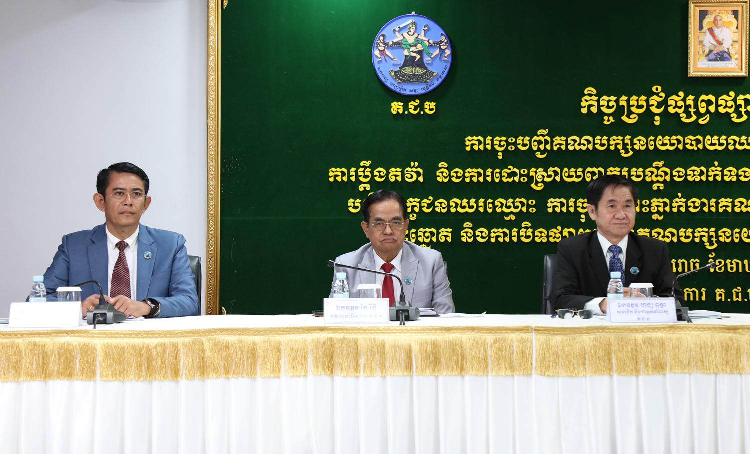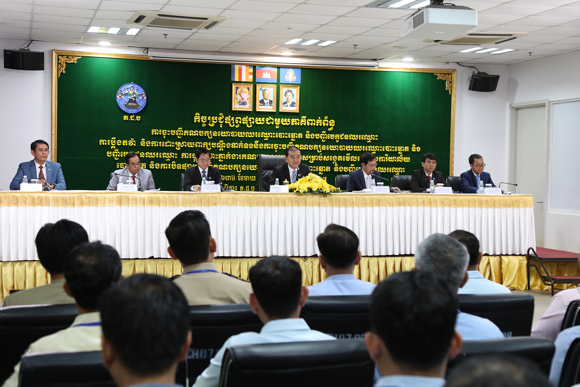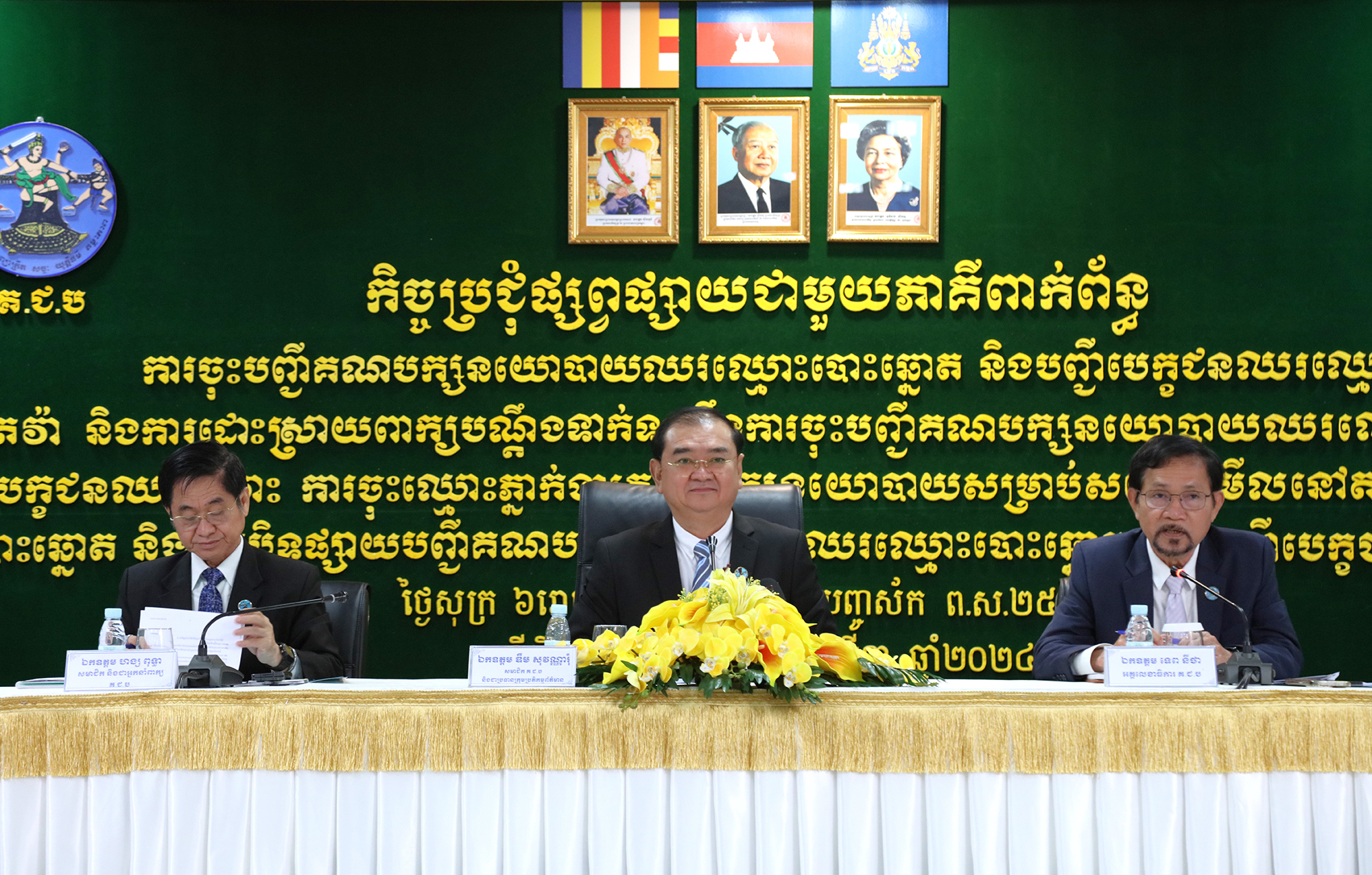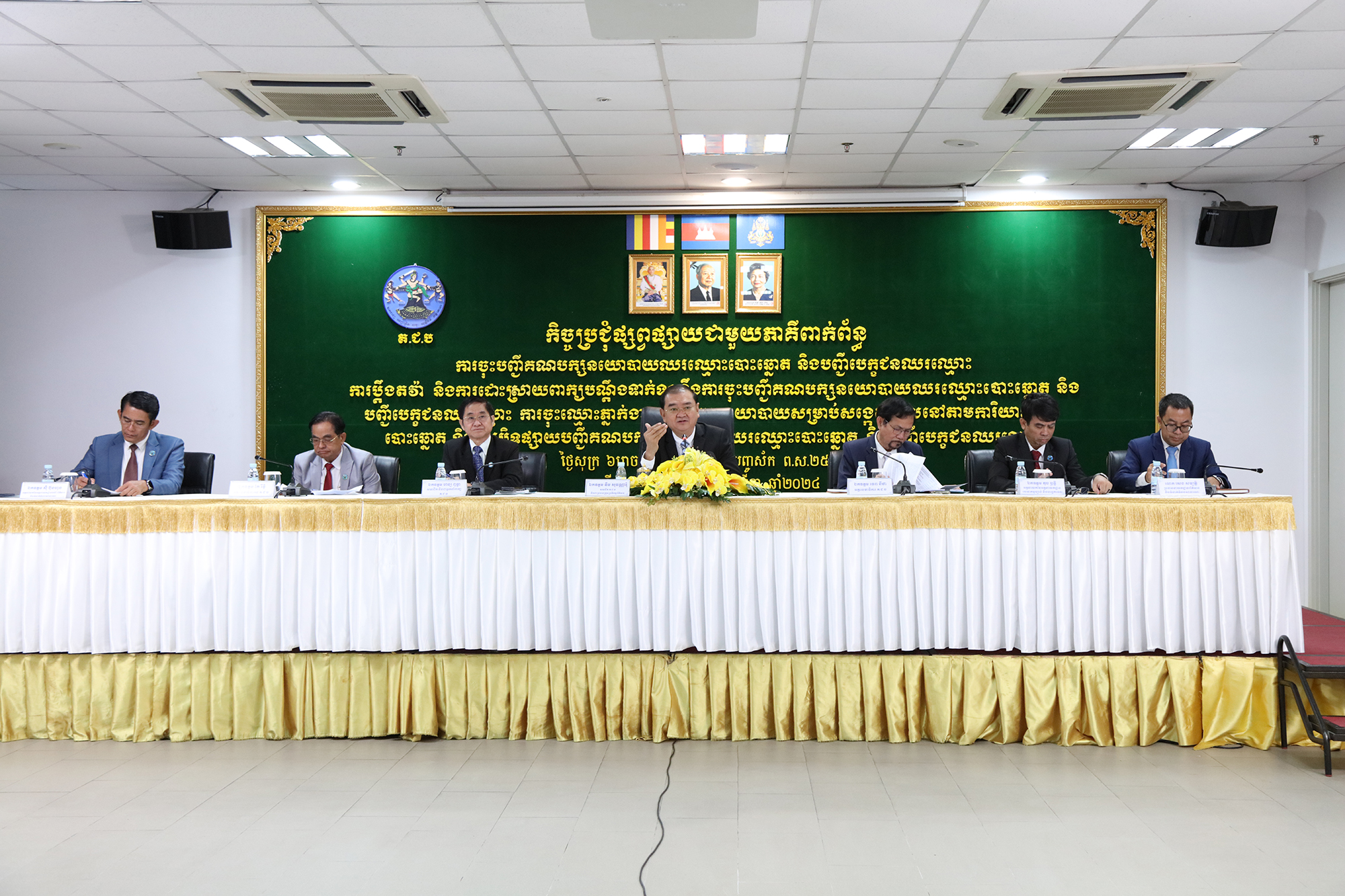 រូបភាពសកម្មភាព ឯកឧត្តម ឌឹម សុវណ្ណារុំ សមាជិក គ.ជ.ប និងជាប្រធានក្រុមប្រតិកម្មព័ត៌មាន បានដឹកនាំកិច្ចប្រជុំជាមួយភាគីពាក់ព័ន្ធ ដើម្បីផ្សព្វផ្សាយអំពី ការចុះបញ្ជីគណបក្សនយោបាយឈរឈ្មោះបោះឆ្នោត និងបញ្ជីបេក្ខជនឈរឈ្មោះ ការប្តឹងតវ៉ា និងការដោះស្រាយពាក្យបណ្តឹងទាក់ទងនឹងការចុះបញ្ជីគណបក្សនយោបាយឈរឈ្មោះបោះឆ្នោត និងបញ្ជីបេក្ខជនឈរឈ្មោះ និងការបិទផ្សាយបញ្ជីគណបក្សនយោបាយឈរឈ្មោះបោះឆ្នោត និងបញ្ជីបេក្ខជនឈរឈ្មោះ សម្រាប់ការបោះឆ្នោតជ្រើសរើសក្រុមប្រឹក្សា អាណត្តិទី៤ ឆ្នាំ២០២៤ នៅទីស្ដីការ គ.ជ.ប នាព្រឹកថ្ងៃទី១ ខែមីនា ឆ្នាំ២០២៤។