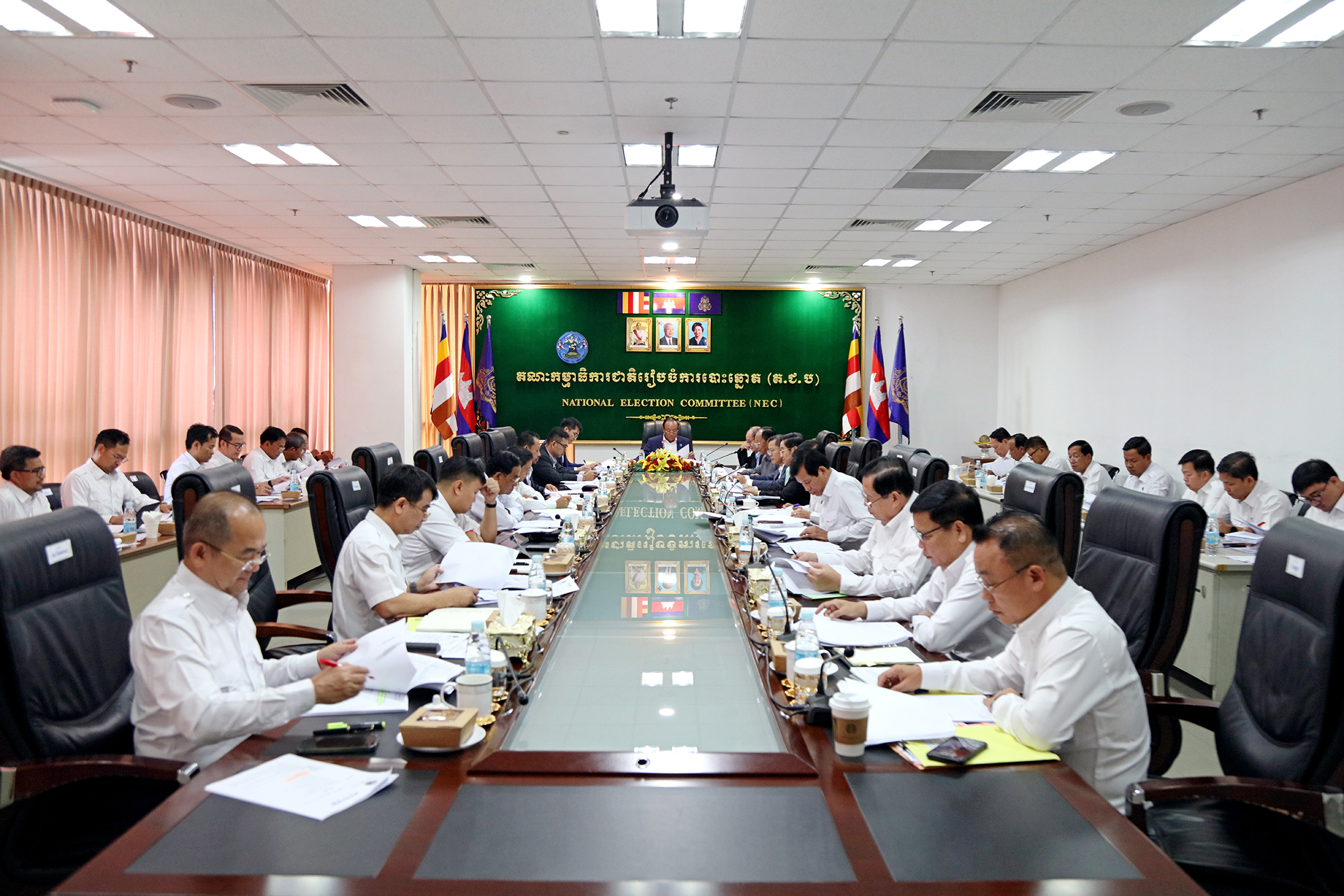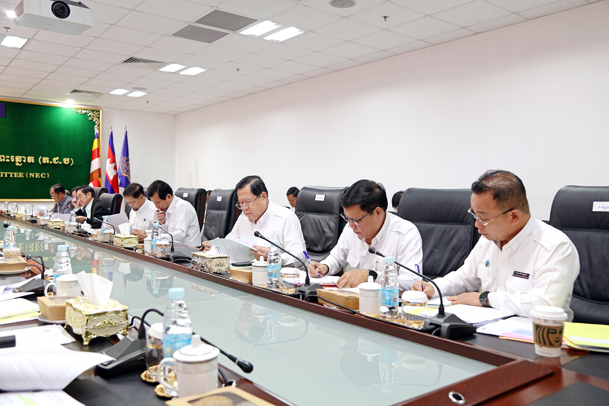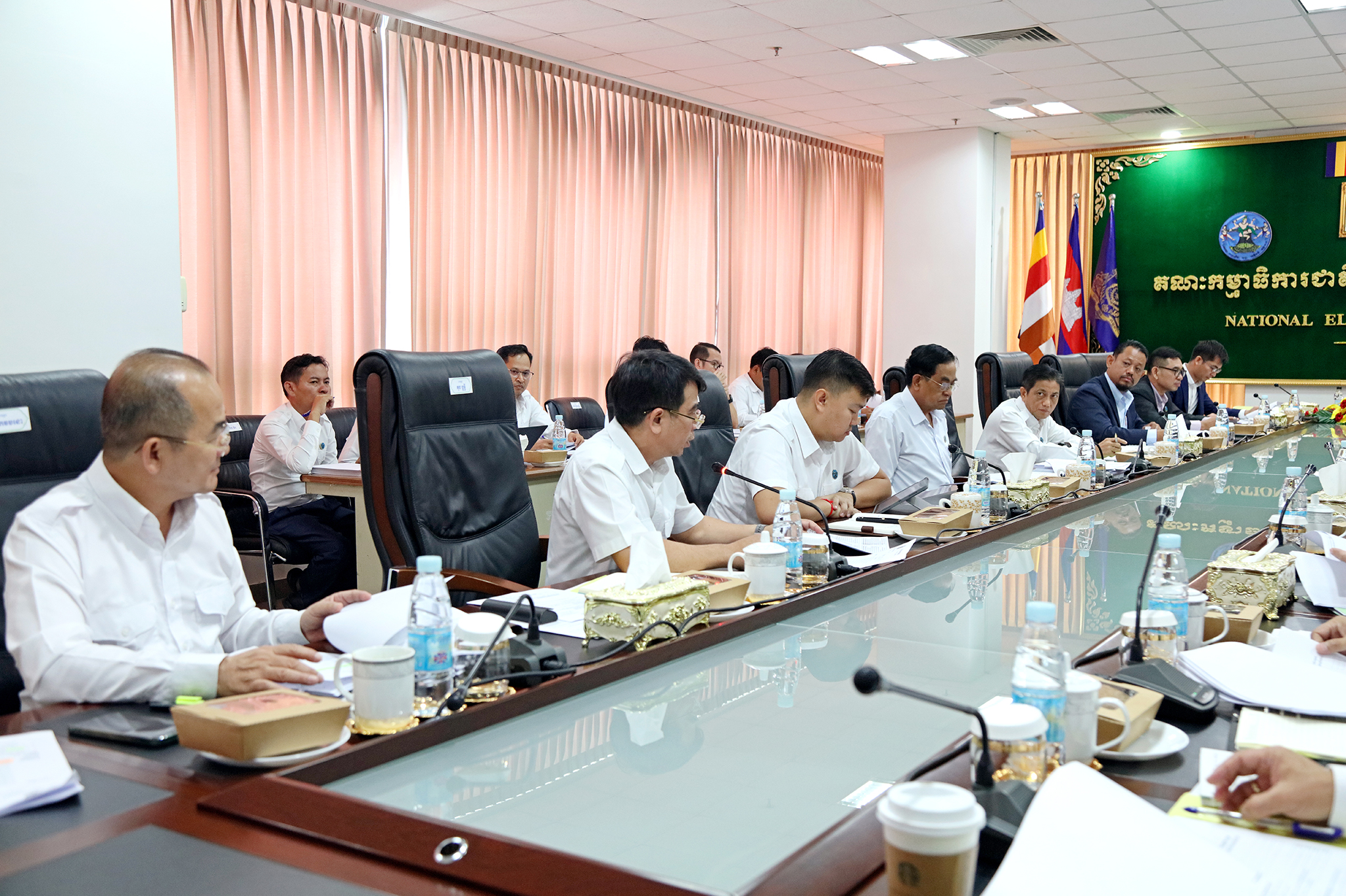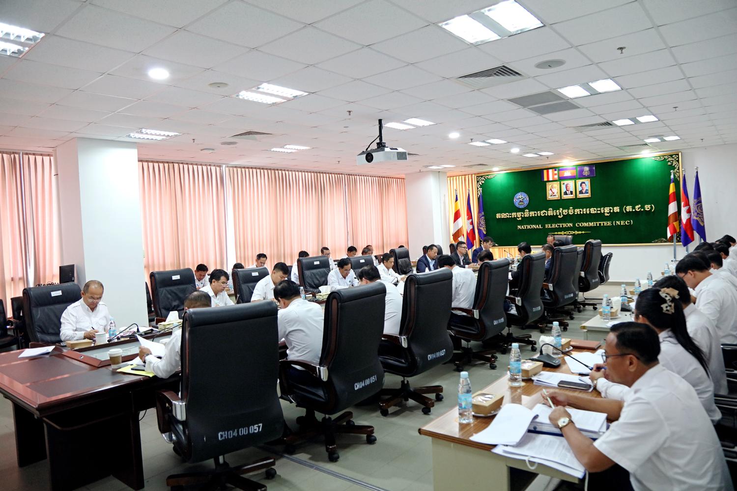 រូបភាពសកម្មភាព ឯកឧត្តម ប្រាជ្ញ ចន្ទ ប្រធានគណៈកម្មាធិការជាតិរៀបចំការបោះឆ្នោត (គ.ជ.ប) បានដឹកនាំកិច្ចប្រជុំ គ.ជ.ប នាព្រឹកថ្ងៃទី៩ ខែមេសា ឆ្នាំ២០២៤ ដើម្បីពិនិត្យ និងសម្រេចលើ៖