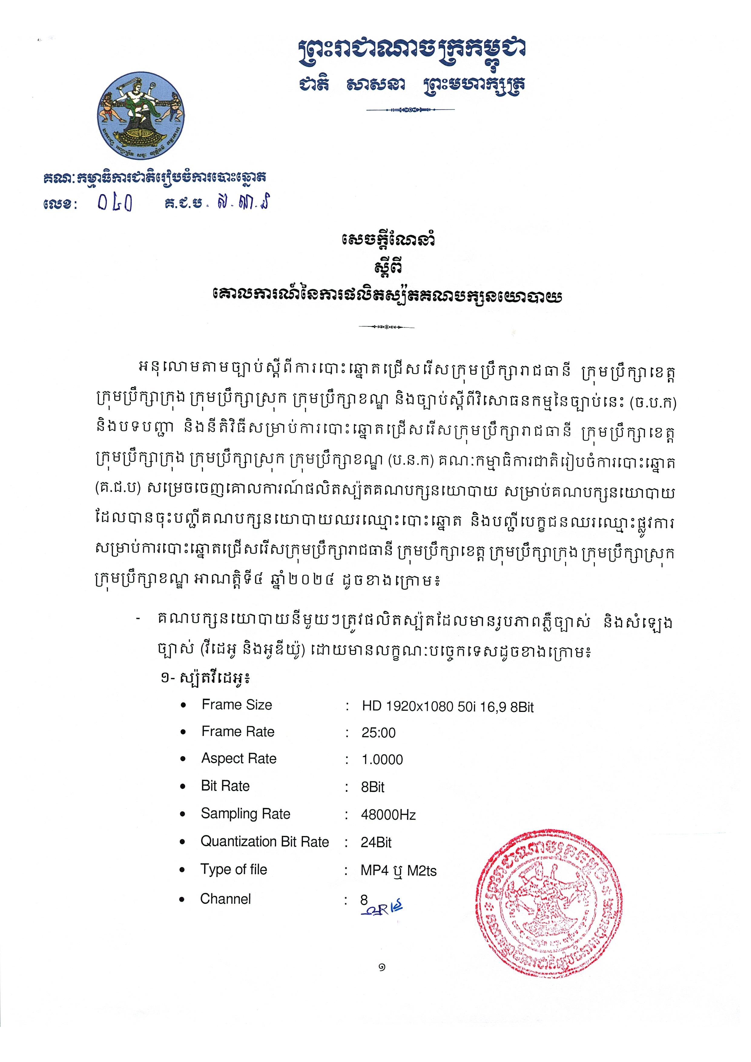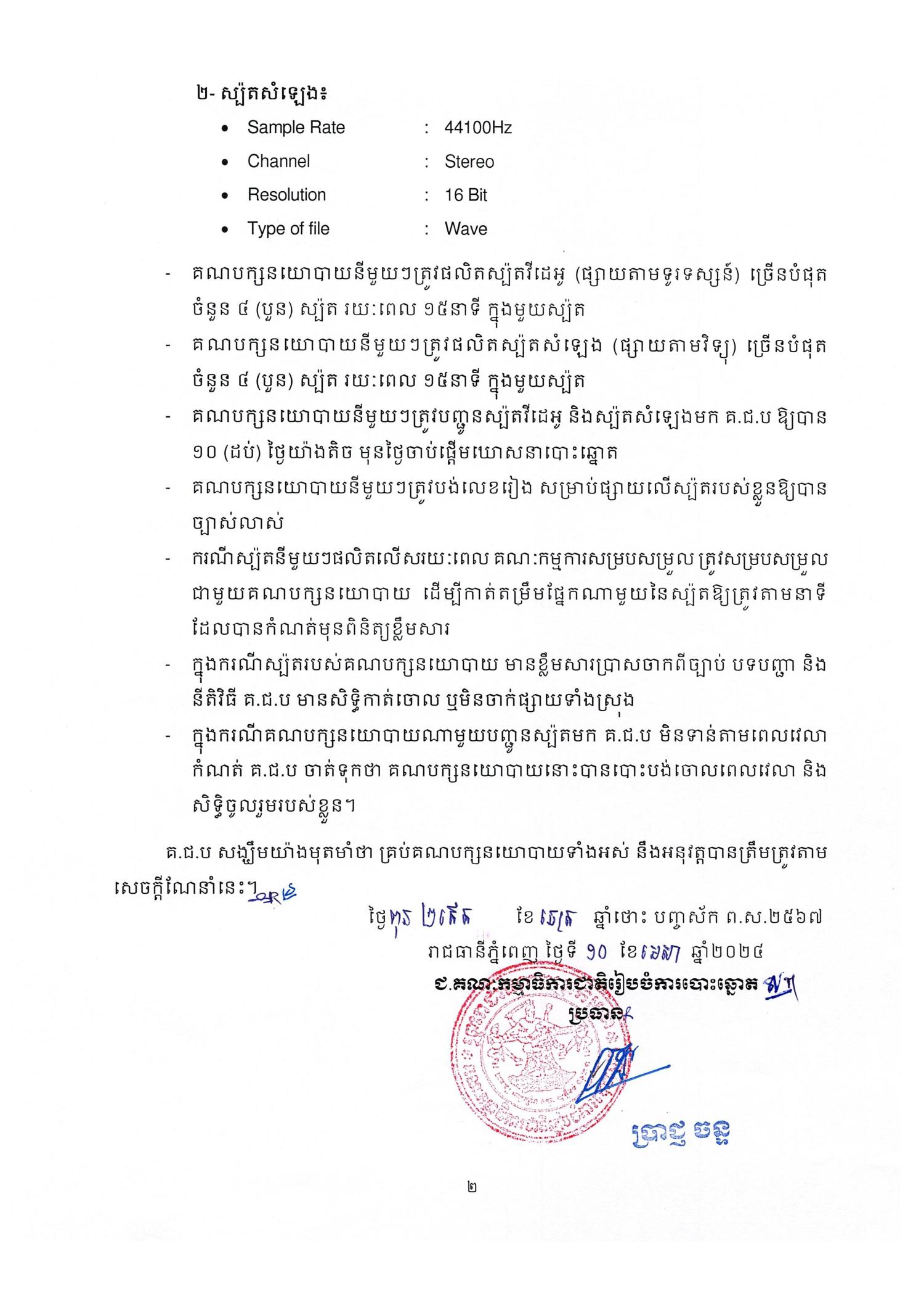 សេចក្តីណែនាំលេខ ០៤០ គ.ជ.ប.ស.ណ.ន ស្តីពី គោលការណ៍នៃការផលិតស្ប៉តគណបក្សនយោបាយ